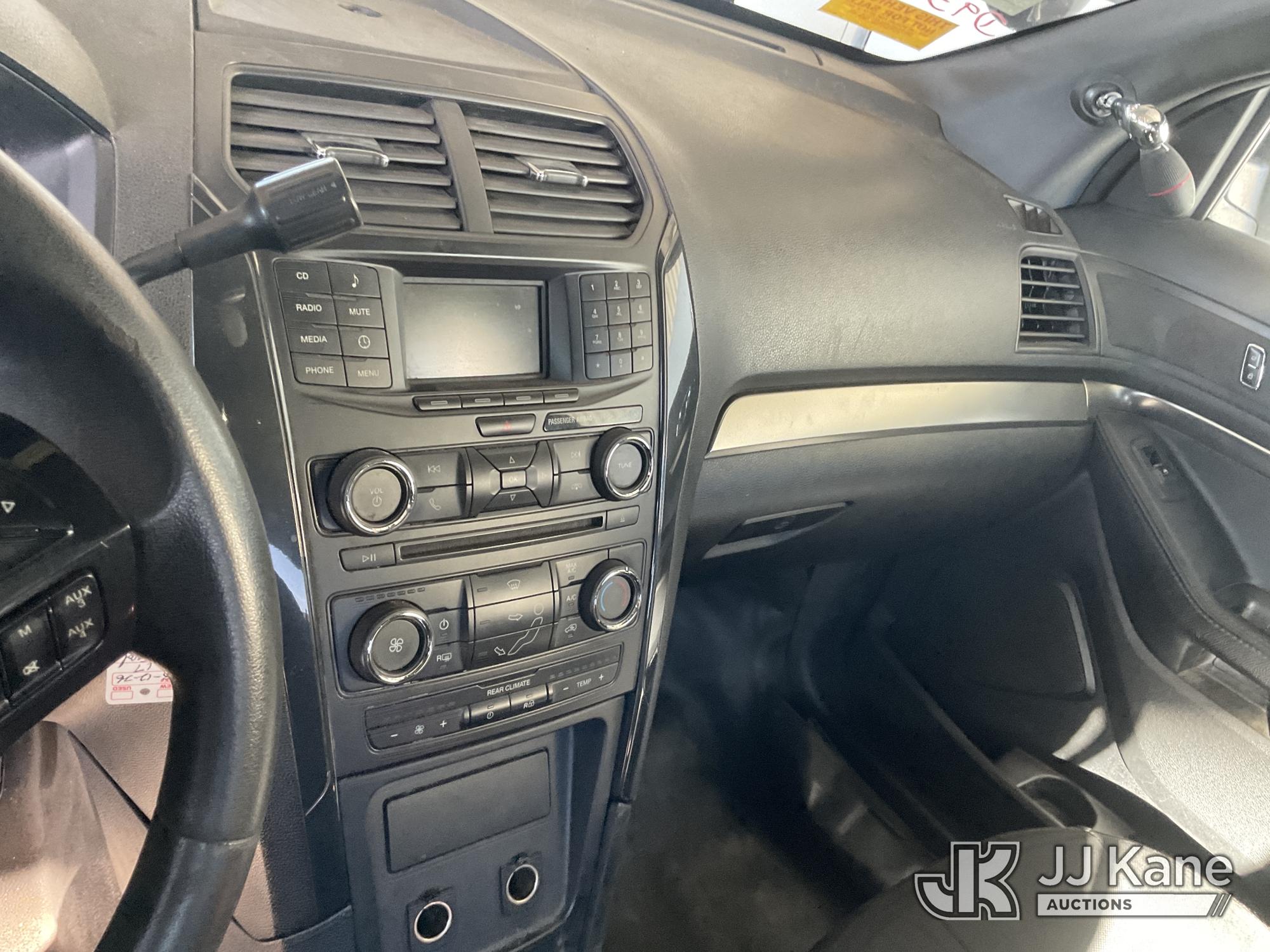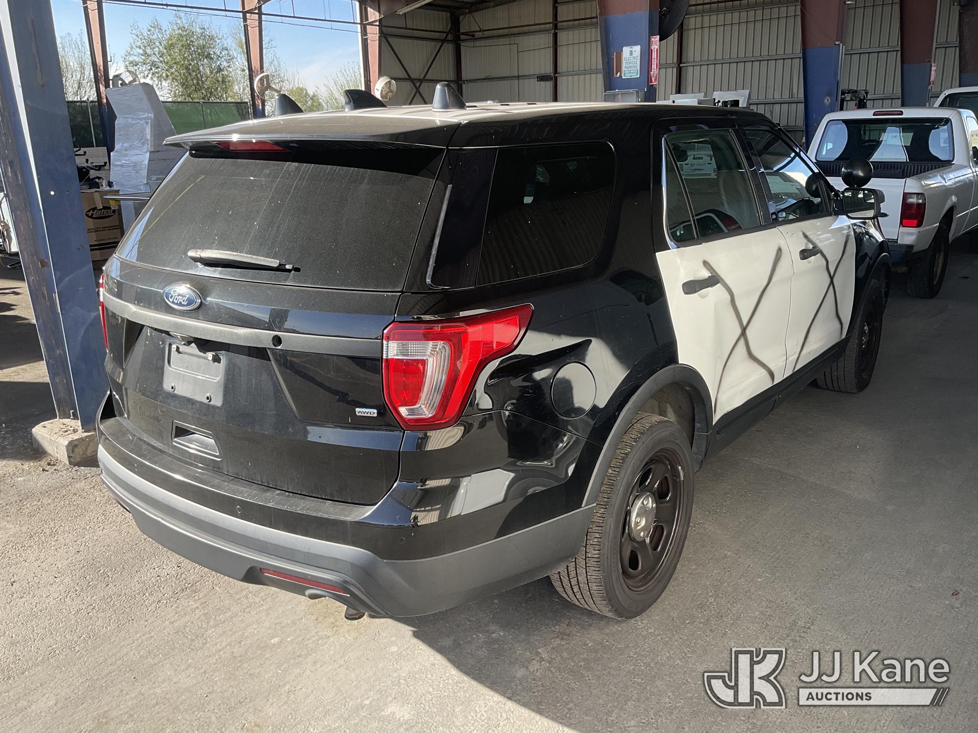 2017 Ford Explorer Police 4WD 4-Door Sport Utility Vehicle, s/n 1FM5K8AR0HGD93024, 3.7L V6 DOHC 24V Gas, 6-Speed Automatic, (107,486 miles) Vehicle is subject to an open NHTSA safety recall related to IN SOME OF THE AFFECTED VEHICLES, IT MAY BE POSSIBLE THAT SOME OF THE EXTERIOR A-PILLAR APPLIQUE TRIM CLIP ATTACHMENTS ARE NOT PROPERLY ENGAGED DUE TO IMPROPER ASSEMBLY OR REPAIR. IF THIS OCCURS, THE A-PILLAR APPLIQUE TRIM, WHICH BORDERS THE RIGHT AND LEFT SIDE OF THE WINDSHIELD, MAY BE LOOSE, MISSING OR BECOME DETACHED WHILE DRIVING AND CAN CREATE A ROAD HAZARD FOR OTHER ROAD USERS, INCREASING THE RISK OF A CRASH, but a remedy for this recall does not appear to be available. Dealer is not authorized to perform the recall repair. Periodically contact the manufacturer or check the VIN on the NHTSA website at www.safercar.gov to determine whether a remedy for the recall is available. As soon as a remedy is available, arrange to have the recall remedied with a dealer from that make of car to make such repair. (Runs & Moves) (Check Engine Light On, Bad Charging System) (Bidding Restricted to Licensed Vehicle Dealers Only), This is a Titled Item*