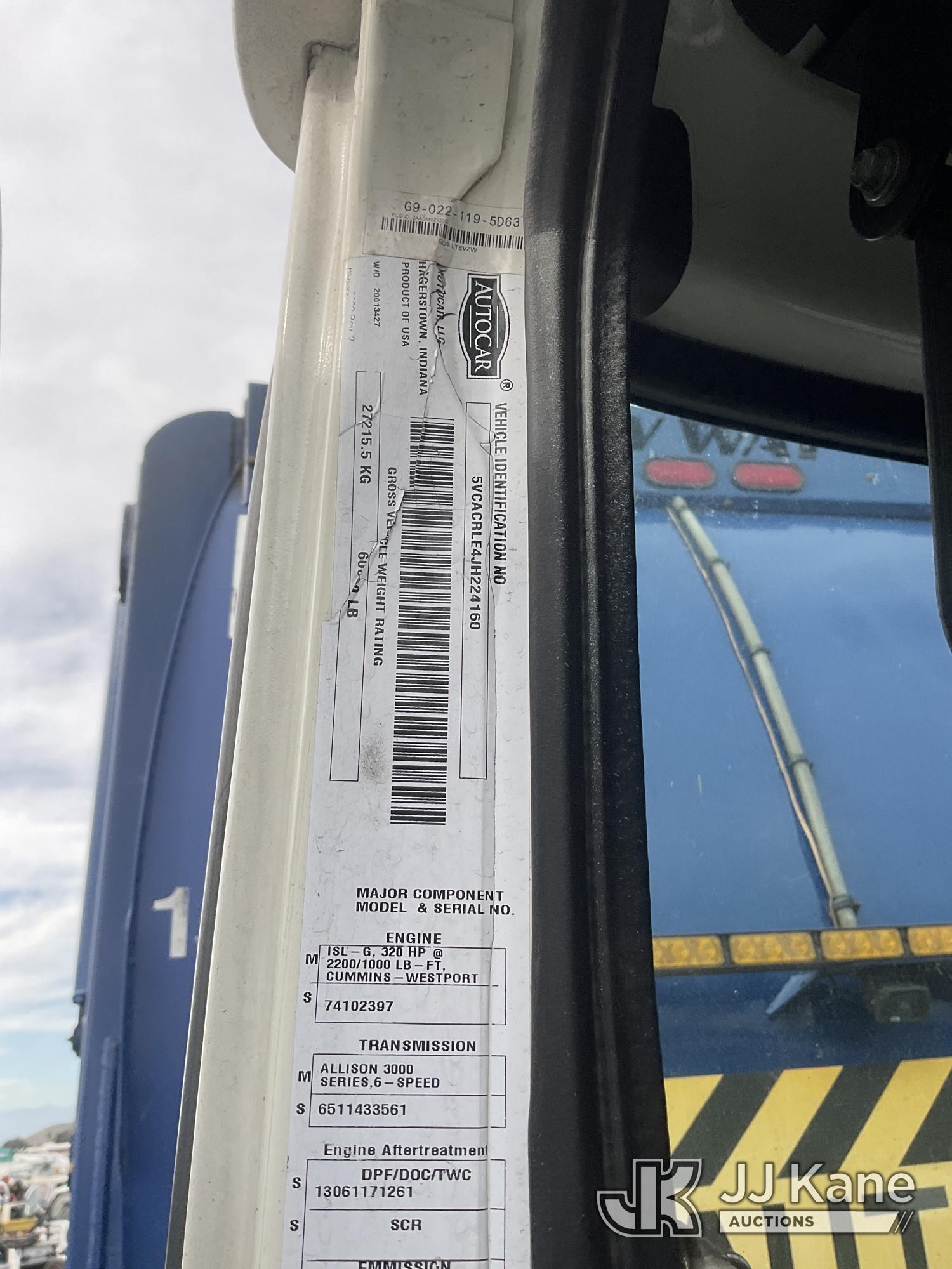 2018 Autocar ACX Xpeditor T/A Trash Truck, 6-cyl, 6X4, CNG Only, Auto, A/C, with Aluminum Wheels, (096,745 miles) (Runs & Moves) This is a Titled Item*