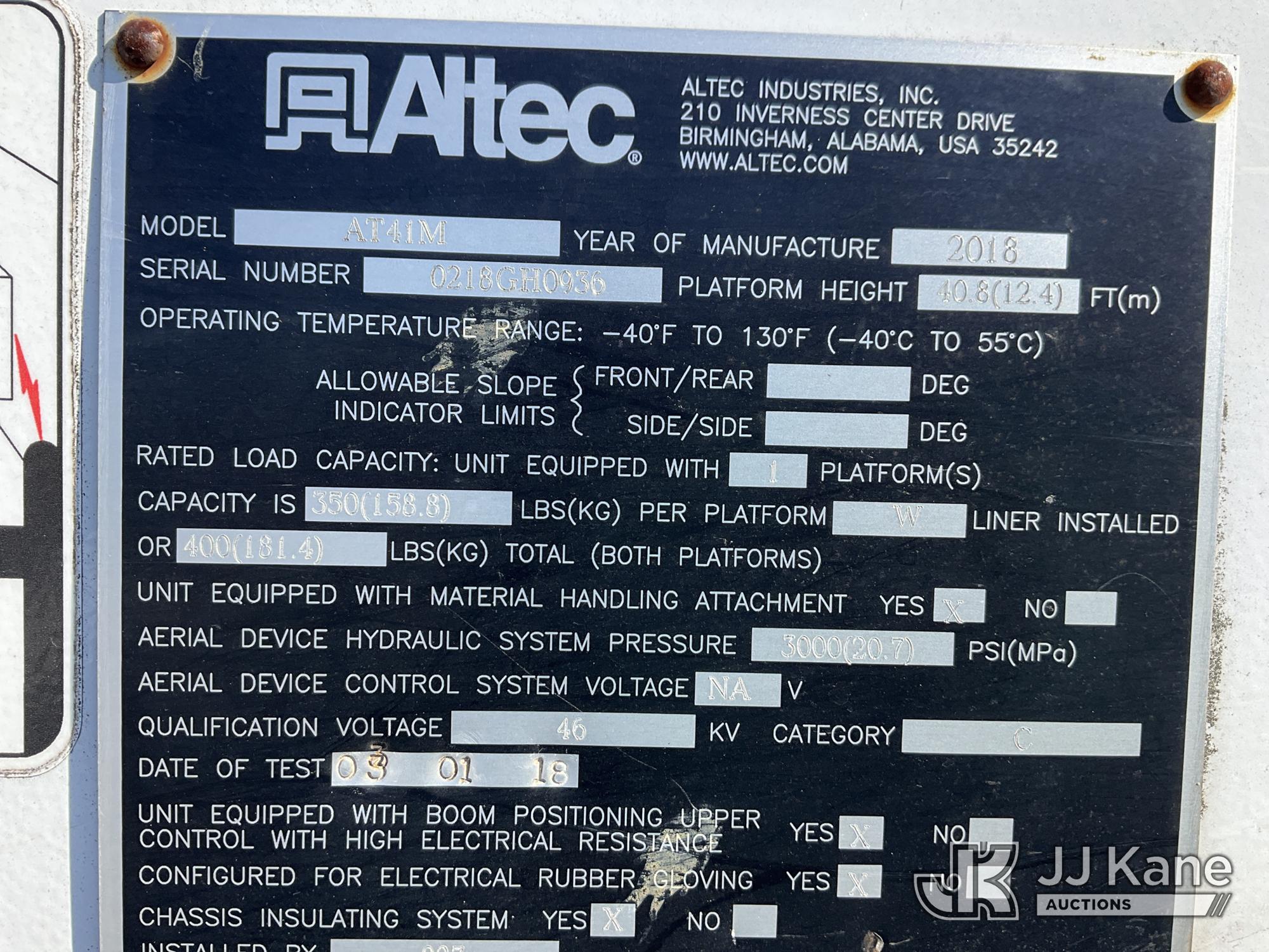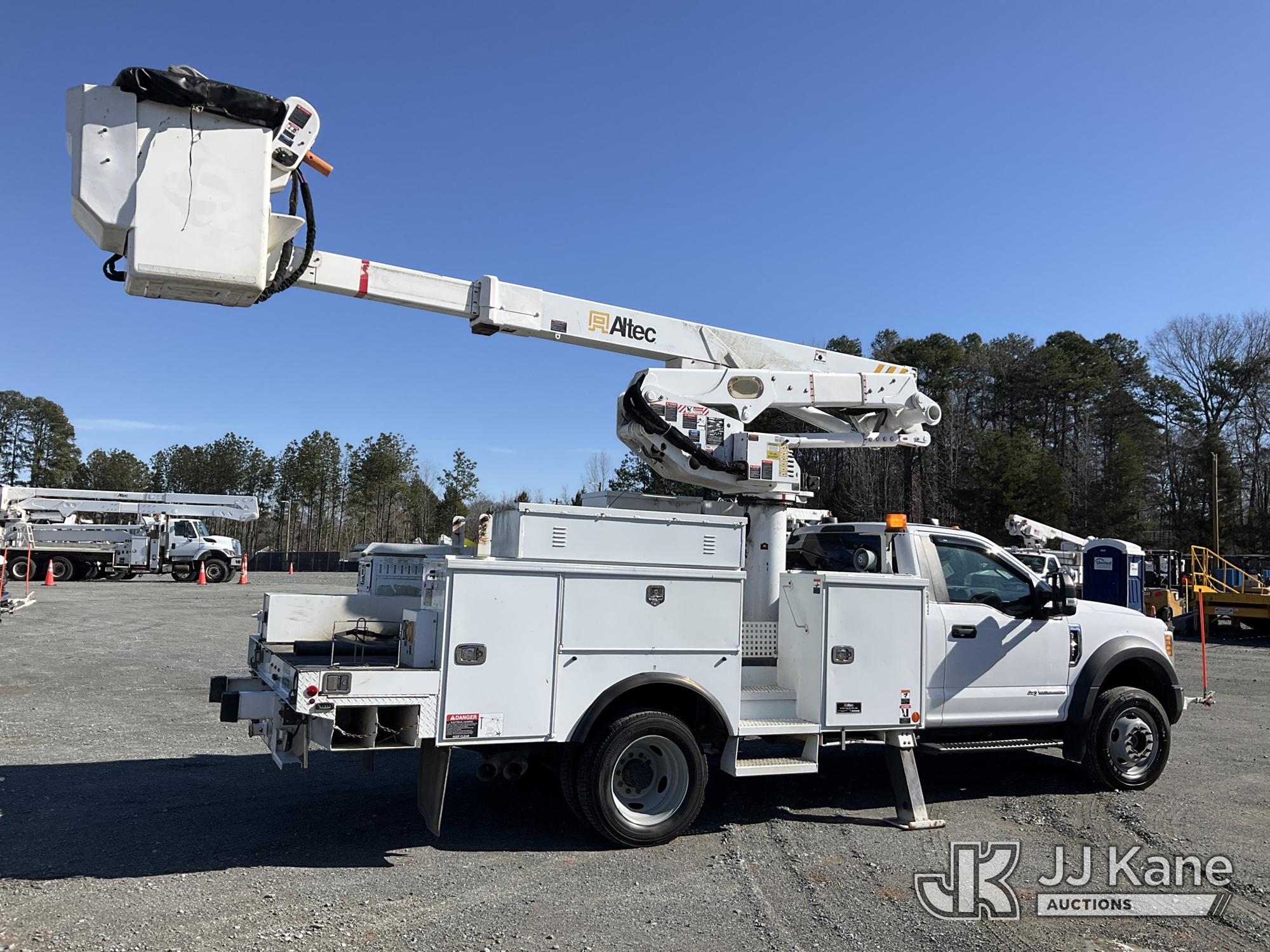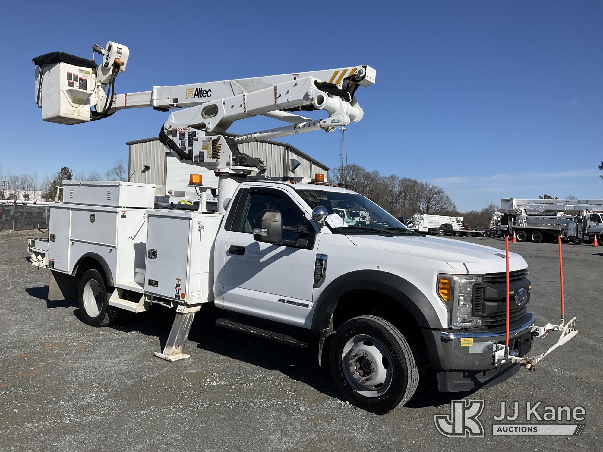 Altec AT41MH, 46 ft, Articulating & Telescopic Material Handling Bucket Truck s/n 0218GH0936, with single man bucket & 2 hyd outriggers, mounted behind cab on 2017 Ford F550 4X4 Service Truck, 6.7L diesel, Auto, A/C, (155,292 miles (unverified)) ACS-Duke (Runs, Moves & Upper Operates ) This is a Titled Item*