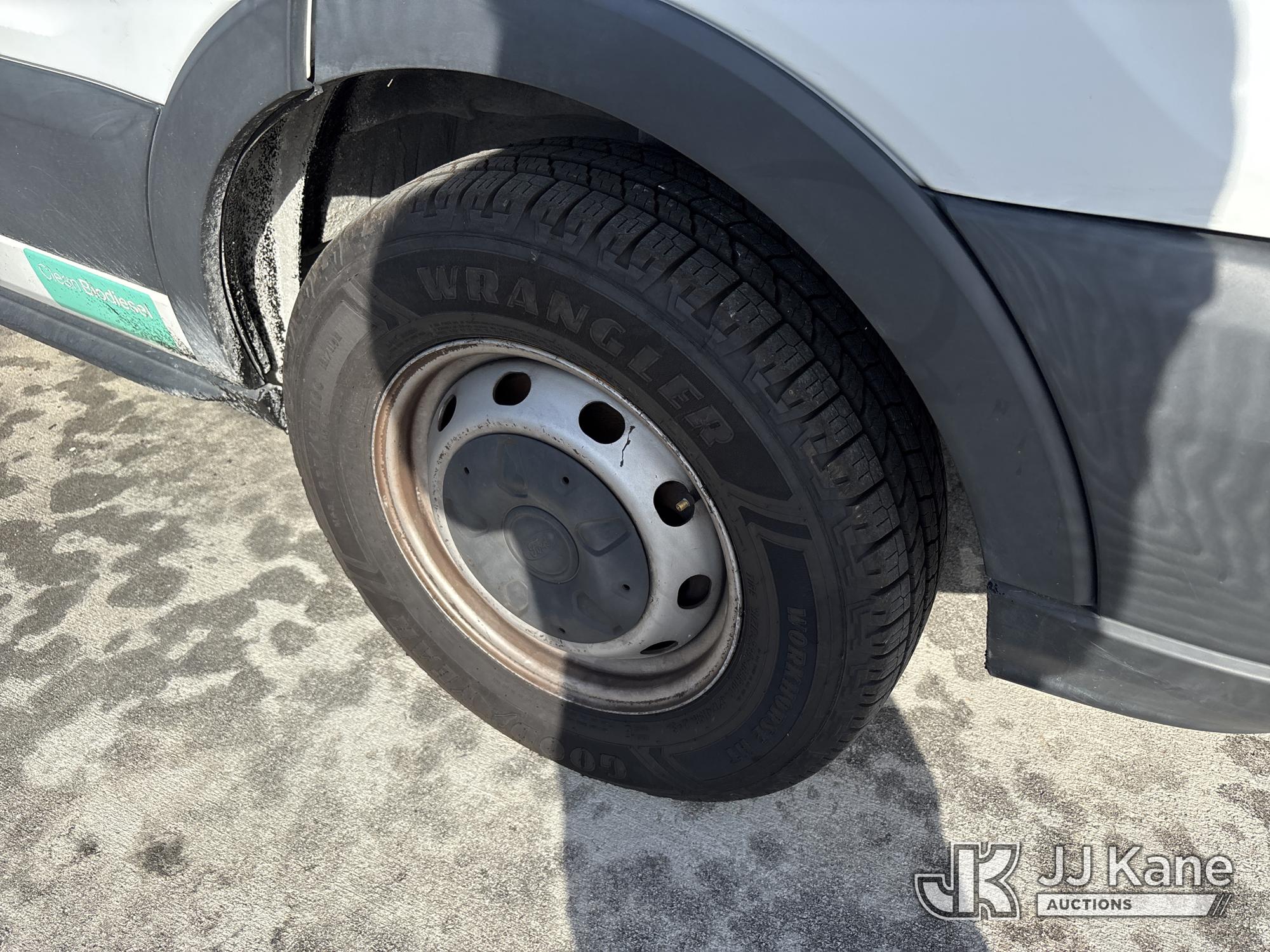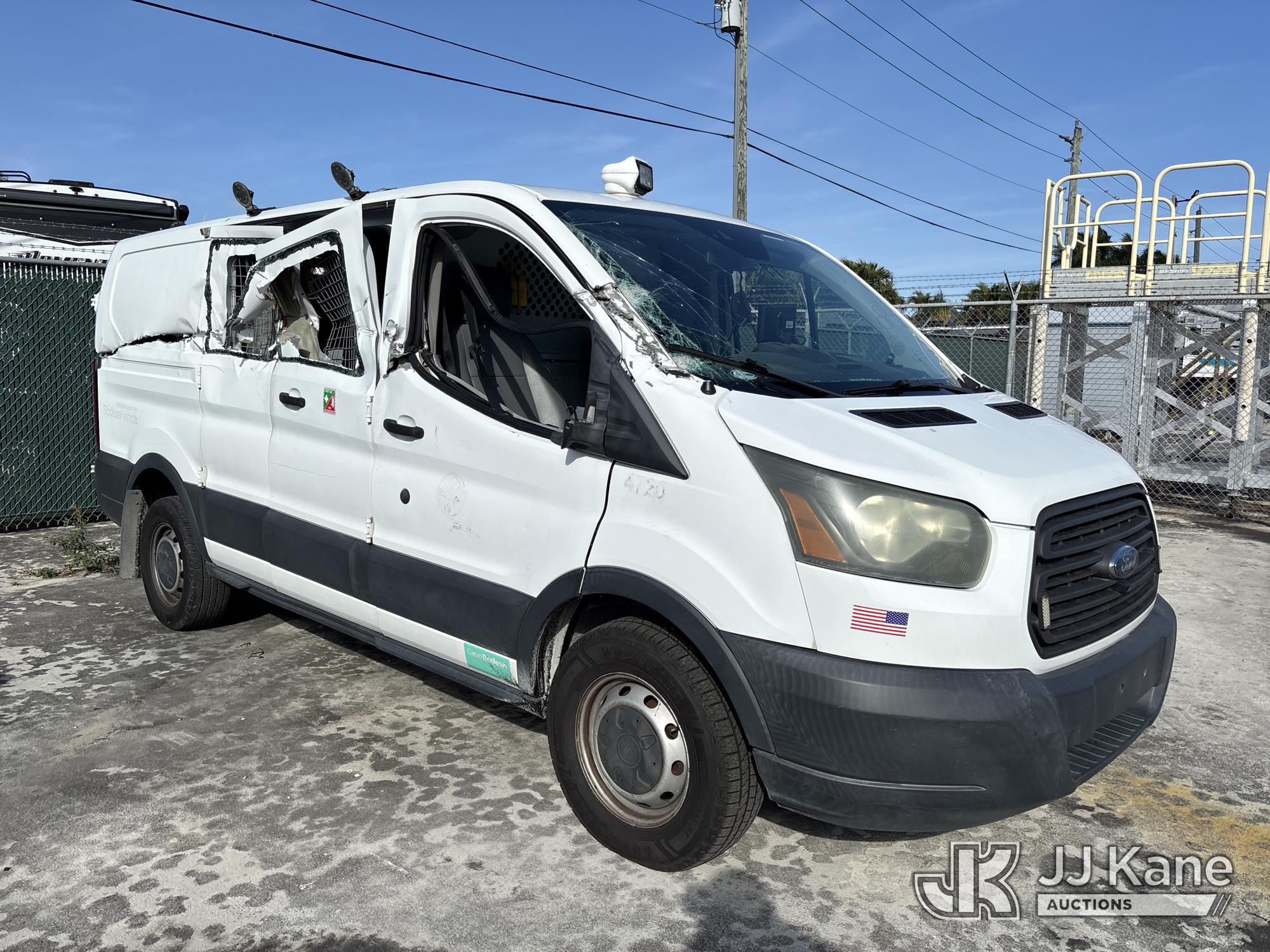 2016 Ford Transit-250 Cargo Van, 3.2L L5 DIESEL 6-Speed Automatic, A/C, (97,698 miles) (No Title Certificate Of Destruction)( Accident Vehicle, See Photos) (Runs & Moves With Jump) (Check Engine Light On, Engine Noise, Accident Damage On Passenger Side, Broken Windshield, Bent Doors, Broken Windows Passenger Side, Body & Paint Damage) This is a Titled Item*