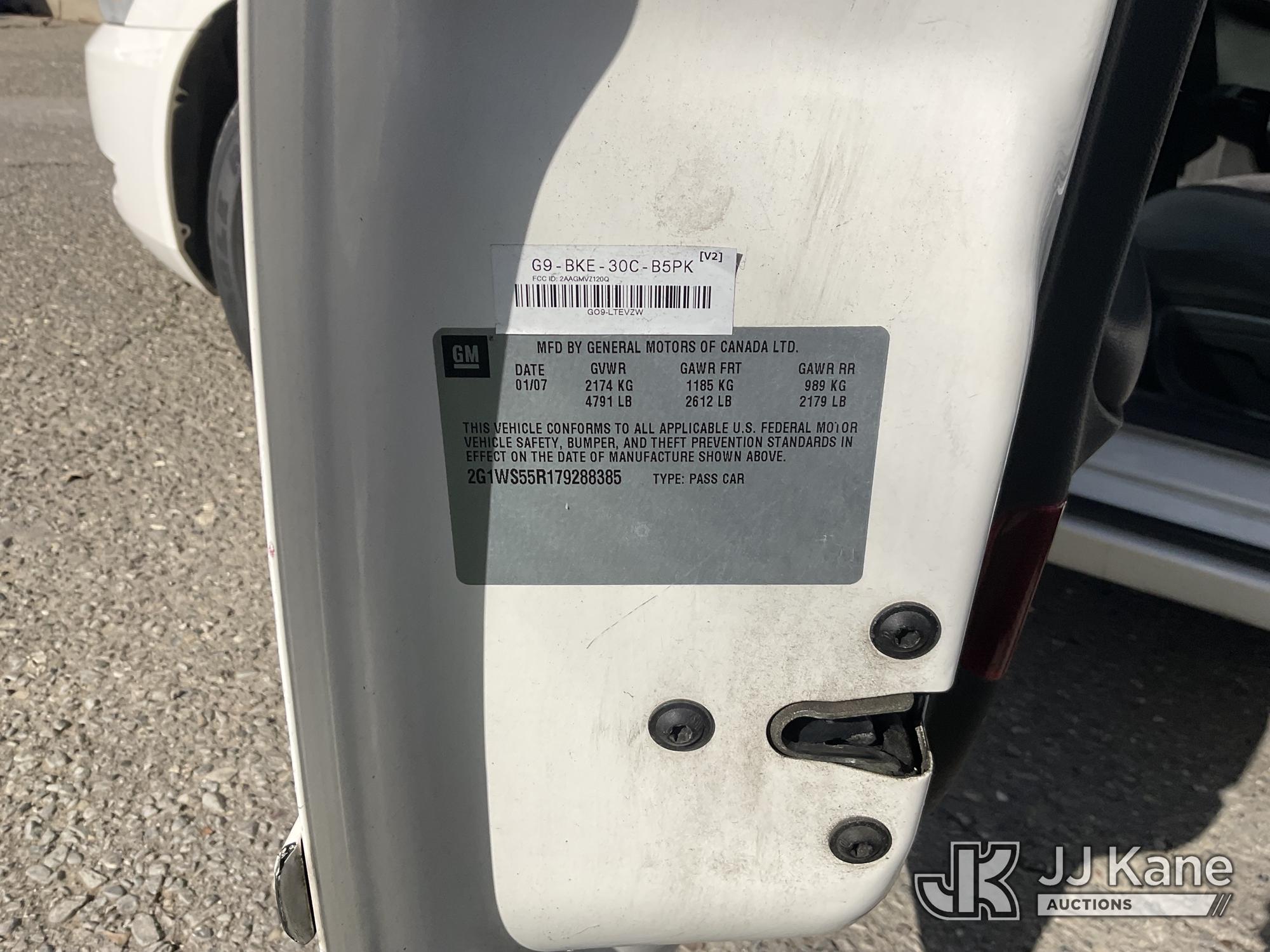 2007 Chevrolet Impala Police 4-Door Sedan, s/n 2G1WS55R179288385, 3.9L V6 OHV 12V Gas, FWD, 4-Speed Automatic, A/C, (99,535 miles) (Runs & Moves) (Slight Paint Blemish-Front Bumper) This is a Titled Item*