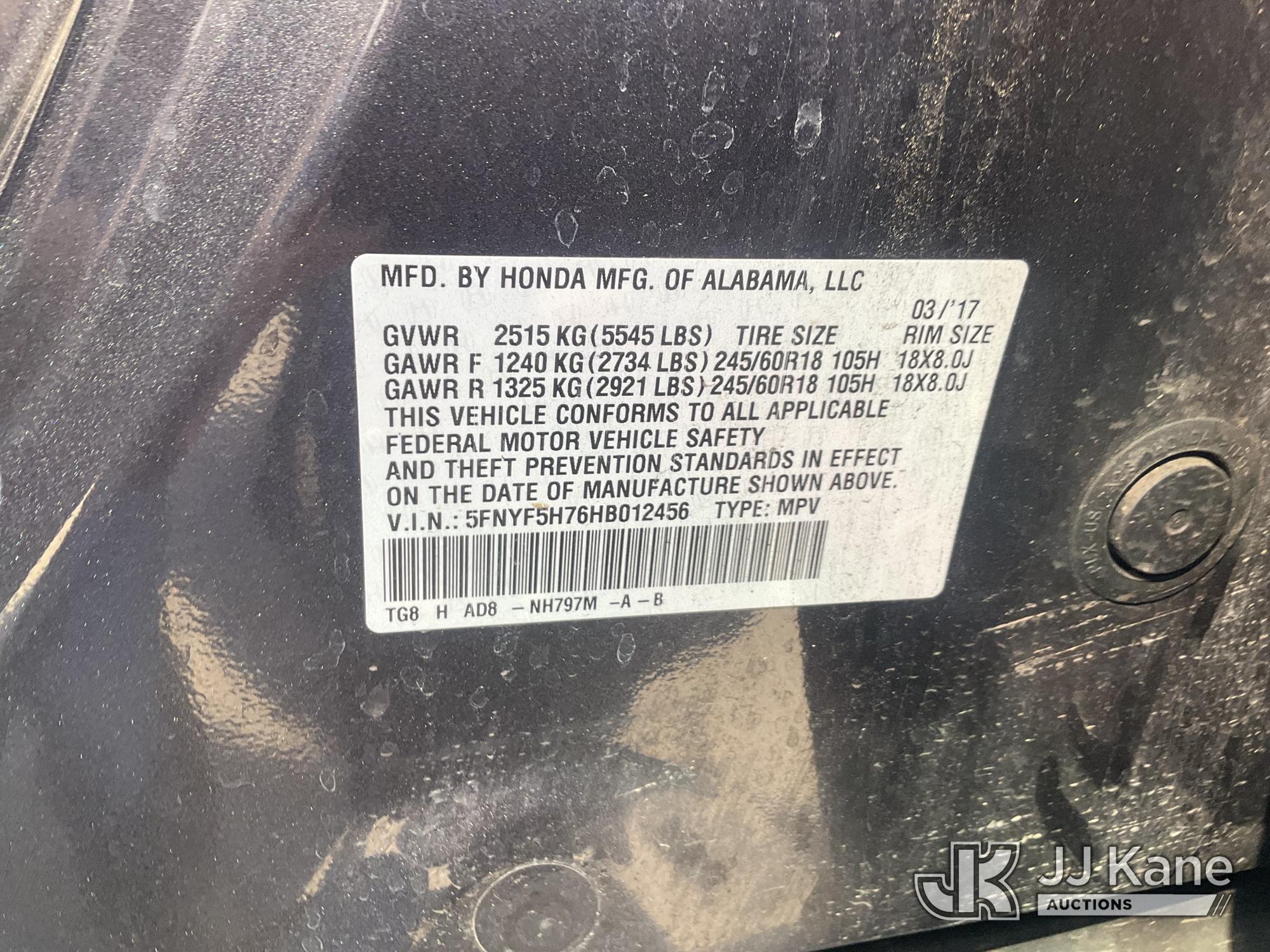 2017 Honda Pilot EX-L w/Navigation Sport Utility Vehicle, 3.5L V6 SOHC 24V Gas, FWD, 6-Speed Automatic, A/C, (111,772 miles) (Runs & Moves) (Has Minor Body Damage) This is a Titled Item*