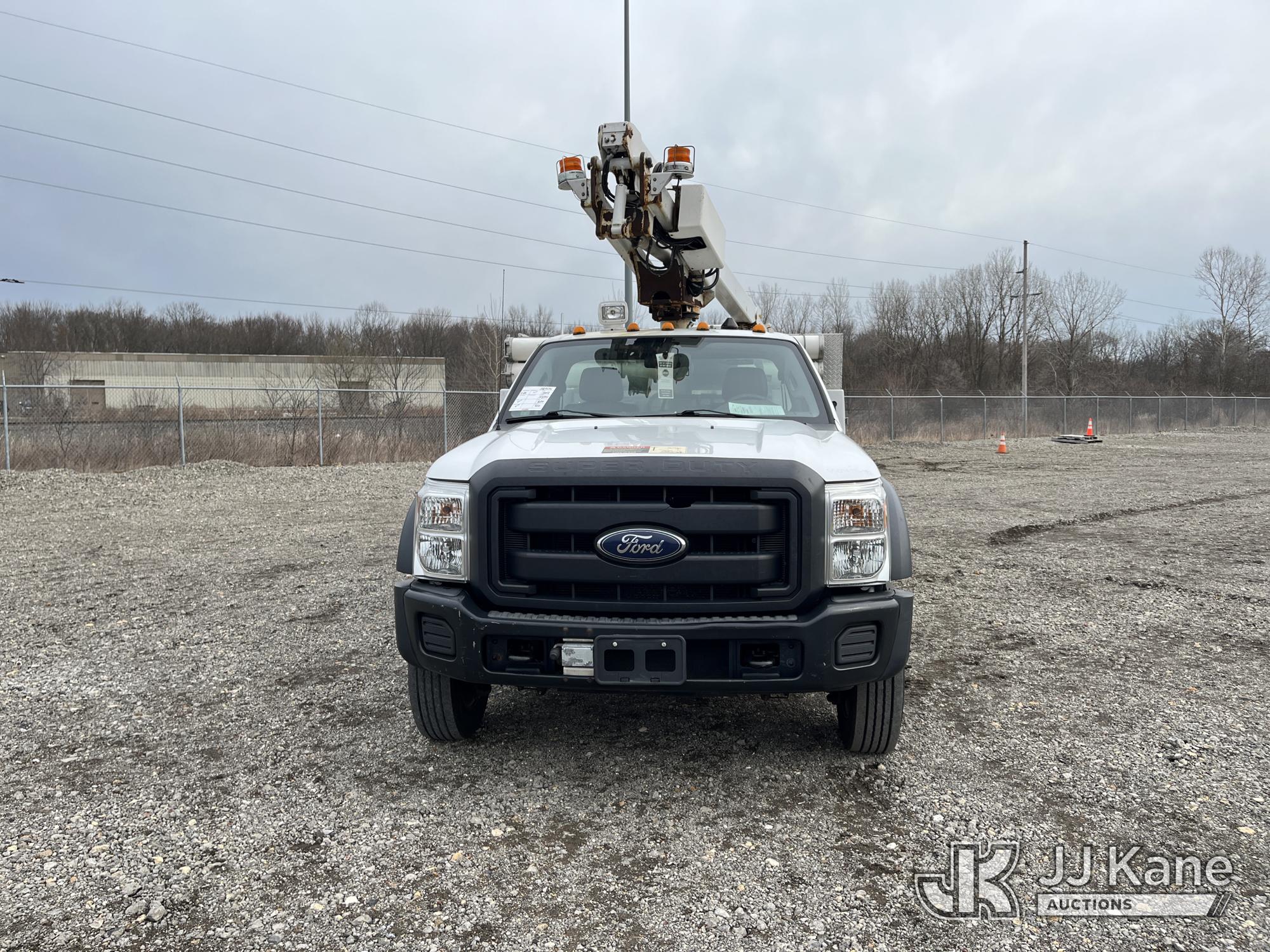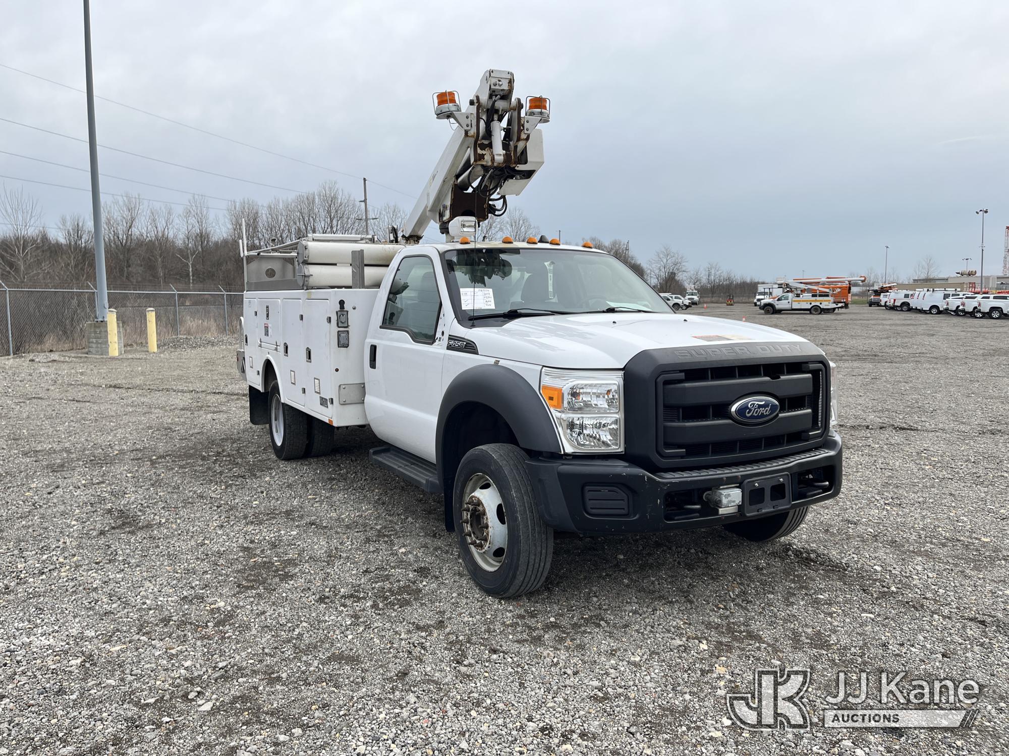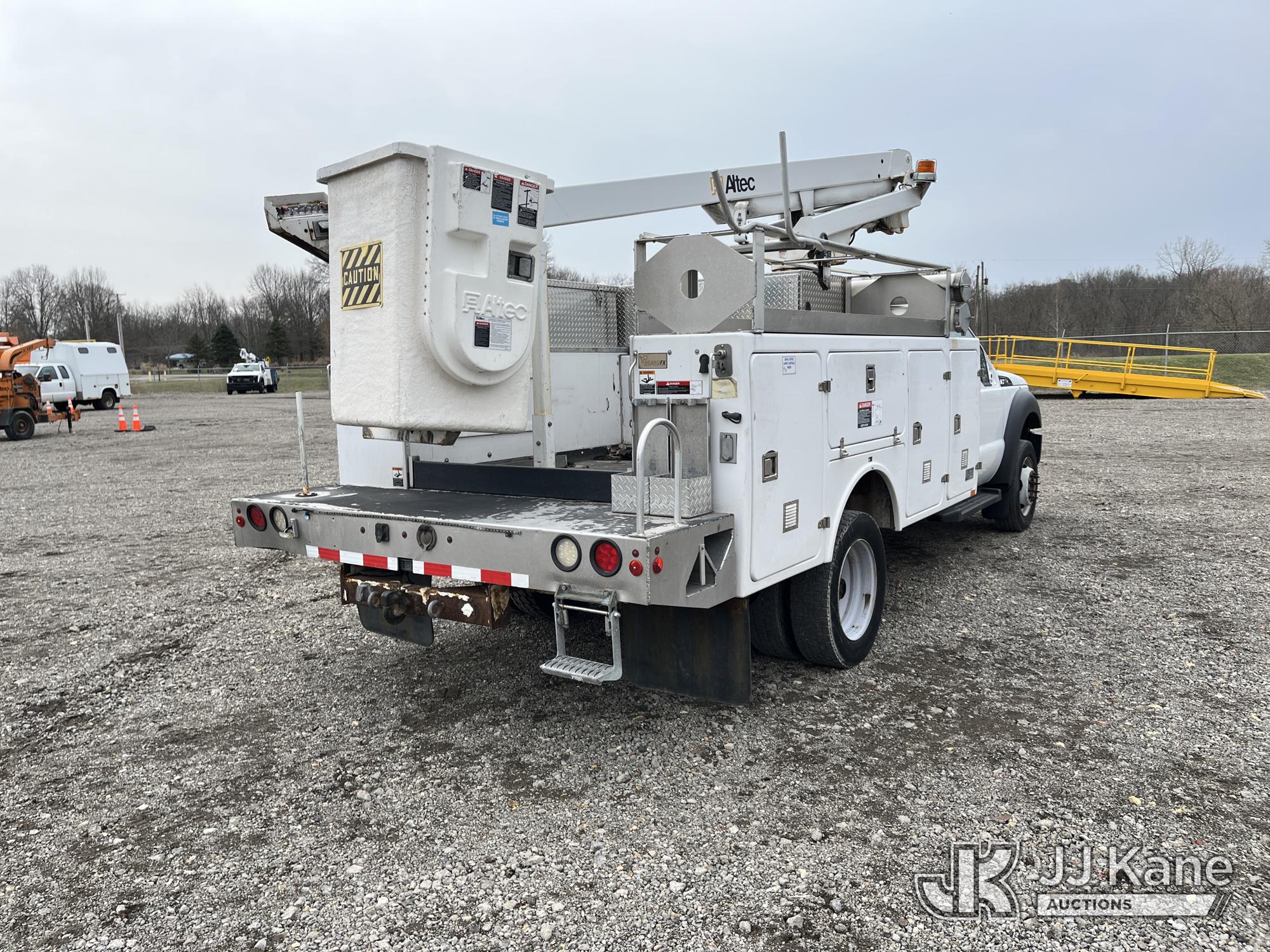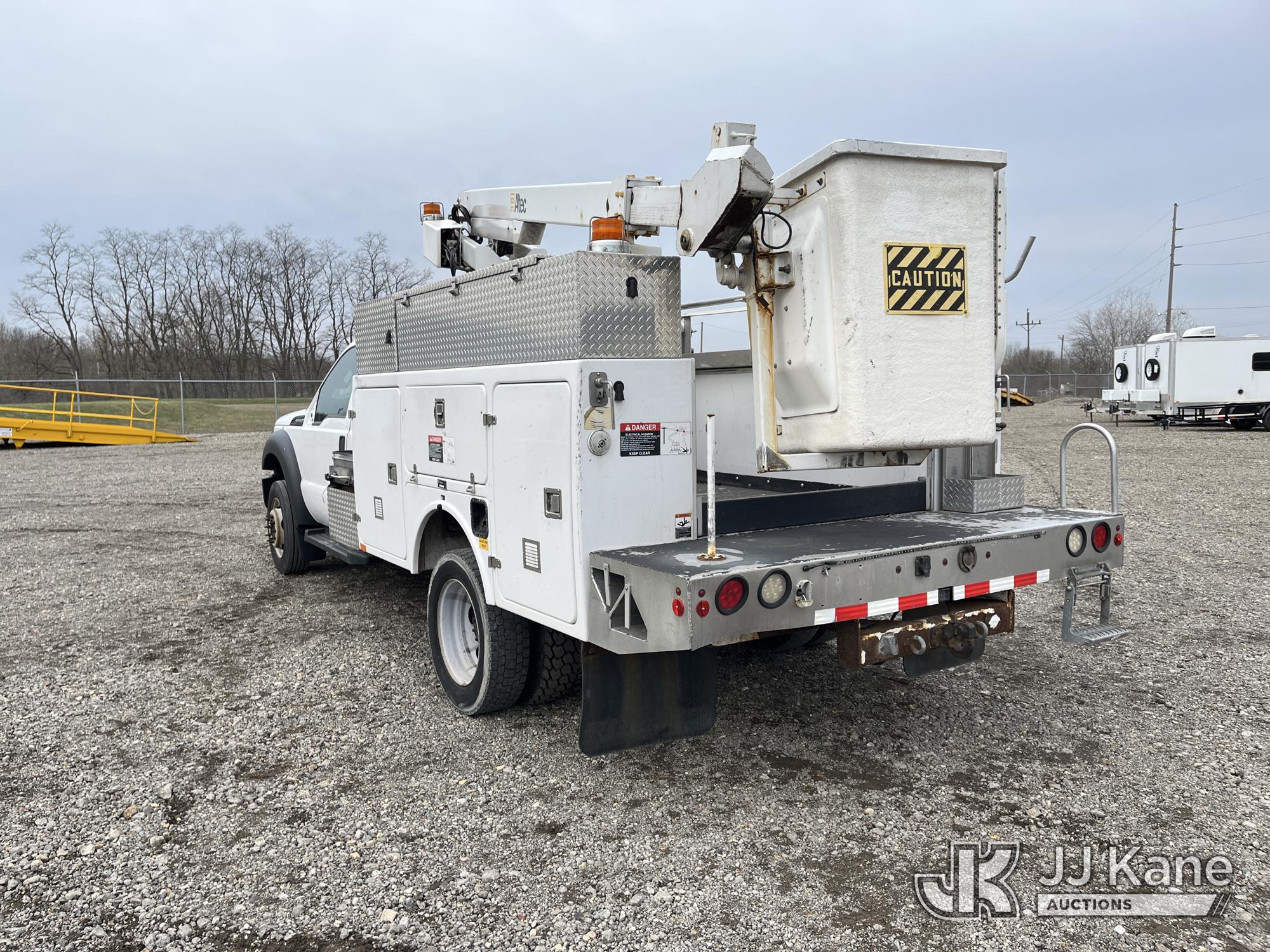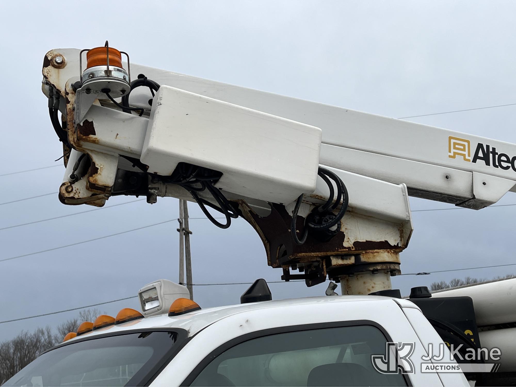 Altec AT200-A, 35 ft, Telescopic Non-Insulated Bucket Truck s/n 0612BV18110, with single-man bucket, mounted behind cab on 2012 Ford F450 4x4 Service Truck, 10-cyl gas, Auto, A/C, (117,541 miles) (Runs & Moves) (Generator Missing, Upper Operation Unknown, Gas Cap & Line Missing, Driver & Passenger Side Mirrors Missing, Body Damage.) This is a Titled Item*