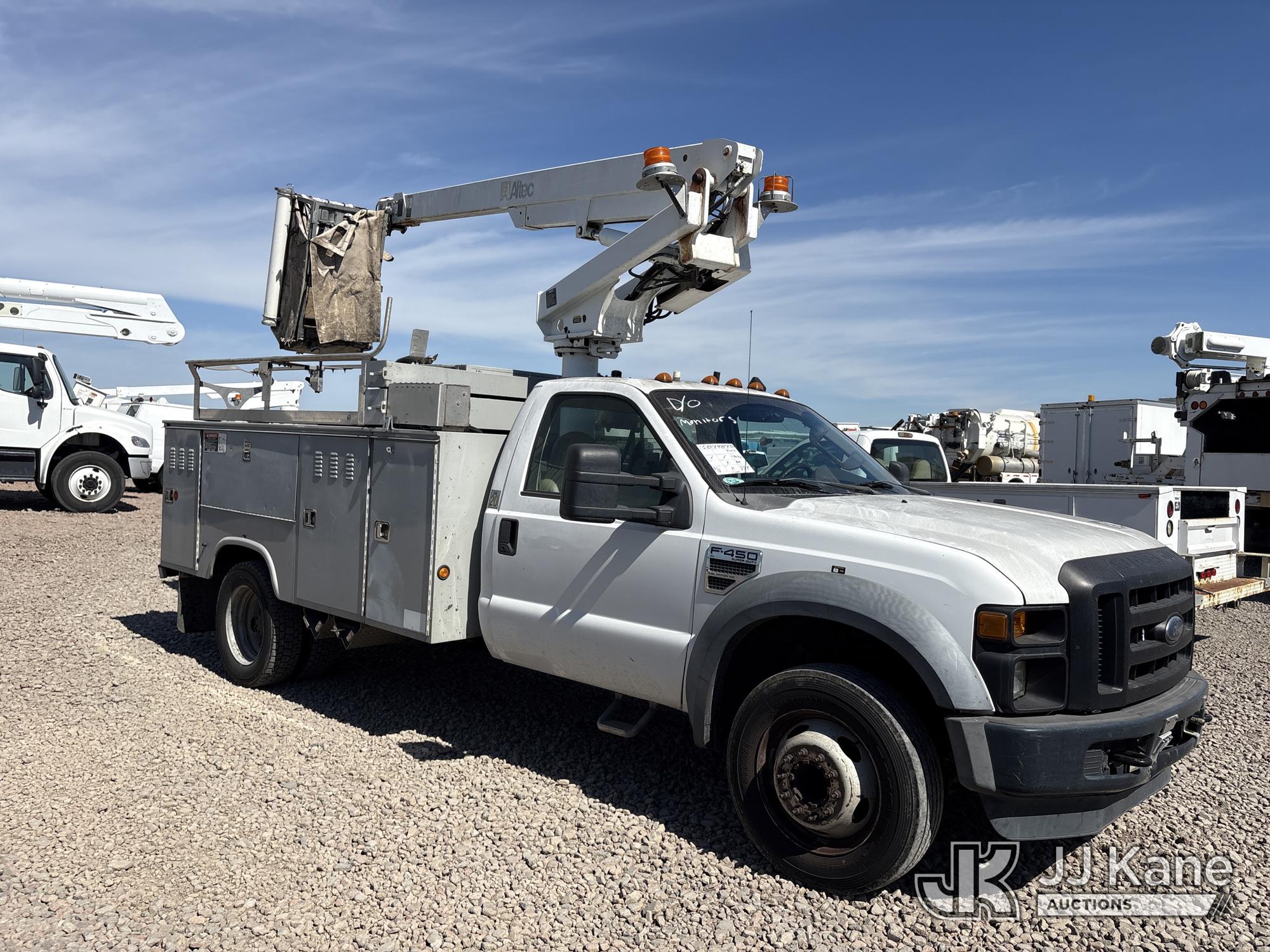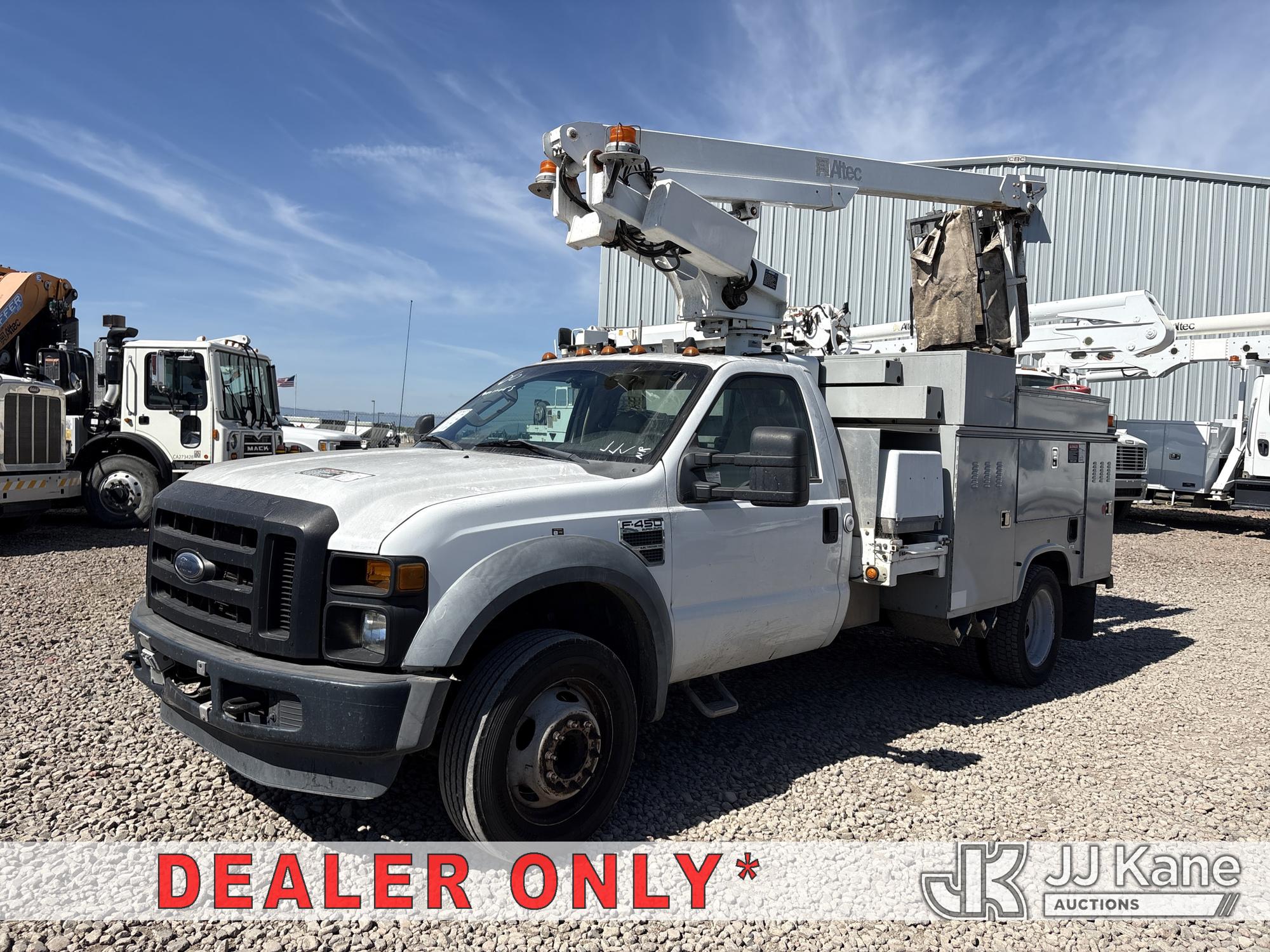 Altec AT200-A, 35 ft, Telescopic Non-Insulated Bucket Truck s/n 0208BV14793, with single-man bucket, mounted behind cab on 2008 Ford F-450 SD Regular Cab 2WD DRW Service Truck, s/n 1FD4F46Y48EC94145, 6.8L V10 SOHC 30V 4X2, GAS, Auto, A/C, (114,040 miles) (Runs, Moves & Operates, Monitors Did Not Pass Smog) (Reads 6,831 hours) (Bidding Restricted to Licensed Vehicle Dealers Only), May be subject to ARB Regulations This is a Titled Item*