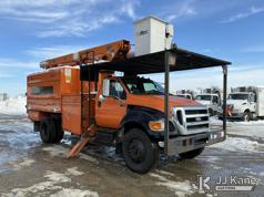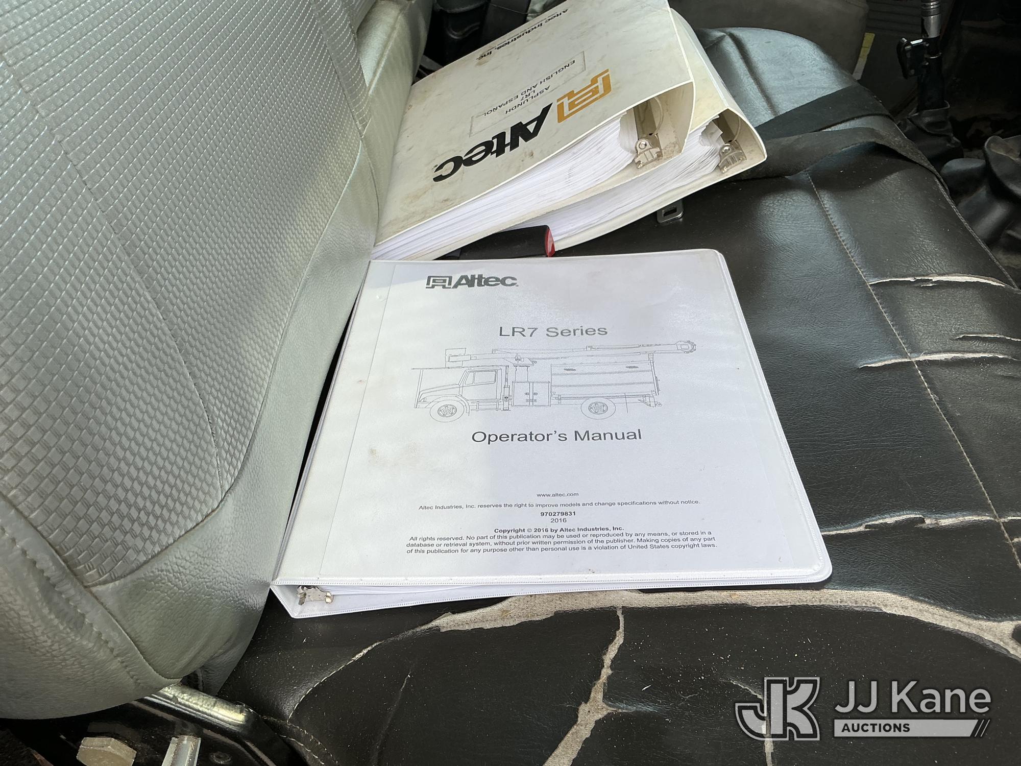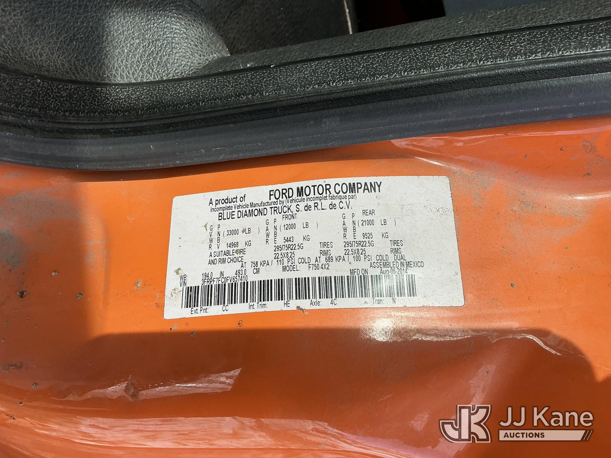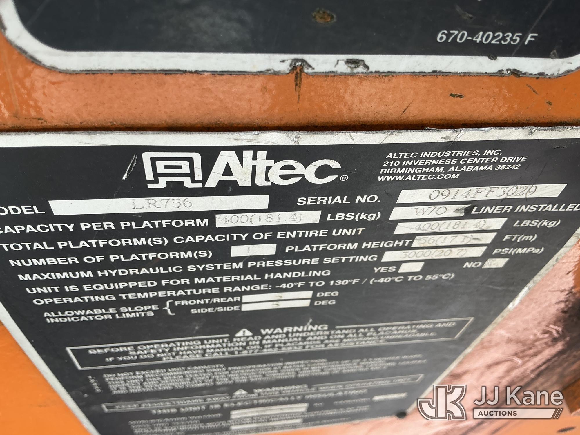 Altec LR756, 61 ft, Over-Center Bucket Truck s/n 0914FF3029, with single-man bucket & 2 hyd outriggers, mounted behind cab on 2015 Ford F-750 Chipper Dump Truck, Cummins 6.7L 4X2, diesel, 6-spd, (74,610 miles) (Runs, Moves & Outriggers Operate) (No Brakes, Must Tow, Seized Selector, Wiring Disconnected/Missing, Upper Condition Unknown, Brake & ABS Lights On, Seller States: May Need ABS Module, Needs Upper Valve Bank, Needs DC Pump Buttons Repaired) This is a Titled Item*