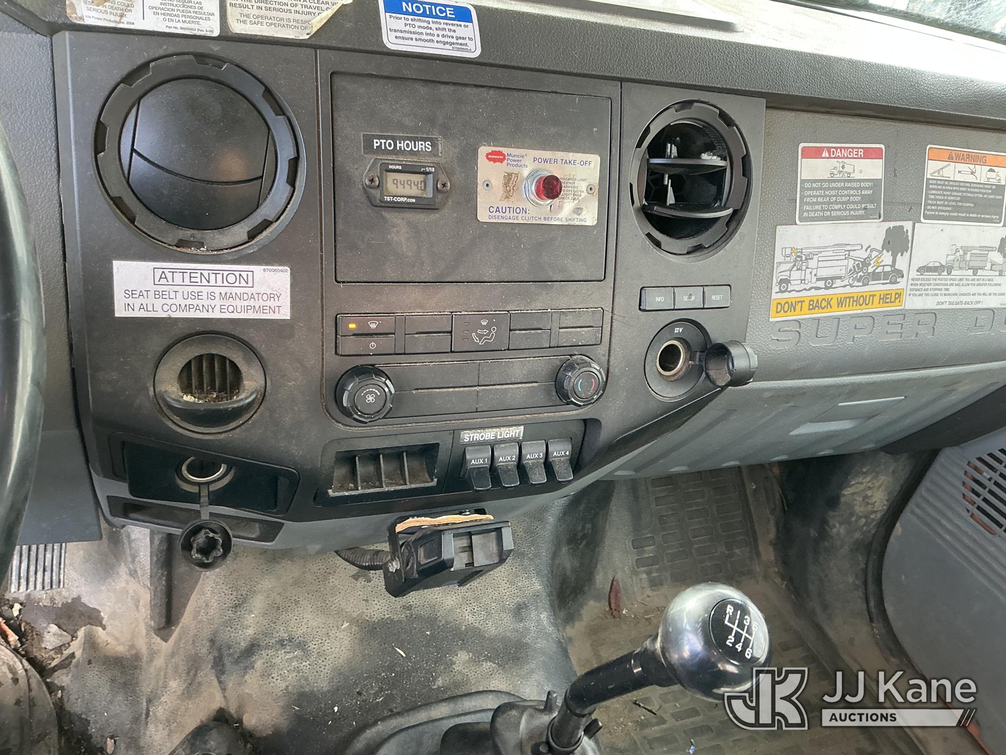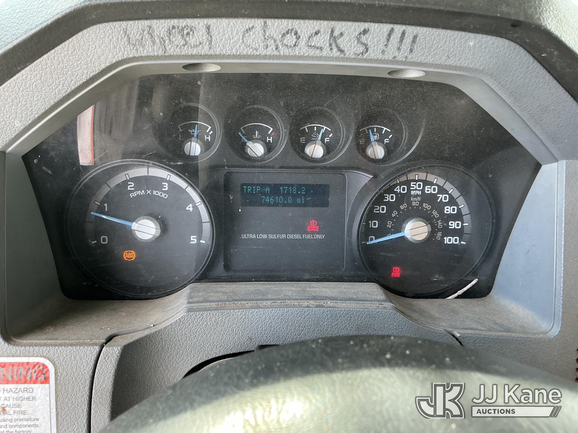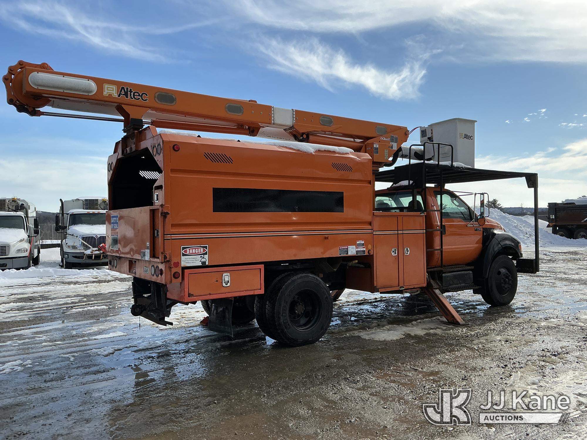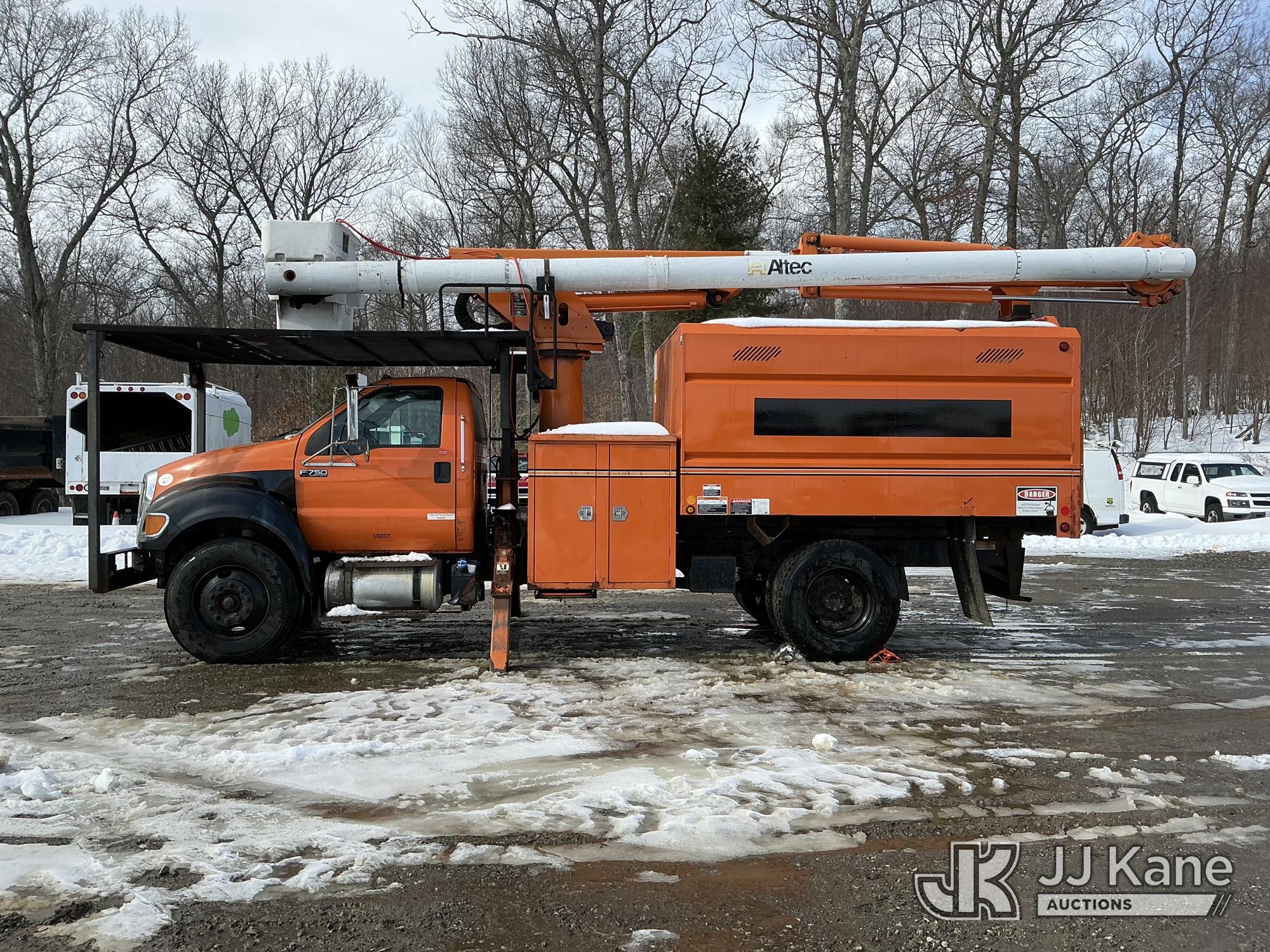 Altec LR756, 61 ft, Over-Center Bucket Truck s/n 0914FF3029, with single-man bucket & 2 hyd outriggers, mounted behind cab on 2015 Ford F-750 Chipper Dump Truck, Cummins 6.7L 4X2, diesel, 6-spd, (74,610 miles) (Runs, Moves & Outriggers Operate) (No Brakes, Must Tow, Seized Selector, Wiring Disconnected/Missing, Upper Condition Unknown, Brake & ABS Lights On, Seller States: May Need ABS Module, Needs Upper Valve Bank, Needs DC Pump Buttons Repaired) This is a Titled Item*