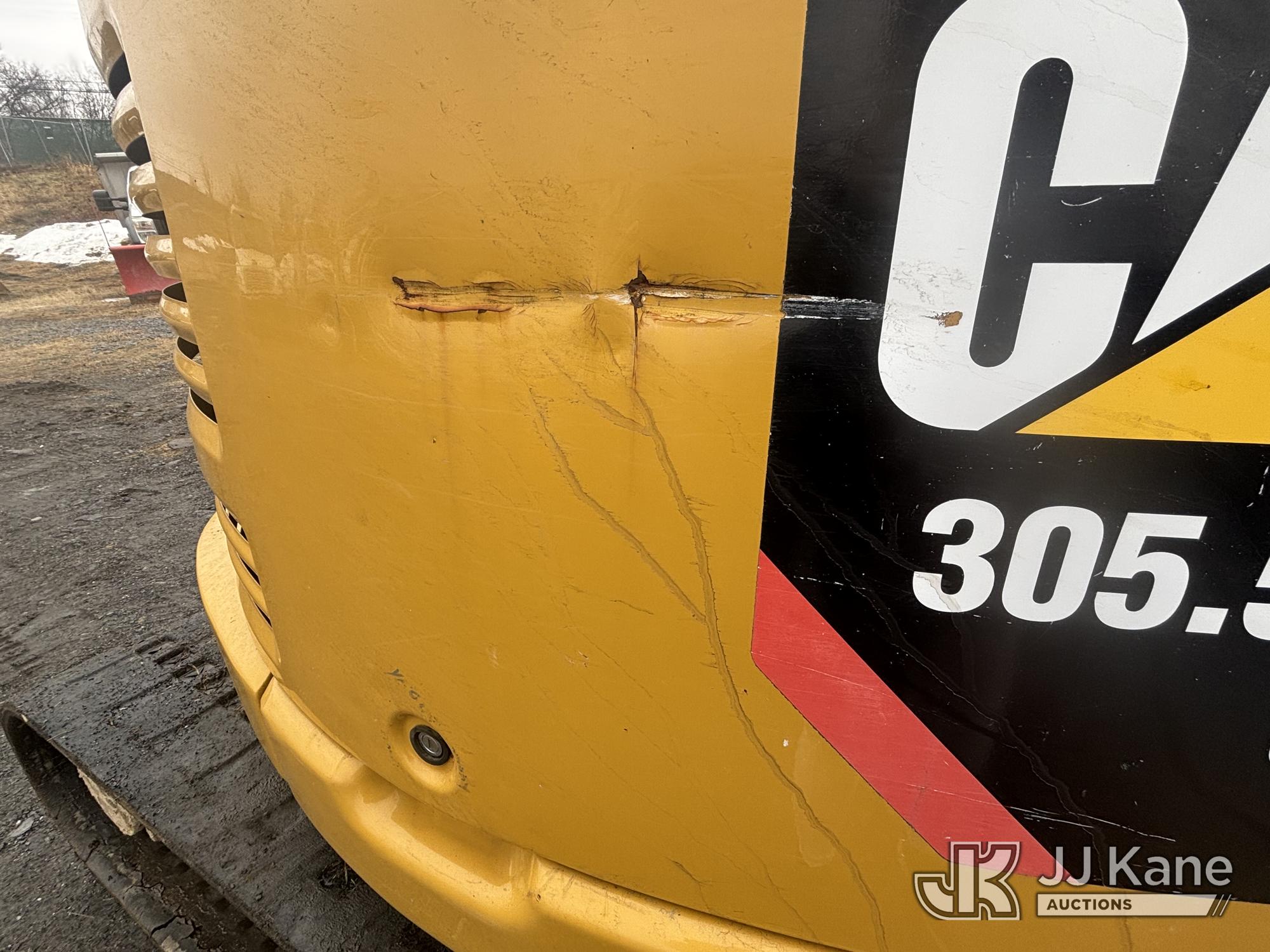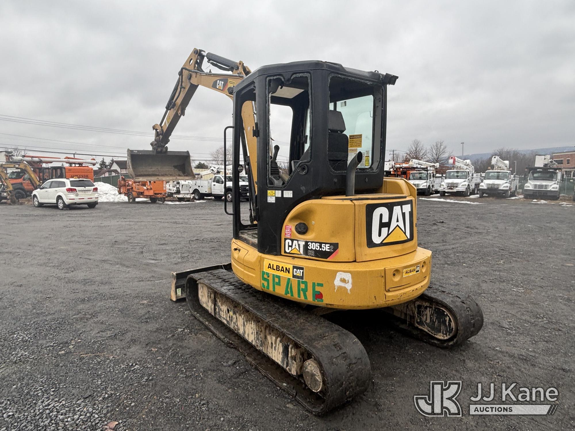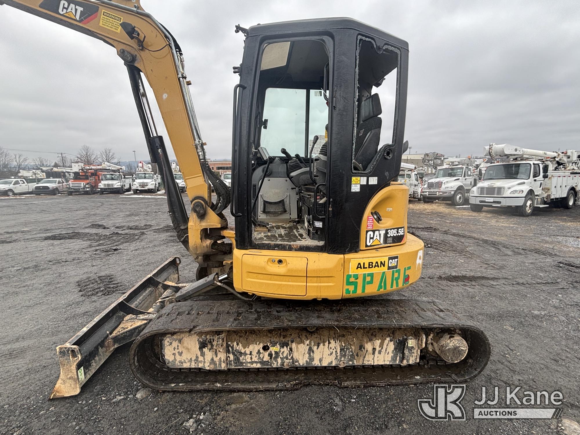 2018 Caterpillar 305.5E2 Track Machine Mini Tractor Loader, s/n CAT3055EECR506386, Cat C2.4L diesel, Shuttle, with rubber tracks, backfill blade & Battery Disconnect Switch, (Runs, Moves, & Operates, Broken Glass In Cab, Missing Door, Jammed Door Panels, Tracks Severely Worn & Torn, Rust) (Reads 4,667 hours)*