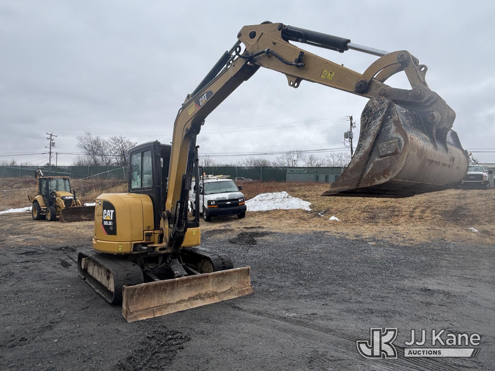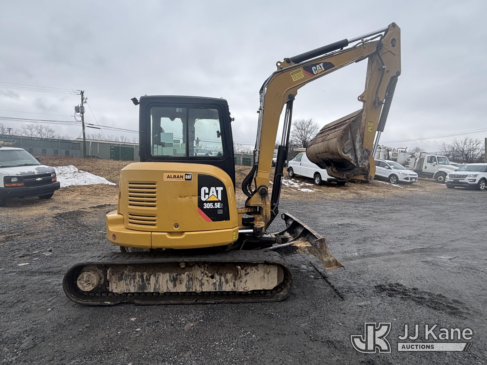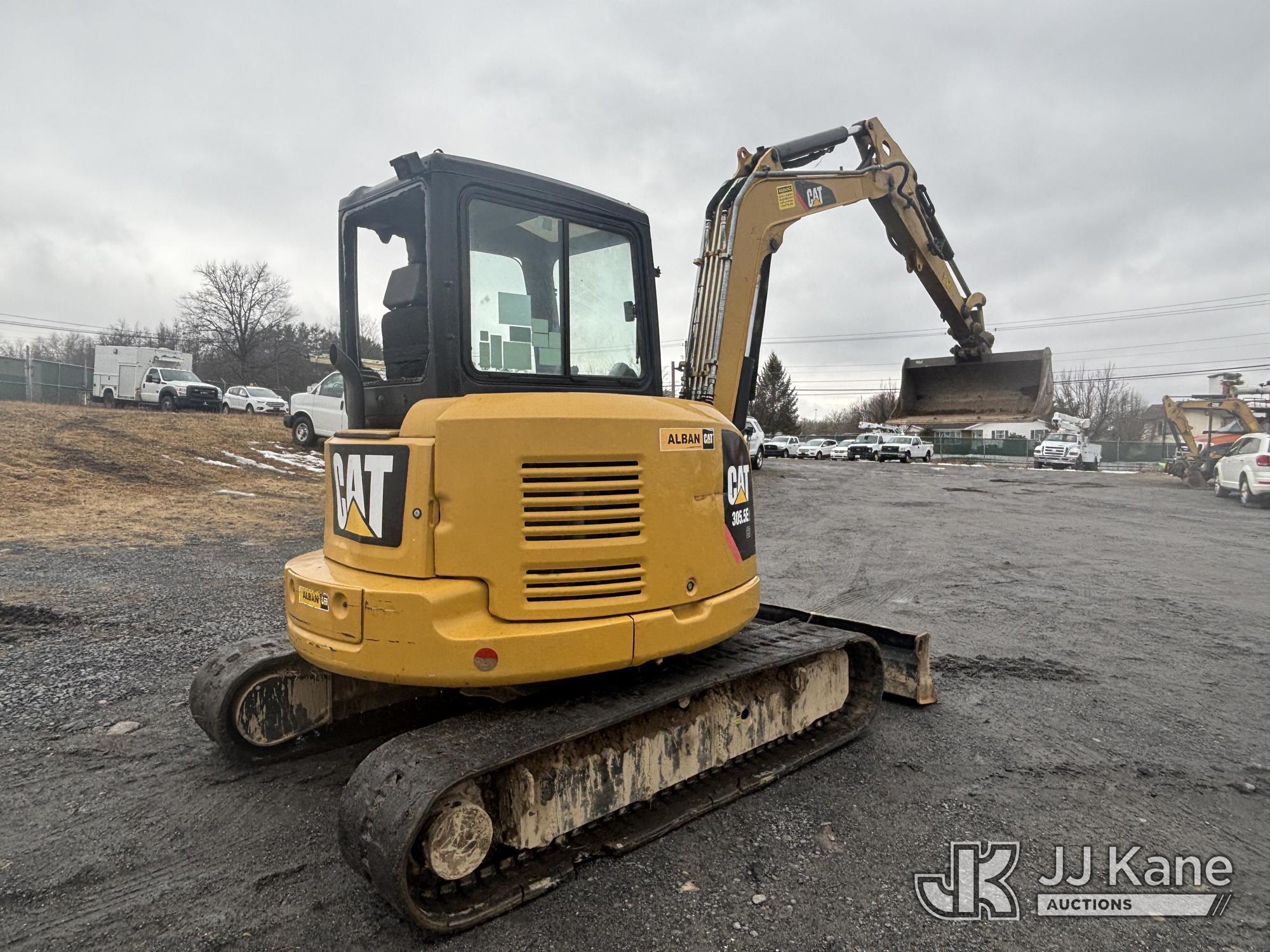 2018 Caterpillar 305.5E2 Track Machine Mini Tractor Loader, s/n CAT3055EECR506386, Cat C2.4L diesel, Shuttle, with rubber tracks, backfill blade & Battery Disconnect Switch, (Runs, Moves, & Operates, Broken Glass In Cab, Missing Door, Jammed Door Panels, Tracks Severely Worn & Torn, Rust) (Reads 4,667 hours)*