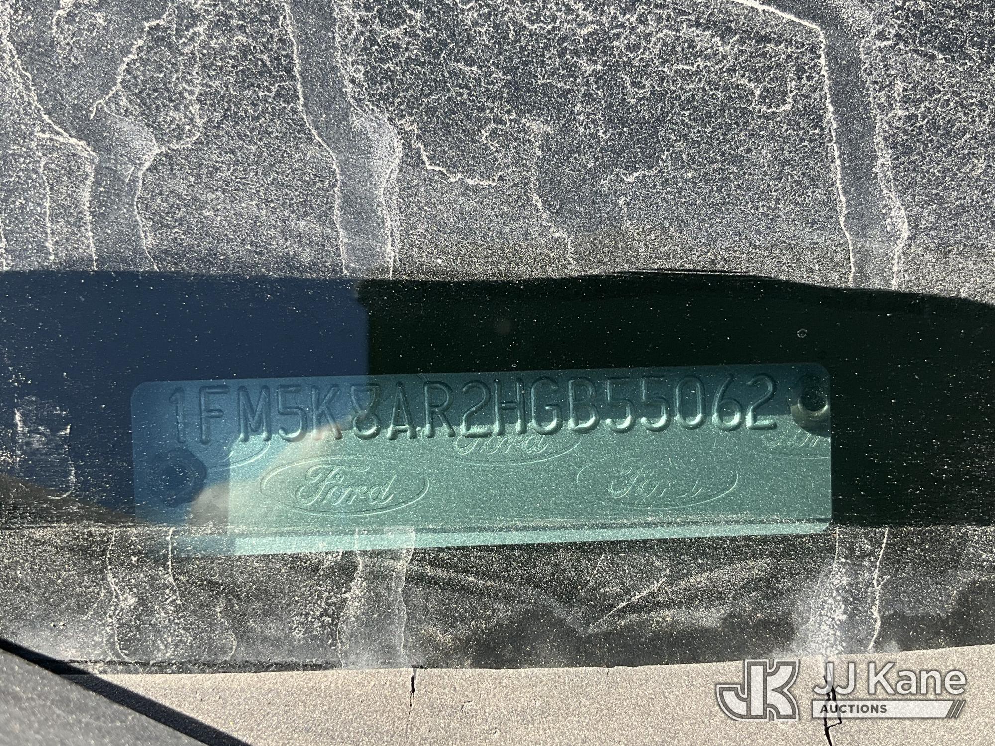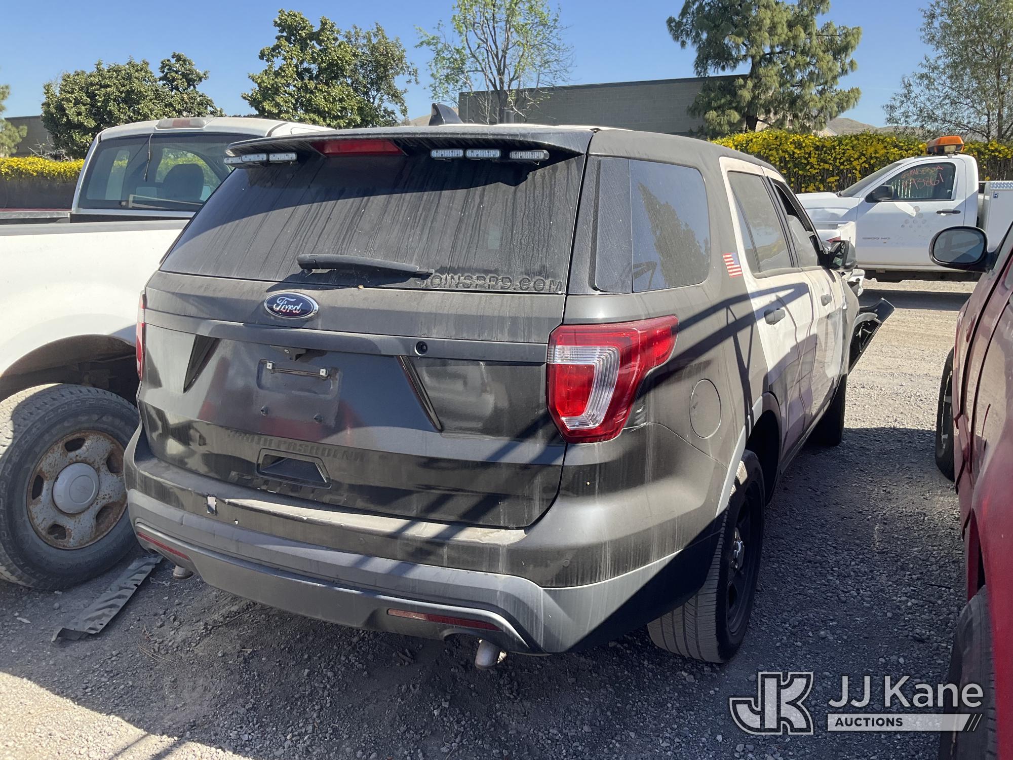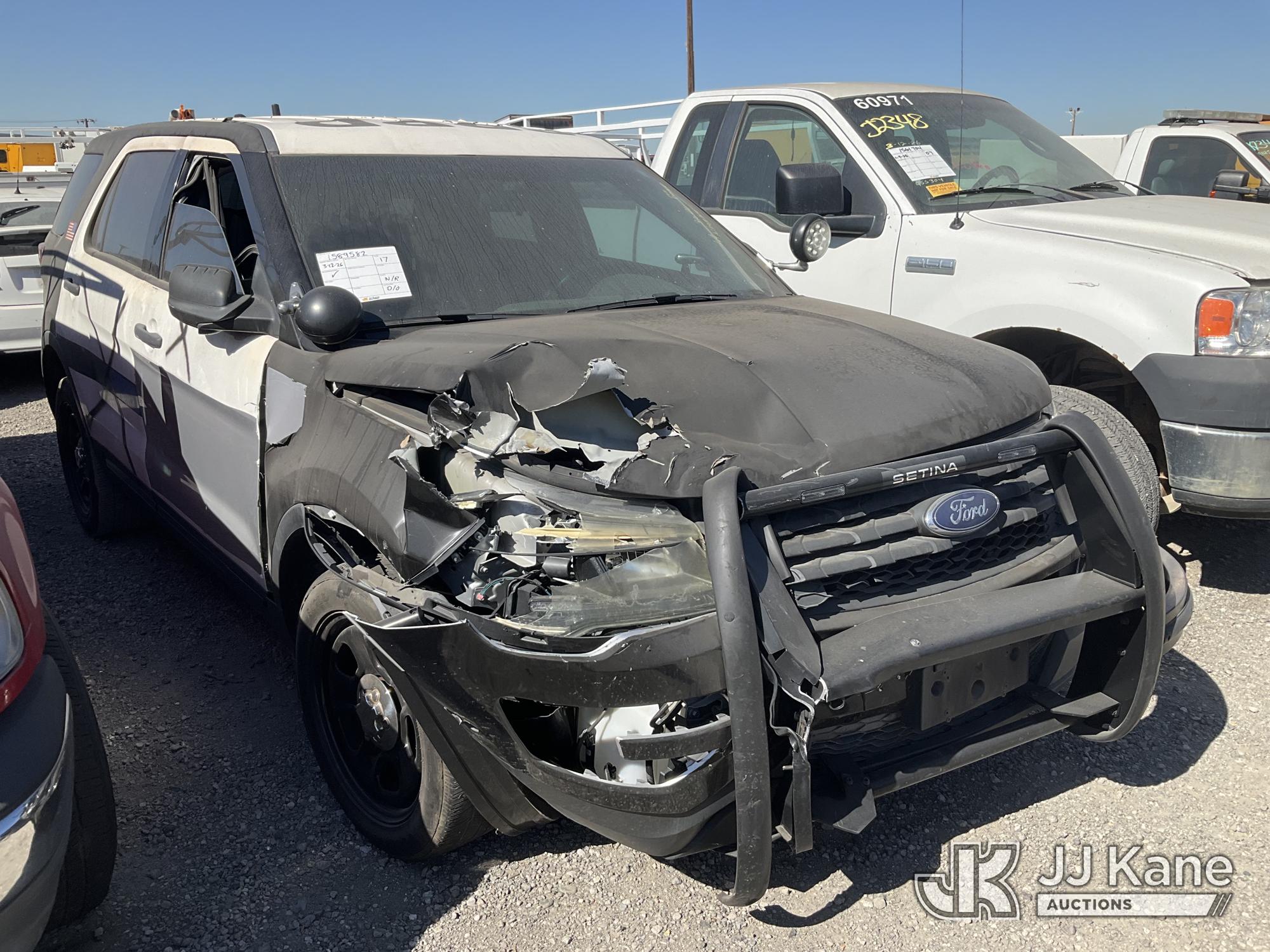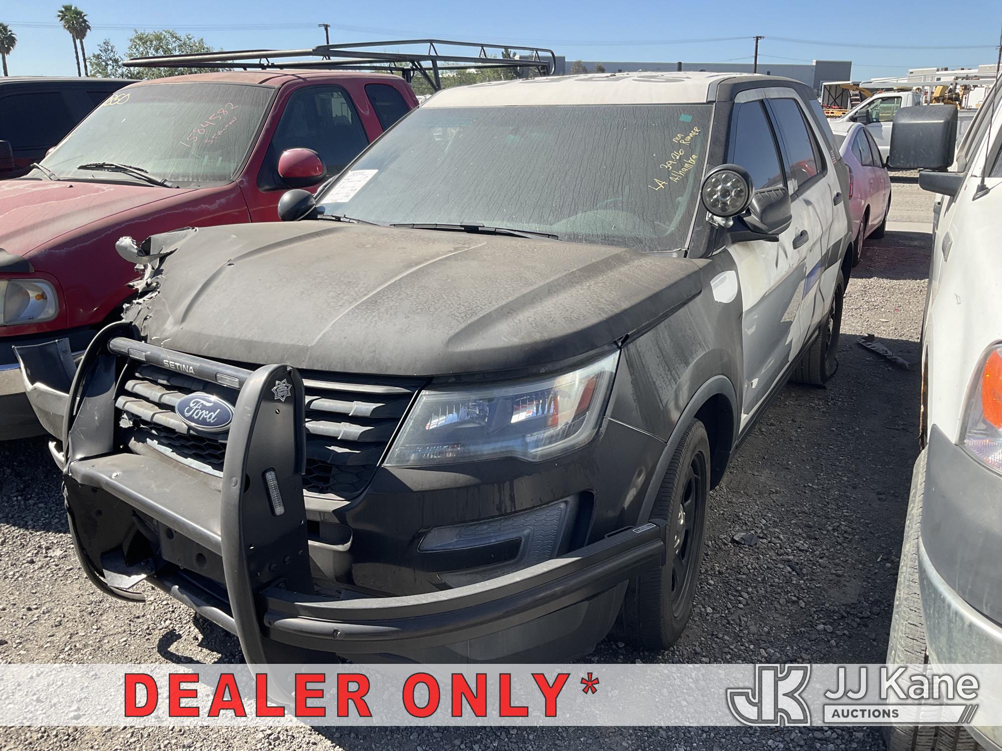 2017 Ford Explorer Police 4WD 4-Door Sport Utility Vehicle, s/n 1FM5K8AR2HGB55062, 3.7L V6 DOHC 24V GAS, 6-Speed Automatic, A/C, True Mileage Unknown Open Recall, Remedy Not Yet Available, Vehicle is subject to an open NHTSA safety recall related to IN SOME OF THE AFFECTED VEHICLES, IT MAY BE POSSIBLE THAT SOME OF THE EXTERIOR A-PILLAR APPLIQUE TRIM CLIP ATTACHMENTS ARE NOT PROPERLY ENGAGED DUE TO IMPROPER ASSEMBLY OR REPAIR. IF THIS OCCURS, THE A-PILLAR APPLIQUE TRIM, WHICH BORDERS THE RIGHT AND LEFT SIDE OF THE WINDSHIELD, MAY BE LOOSE, MISSING OR BECOME DETACHED., but a remedy for this recall does not appear to be available. Dealer is not authorized to perform the recall repair. Periodically contact the manufacturer or check the VIN on the NHTSA website at www.safercar.govivin to determine whether a remedy for the recall is available. As soon as a remedy is available, arrange to have the recall remedied with a dealer from that make of car to make such repair. Open Recall, Remedy Not Yet Available, Vehicle is subject to an open NHTSA safety recall related to N YOUR VEHICLE, THE DRIVER AND FRONT PASSENGER DOOR B-PILLAR TRIM APPLIQUES MAY BECOME PARTIALLY OR FULLY DETACHED. YOU MAY VISUALLY NOTICE THE B-PILLAR TRIM APPLIQUES SEPARATING FROM THE TOP OF THE FRONT DOORS WHEN ENTERING EXITING THE VEHICLE AND OR HEAR WIND NOISE AND RATTLING NOISE AS YOU DRIVE., but a remedy for this recall does not appear to be available. Dealer is not authorized to perform the recall repair. Periodically contact the manufacturer or check the VIN on the NHTSA website at www.safercar.govivin to determine whether a remedy for the recall is available. As soon as a remedy is available, arrange to have the recall remedied with a dealer from that make of car to make such repair. (Not Running, No Key, Wrecked, Body Damage, 2 Open Recalls, Remedy Not Yet Available, Must Be Towed) (Bidding Restricted to Licensed Vehicle Dealers Only), This is a Titled Item*