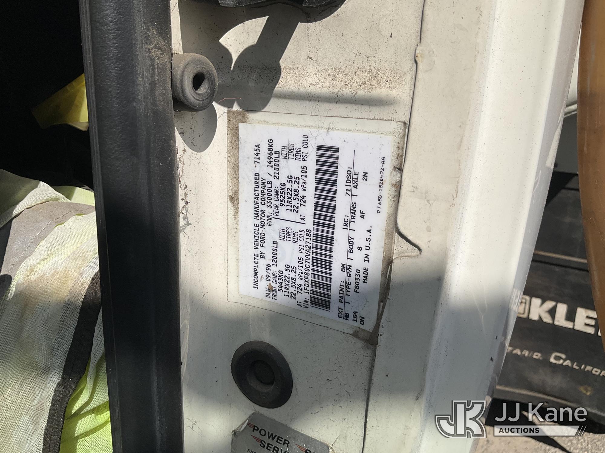 1997 Ford F800 Tank Truck, 5.9L L6 4X2, DIESEL, Auto, (Exempt from Odometer Disclosure - Reads 14,388 miles) (Runs, Operation Unknown, Per Seller Brakes are Leaking Air) (Bidding Restricted to Licensed Vehicle Dealers Only), Subject to CARB Regs,CARB non Compliant,Cannot Operate on CA Roads/Highways until Compliant This is a Titled Item*