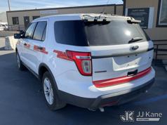 2015 Ford Explorer AWD Police Interceptor 4-Door Sport Utility Vehicle, 6-cyl gas, 6-Speed Automatic, A/C, (156,885 miles) (Runs & Moves) (Interior Stripped Of Parts, Open Recall, Remedy Not Yet Available, Vehicle is subject to an open NHTSA safety recall related to IN SOME OF THE AFFECTED VEHICLES, IT MAY BE POSSIBLE THAT SOME OF THE EXTERIOR A-PILLAR APPLIQUE TRIM CLIP ATTACHMENTS ARE NOT PROPERLY ENGAGED DUE TO IMPROPER ASSEMBLY OR REPAIR. IF THIS OCCURS, THE A-PILLAR APPLIQUE TRIM, WHICH BORDERS THE RIGHT AND LEFT SIDE OF THE WINDSHIELD, MAY BE LOOSE, MISSING OR BECOME DETACHED WHILE DRIVING AND CAN CREATE A ROAD HAZARD FOR OTHER ROAD USERS, INCREASING THE RISK OF A CRASH, but a remedy for this recall does not appear to be available. Dealer is not authorized to perform the recall repair. Periodically contact the manufacturer or check the VIN on the NHTSA website at www.safercar.gov to determine whether a remedy for the recall is available. As soon as a remedy is available, arrange to have the recall remedied with a dealer from that make of car to make such repair.) (Bidding Restricted to Licensed Vehicle Dealers Only), This is a Titled Item*