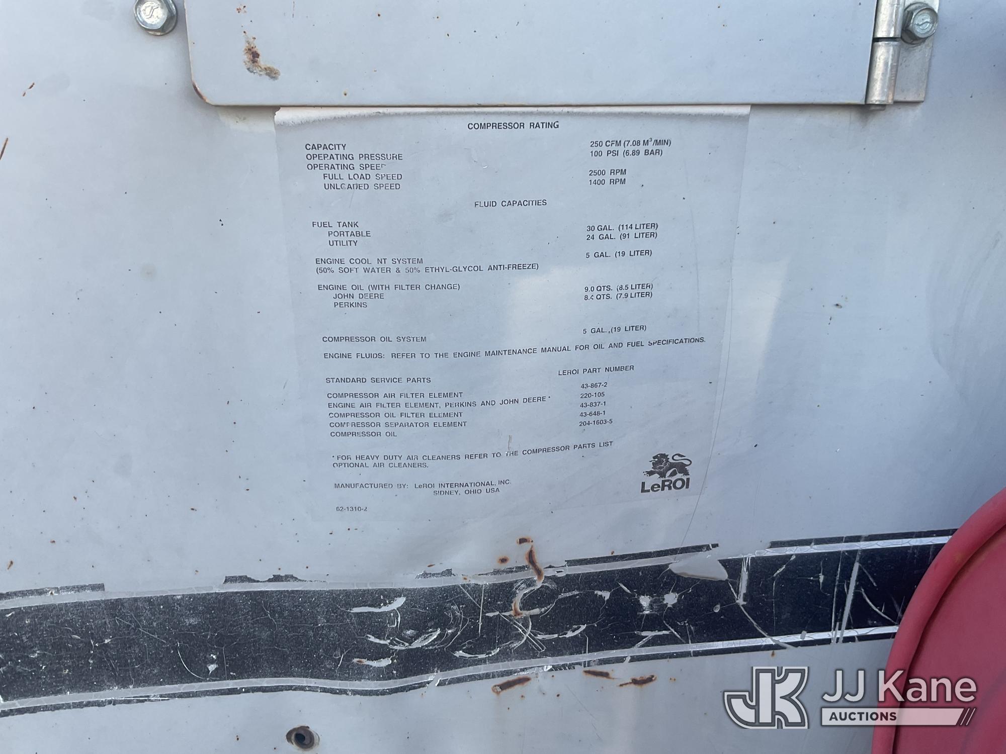 1996 LeRoi 250 Portable Air Compressor, John Deere diesel, (Runs) (Reads 1,086 hours) This is a Titled Item*