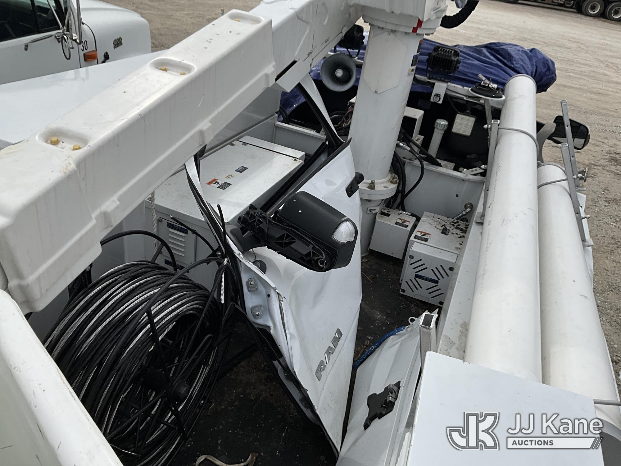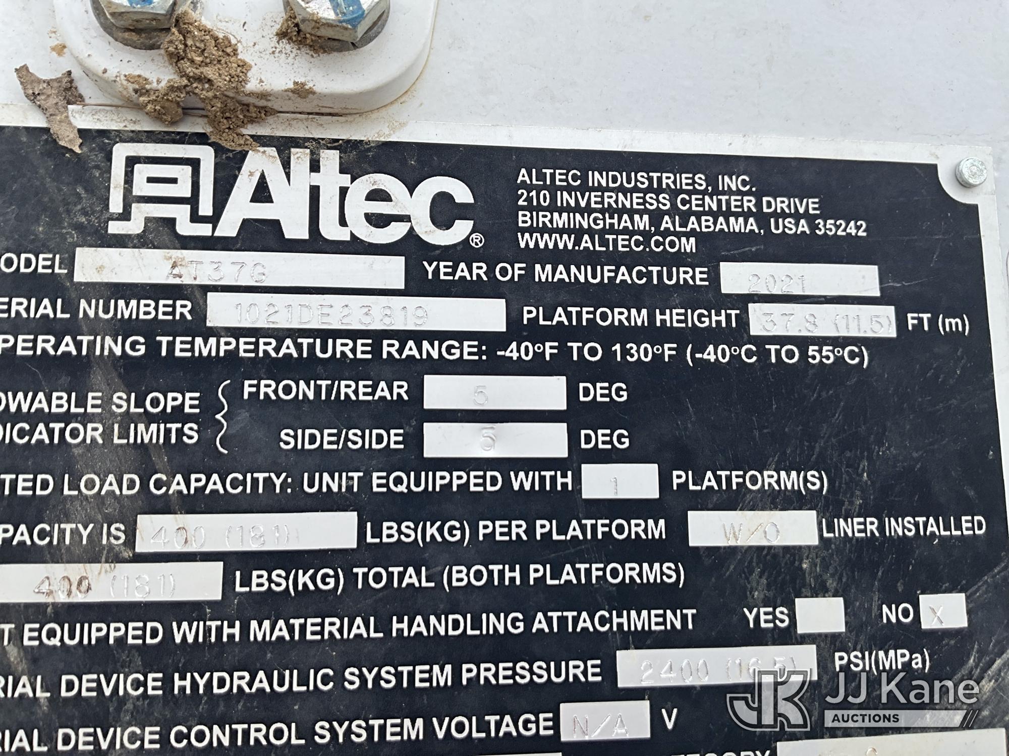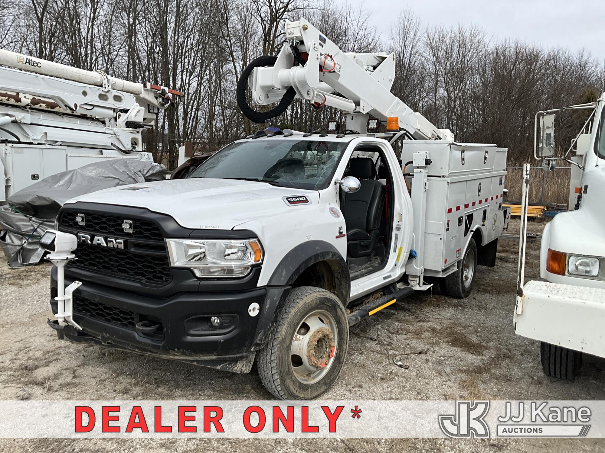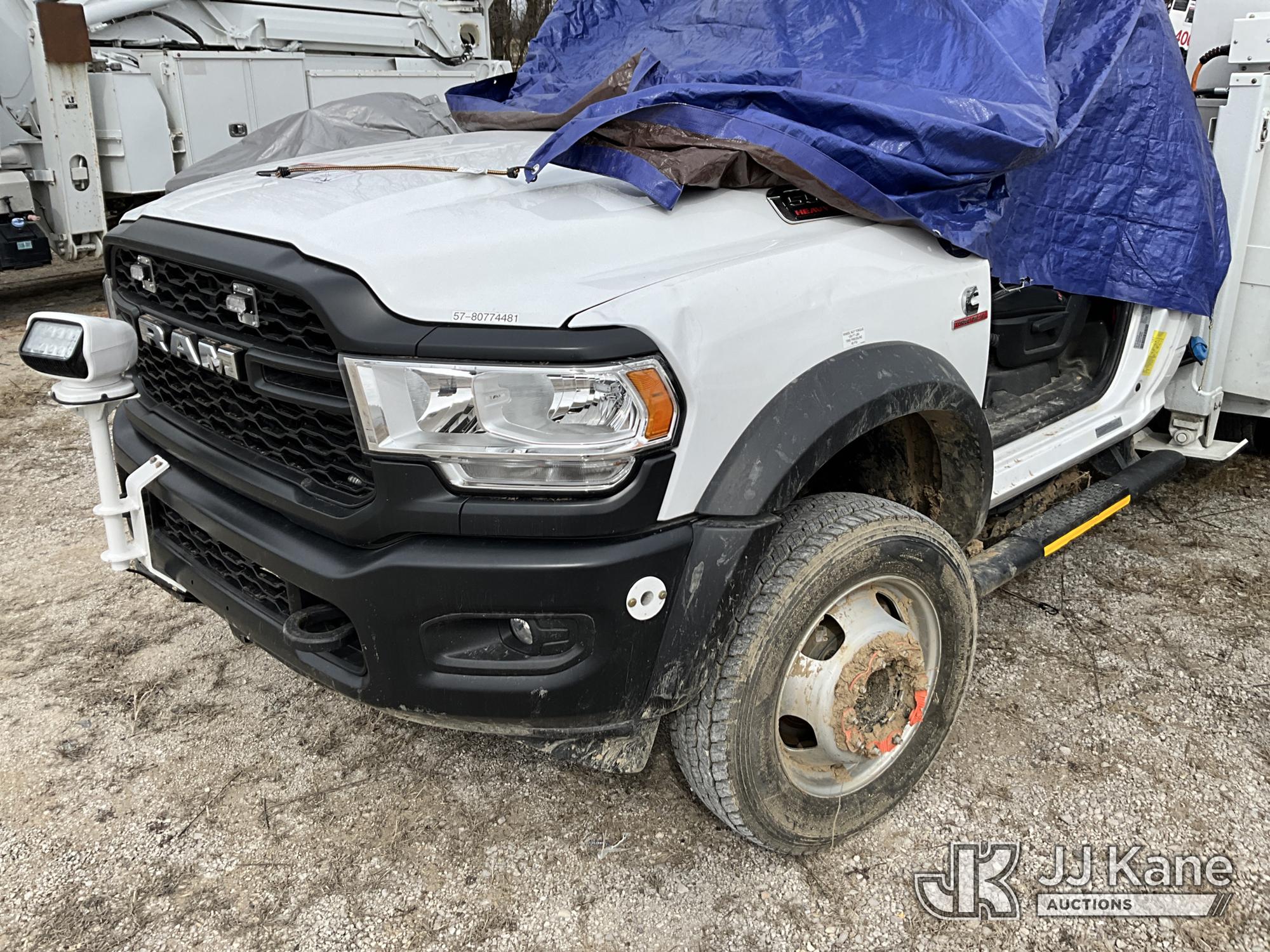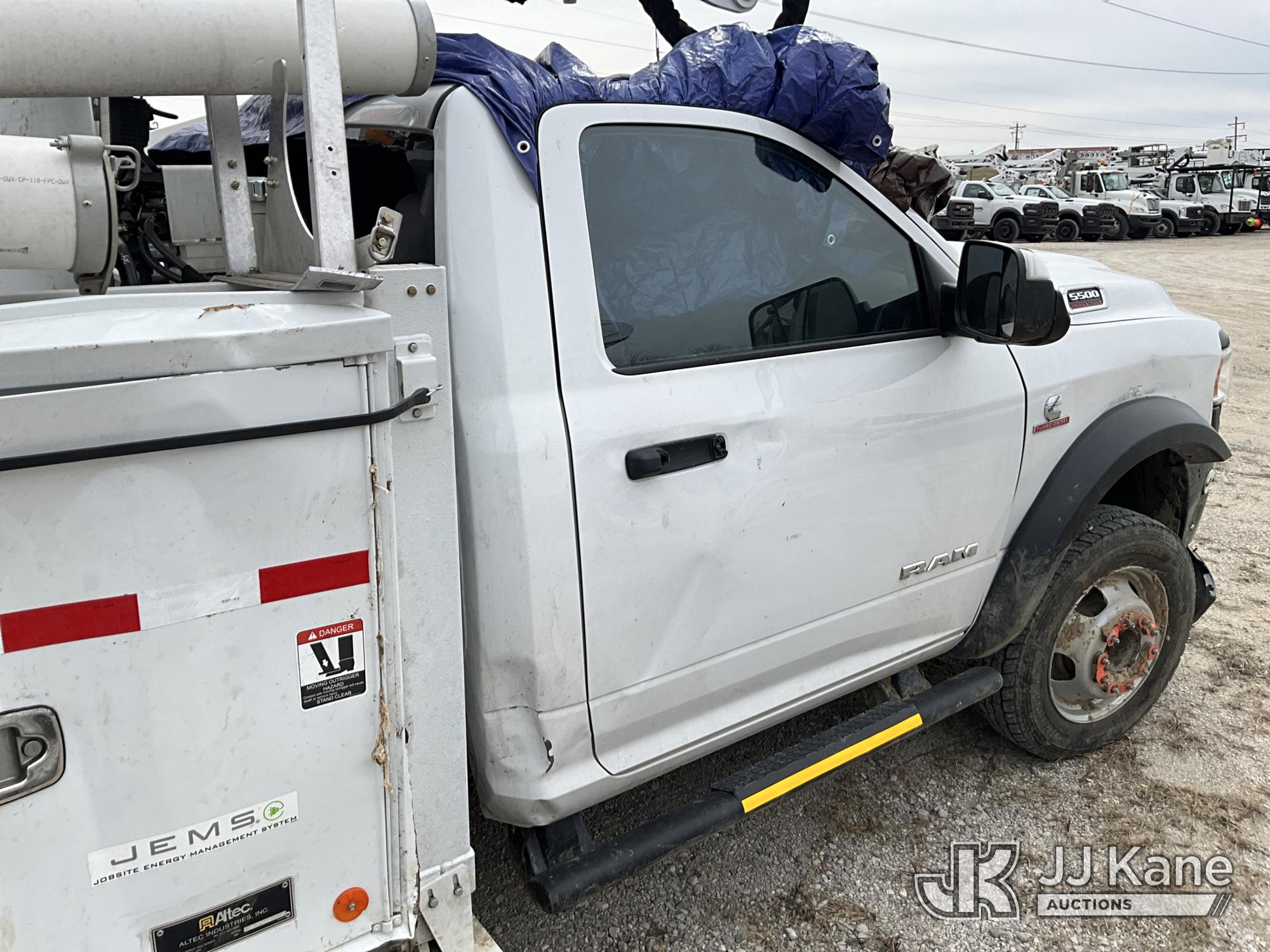 Altec AT37G, 41 ft, Articulating & Telescopic Bucket Truck s/n 1021DE23819, with single man bucket, mounted behind cab on 2021 RAM 5500 4x4 Service Truck, 6.7L L6 OHV 24V turbo diesel, Auto, True Mileage Unknown (Wrecked, Not Running, Condition Unknown) (This item has been removed from service due to the listed safety repairs that were not completed. The safety items below must be completed by an approved upper OEM facility before the unit can return to service: UNIT WRECKED/MISSING PARTS; REQUIRES MAJOR UNIT DAMAGE INSPECTION; COMPLETE ANY REQUIRED TESTING AND REPAIRS AFTER INSPECTIONS ARE COMPLETED.) (Bidding Restricted to Licensed Vehicle Dealers Only), This is a Titled Item*