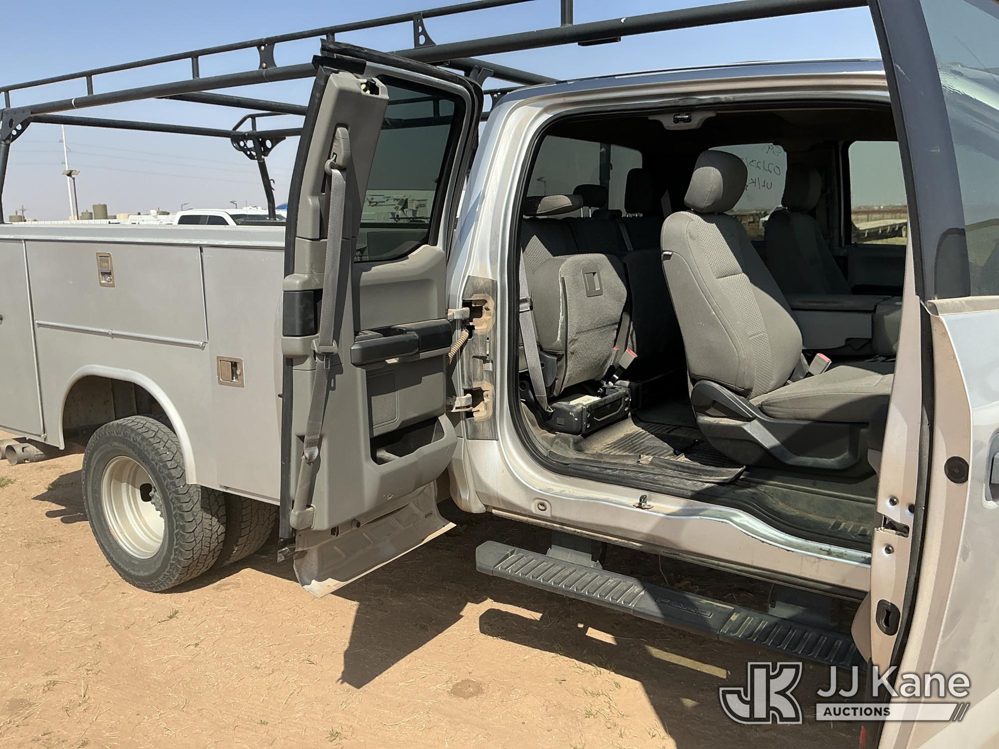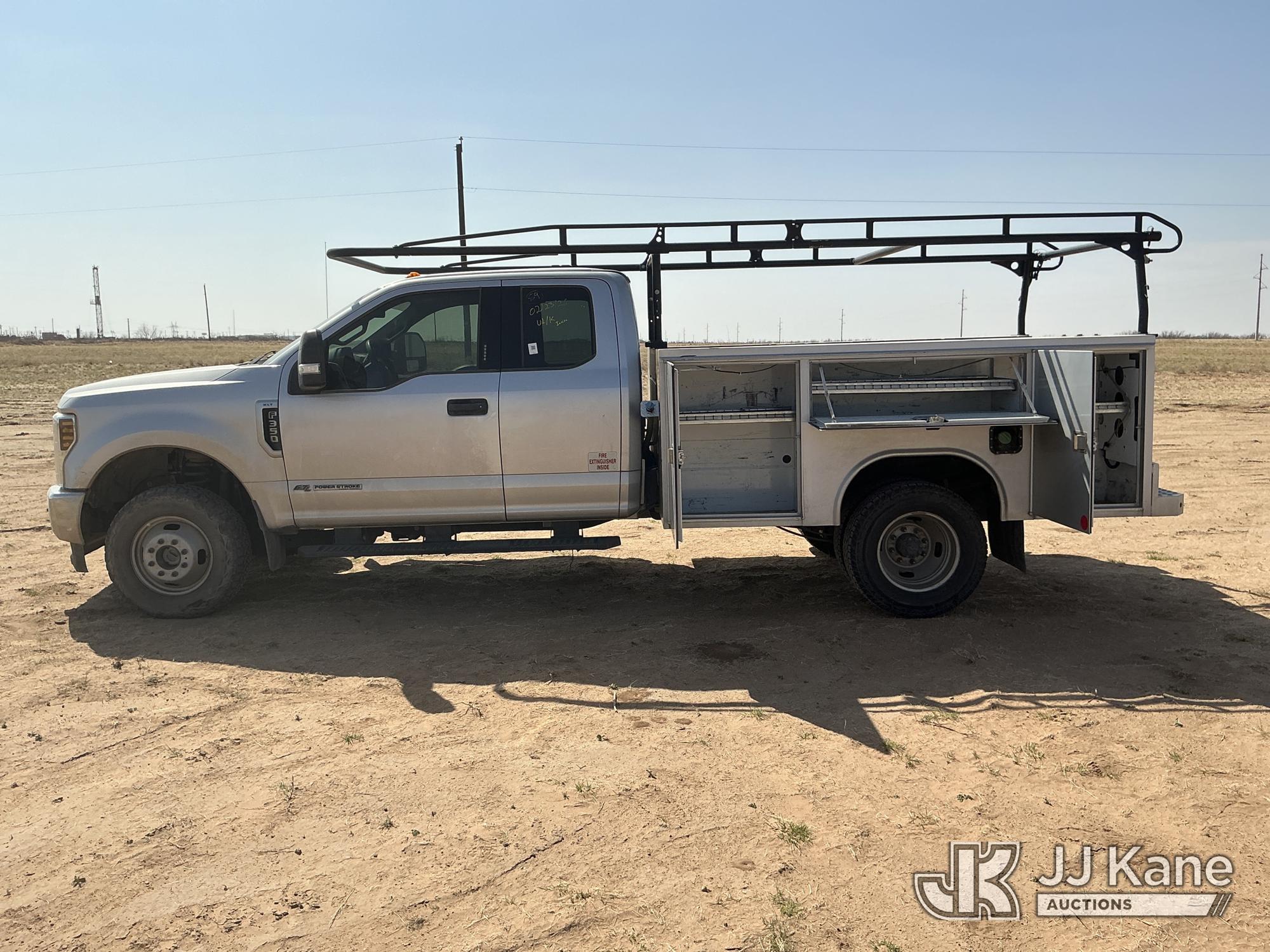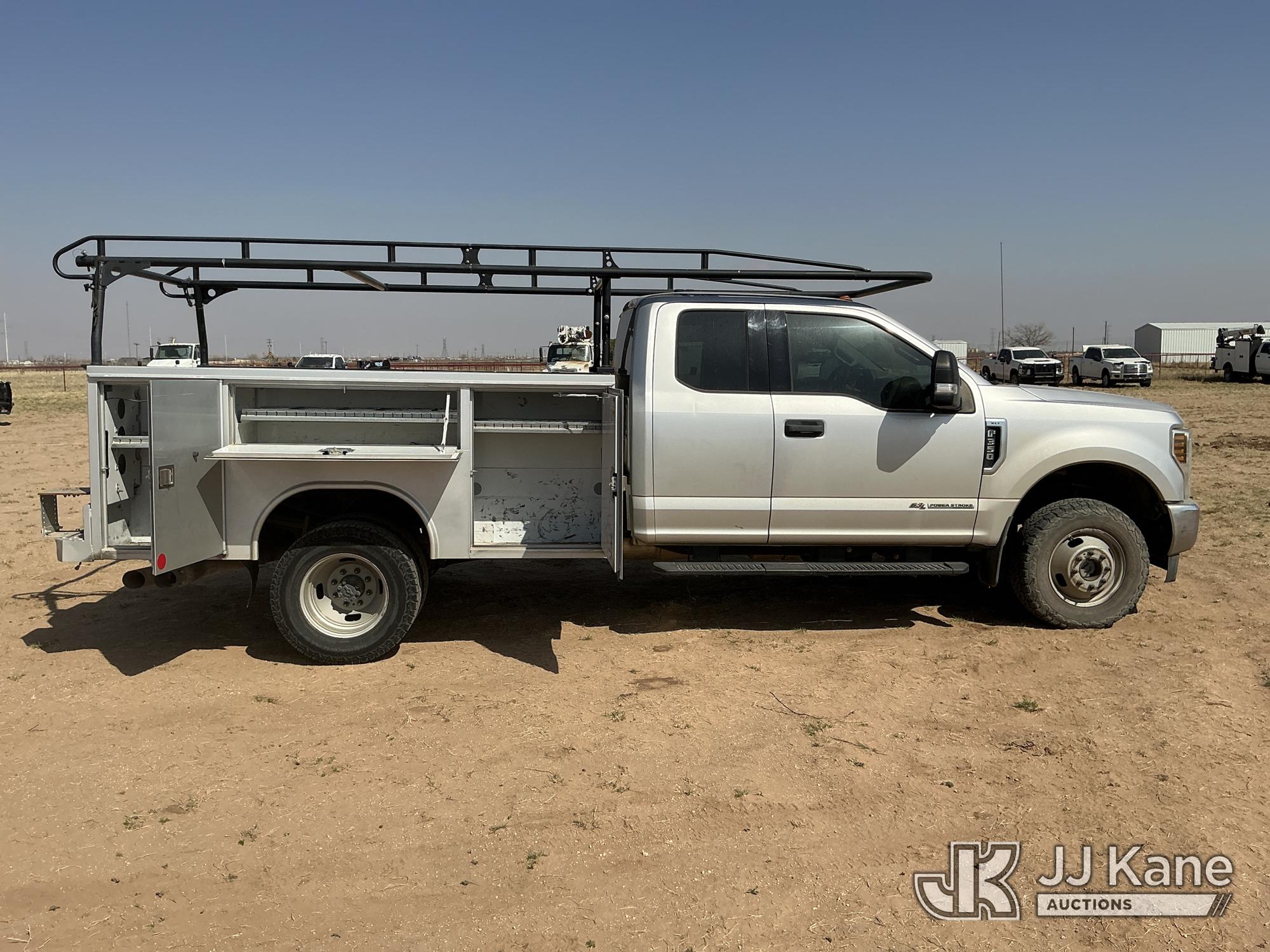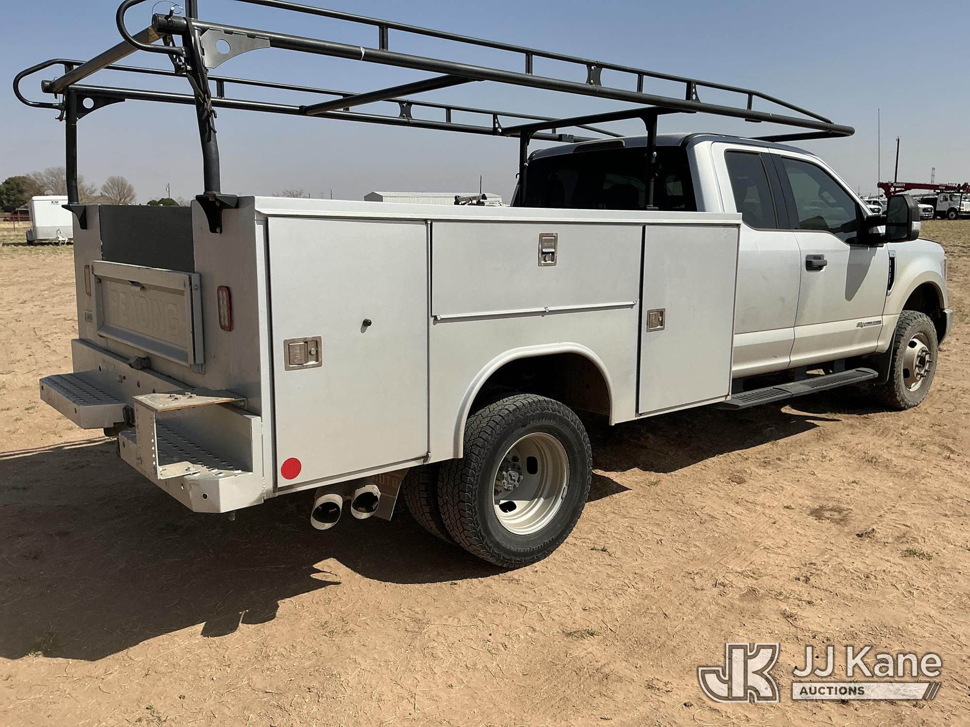 2018 Ford F-350 SD Extended-Cab Dual Wheel Pickup Truck, 6.7L Diesel 4WD, 6-Speed Automatic, A/C, with heavy duty front brush guard, ladder rack, (91,037 miles) (Runs & Moves) (Jump To Start, Check Engine Light Is On, Engine Idles Rough, Engine Exhaust Smoke Out Of The Exhaust While Idling, Windshield Cracked, Paint & Body Damage. Unit must be picked up within 10 calendar days or a $39.99/day storage fee and a $22.95 + plus tax impound fee will apply.) (Reads 3,310 hours) This is a Titled Item*