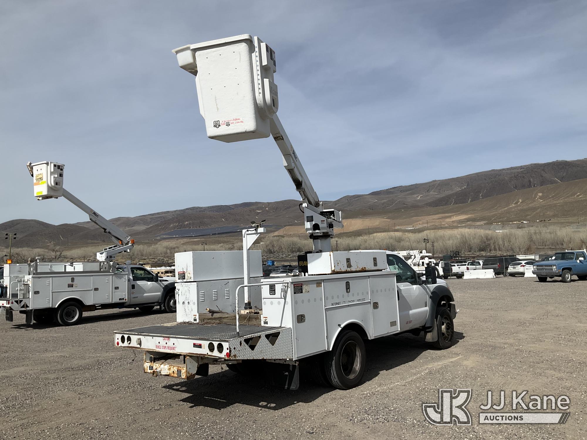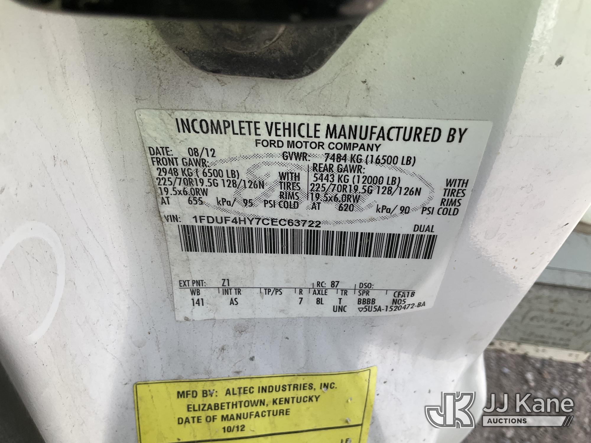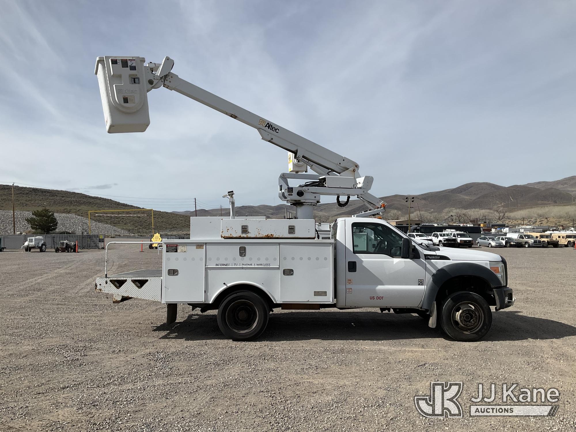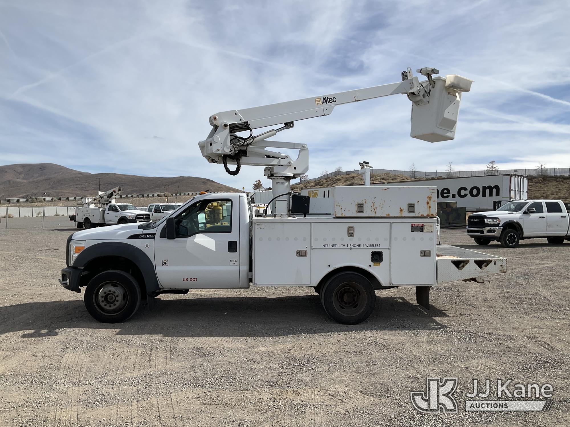 Altec AT235, 40 ft, Articulating & Telescopic Non-Insulated Bucket Truck s/n 0912BX5543, with single man bucket, mounted behind cab on 2012 Ford F-450 SD Service Truck, 10-cyl gas, 4WD, Auto, A/C, with Height: 10ft 10in, (189,845 miles) (Runs, Moves & Upper Operates) (Reads 419 hours) This is a Titled Item*