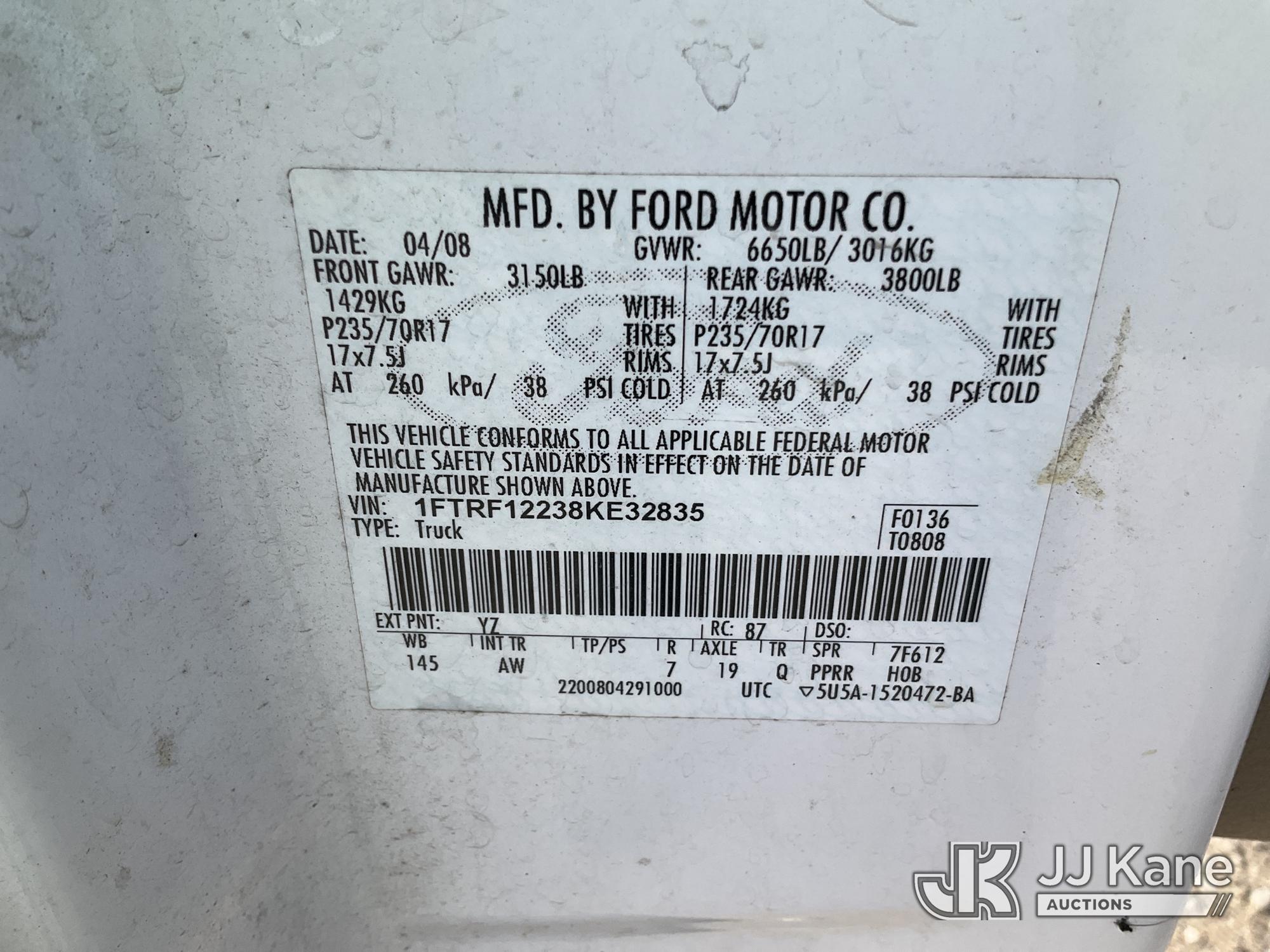 2008 Ford F150 Pickup Truck, 6-cyl gas, RWD, Auto, A/C, (160,366 miles) (Runs & Moves) (Body/Paint Damage) This is a Titled Item*