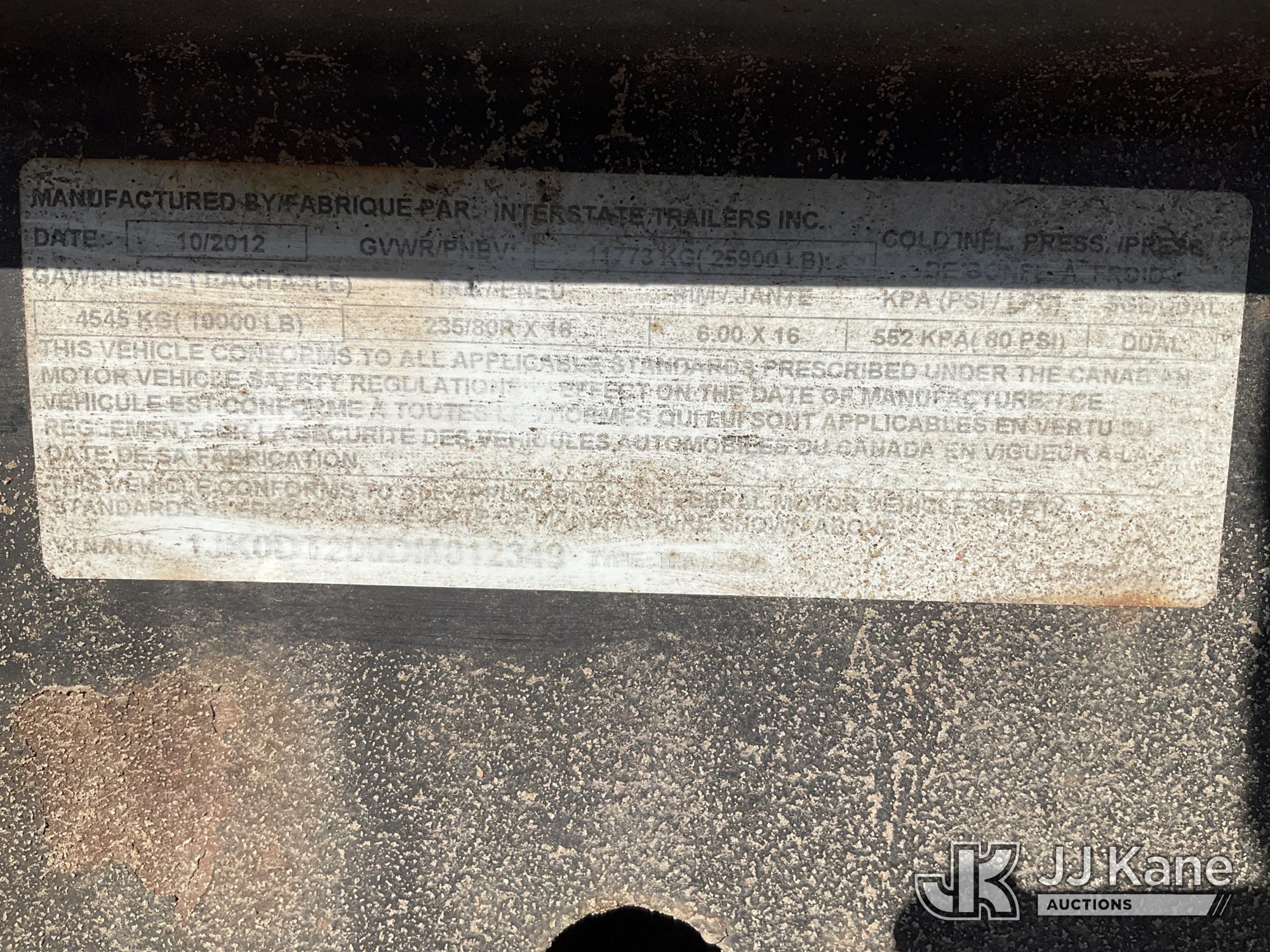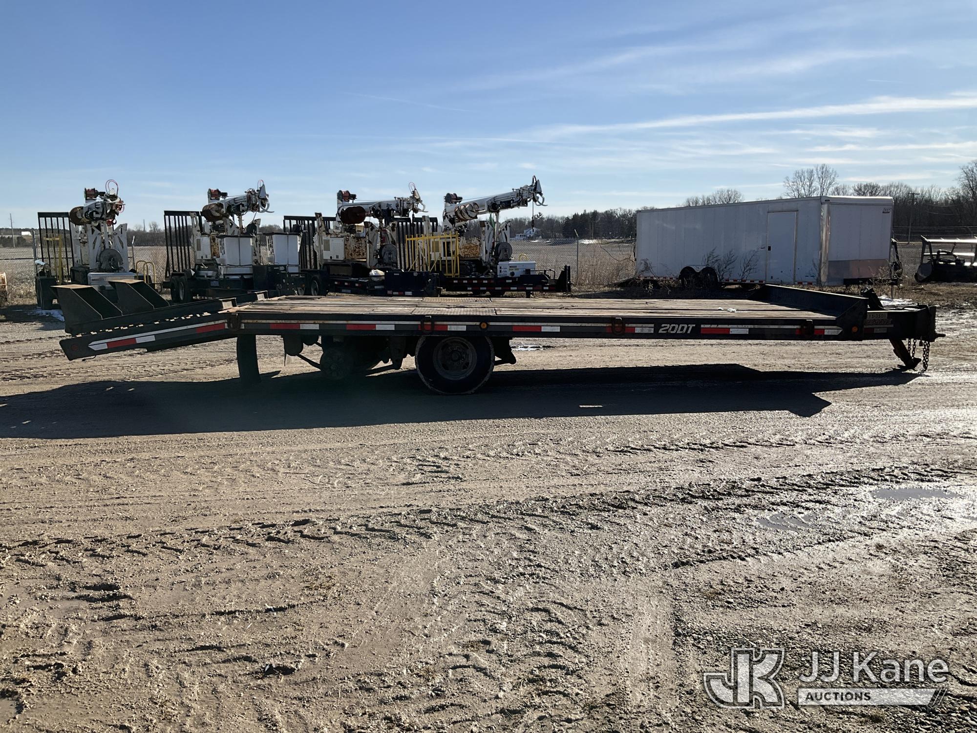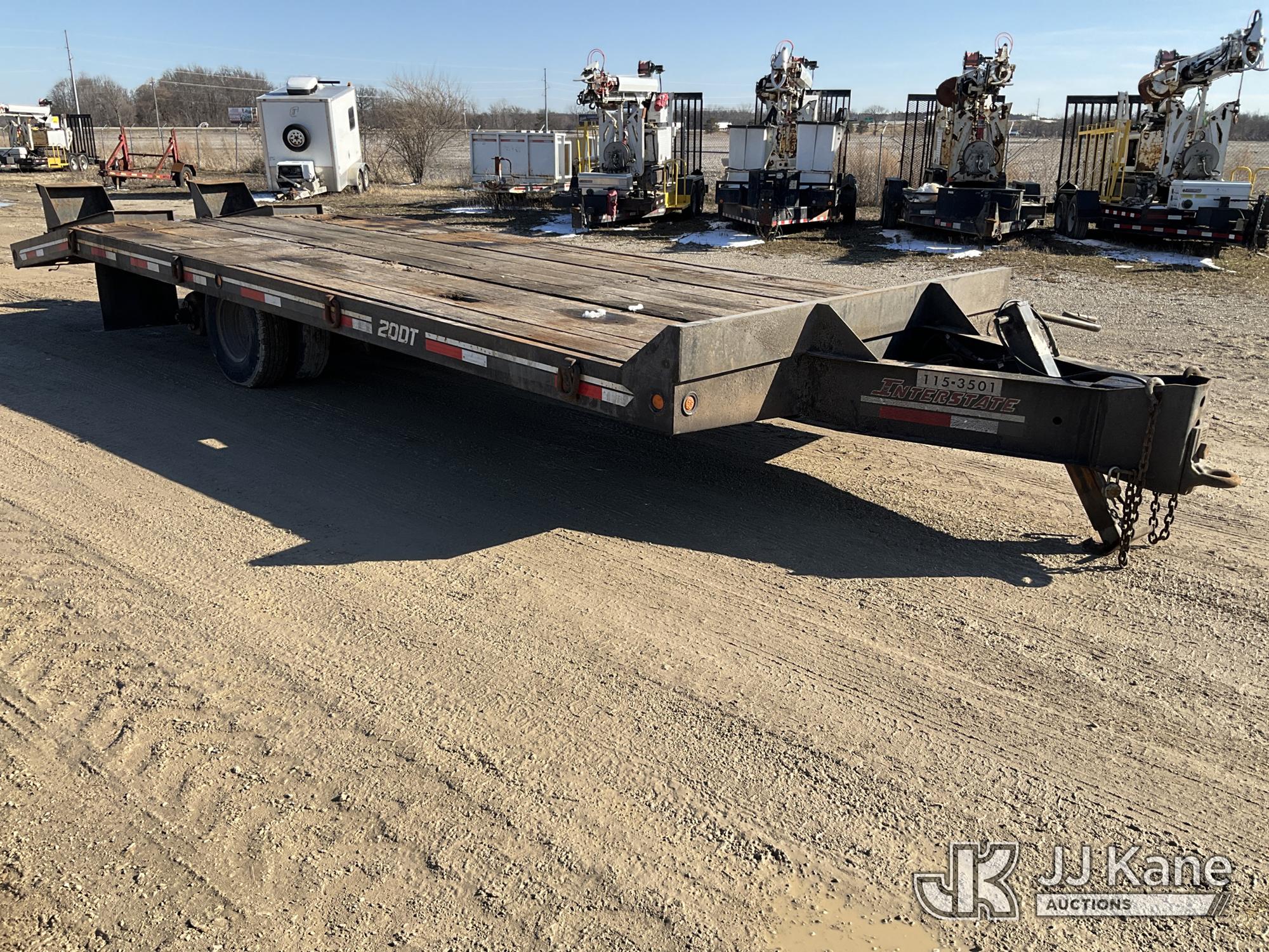 2013 Interstate 20DT with 20 ft. level deck over wheels, 5 ft. beaver tail, fold down ramps, (Missing Wheels, Wheel Bolts Broken, Tongue Jack Broken & Crossmember is Bent, Trailer Plug Wire Damaged) This is a Titled Item*