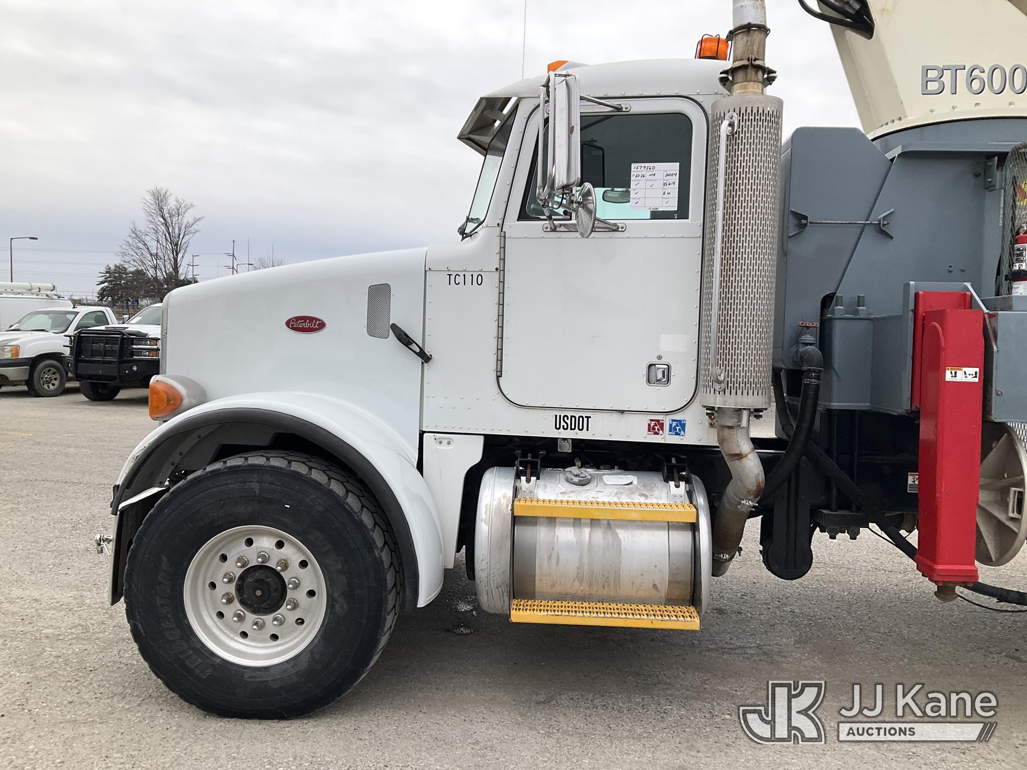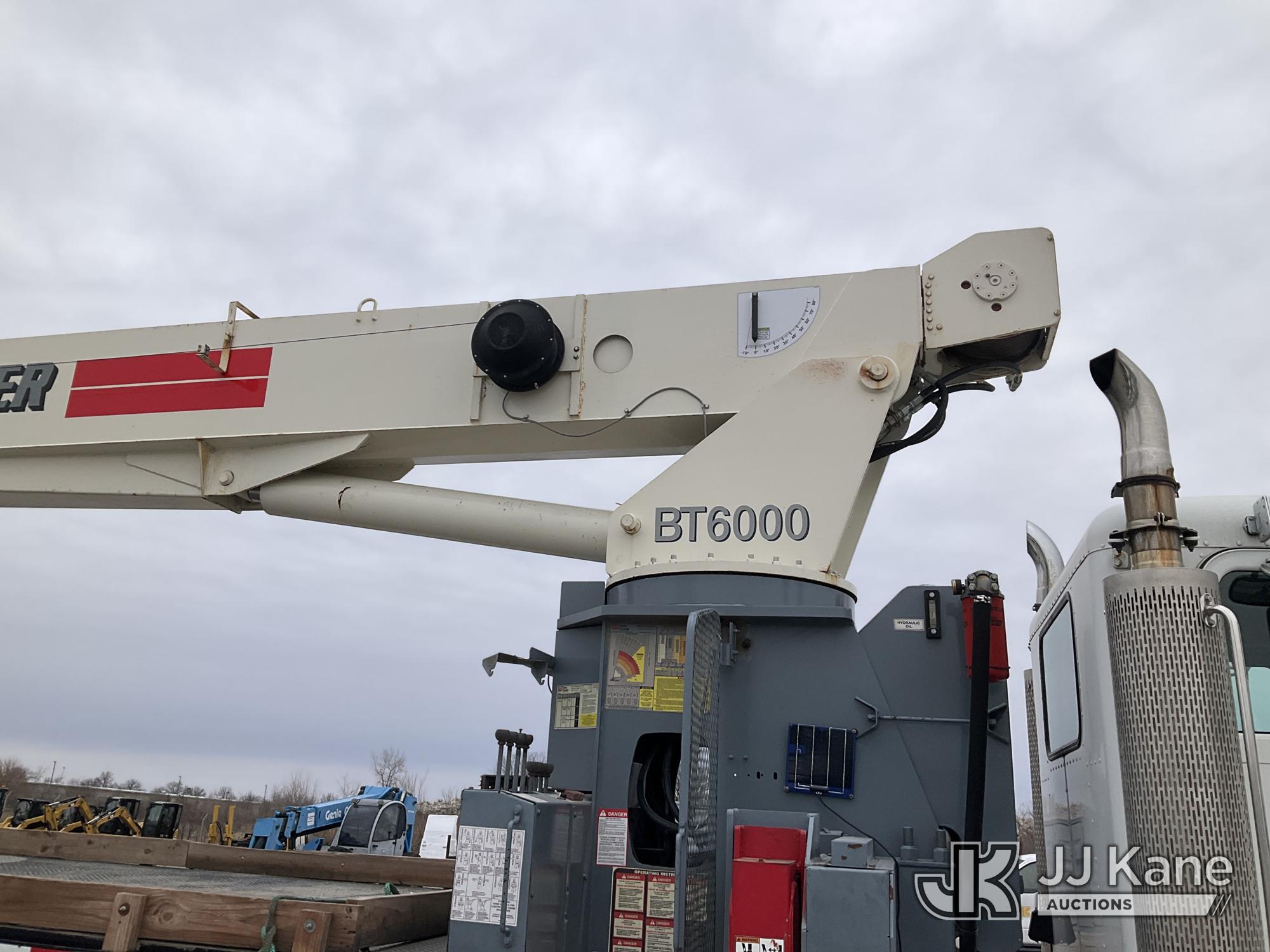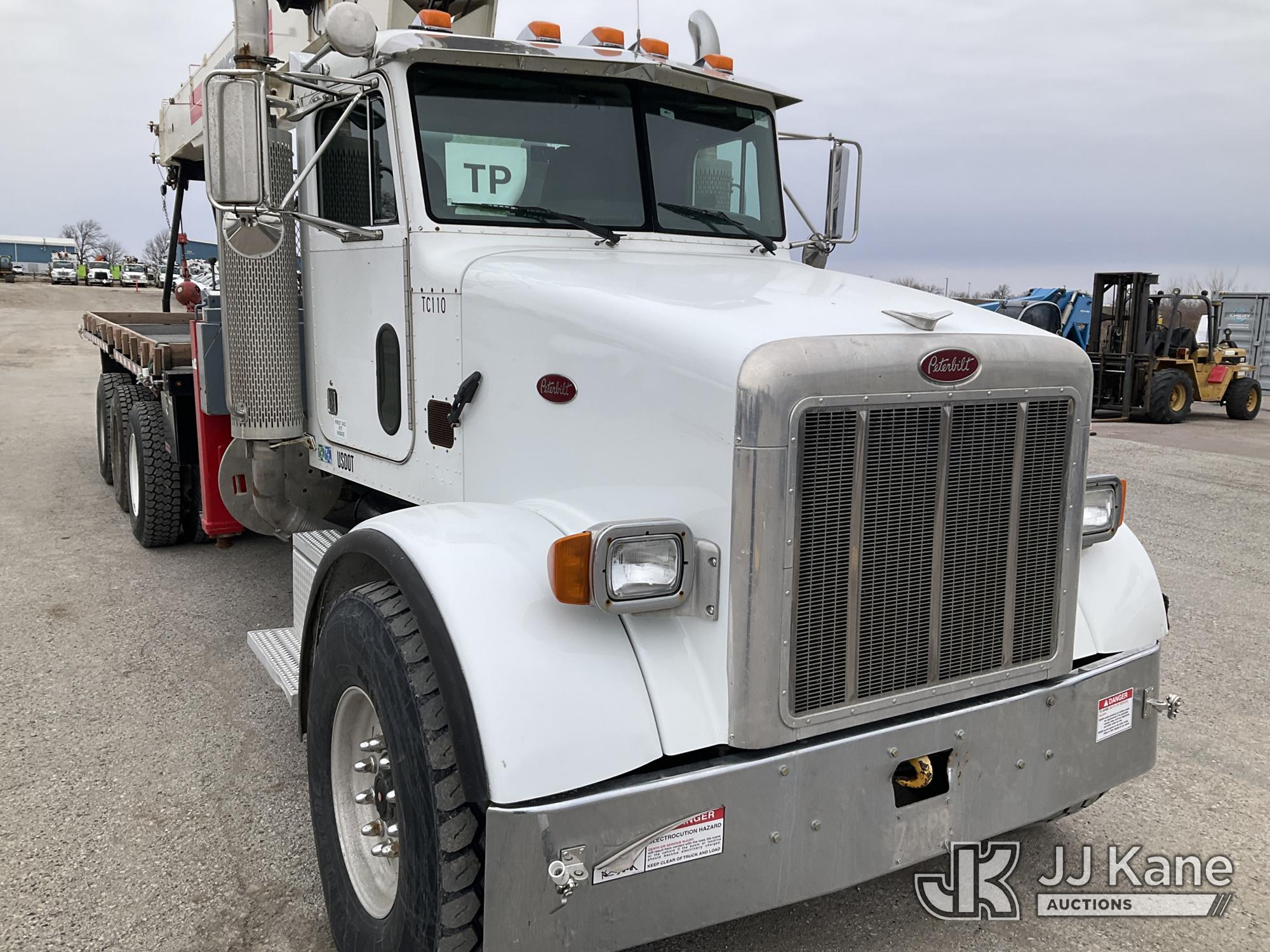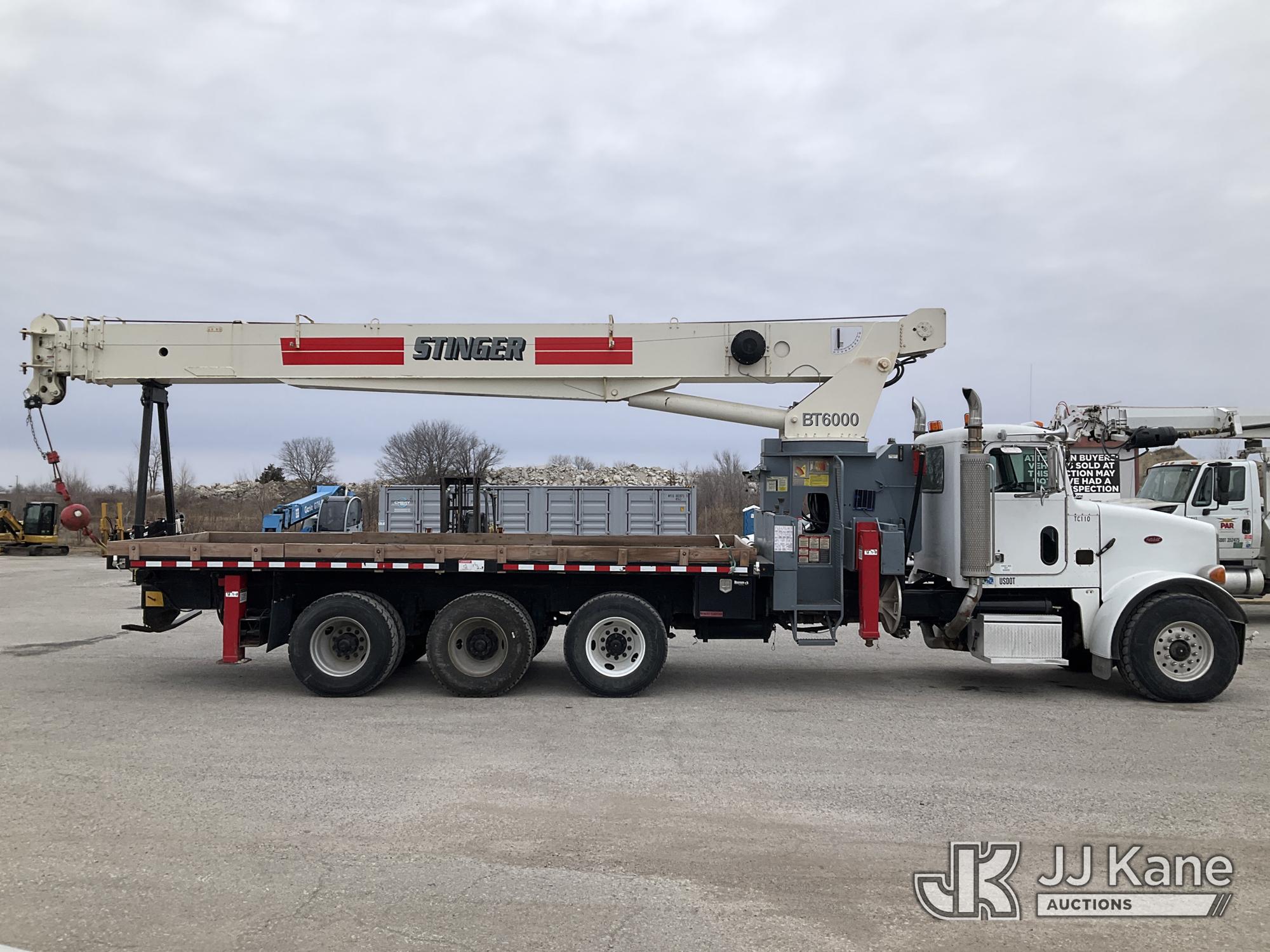 Terex BT60100, 30-Ton Hydraulic Truck Crane s/n 6010602154, with 110 ft sheave height, 4 section hyd boom, heel winch, powerline guard structure at tip of boom & dual controls, mounted behind cab on 2004 Peterbilt 357 Tri-Axle Flatbed Truck, 12.0L diesel, 6X4, 10-spd, lo & lo-lo, A/C, (Exempt from Odometer Disclosure - Reads 35,615 miles) (**Dealer Only** Runs & Moves) (Seller States this unit was removed from service due to slow boom operations when cold and a severe outrigger hydraulic leak. Requires ANSI inspection for repair/replacement requirements.) (Bidding Restricted to Licensed Vehicle Dealers Only), This is a Titled Item*