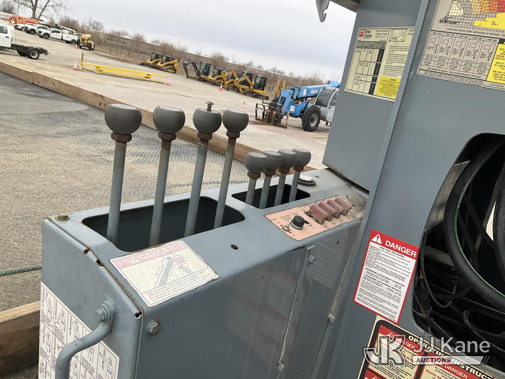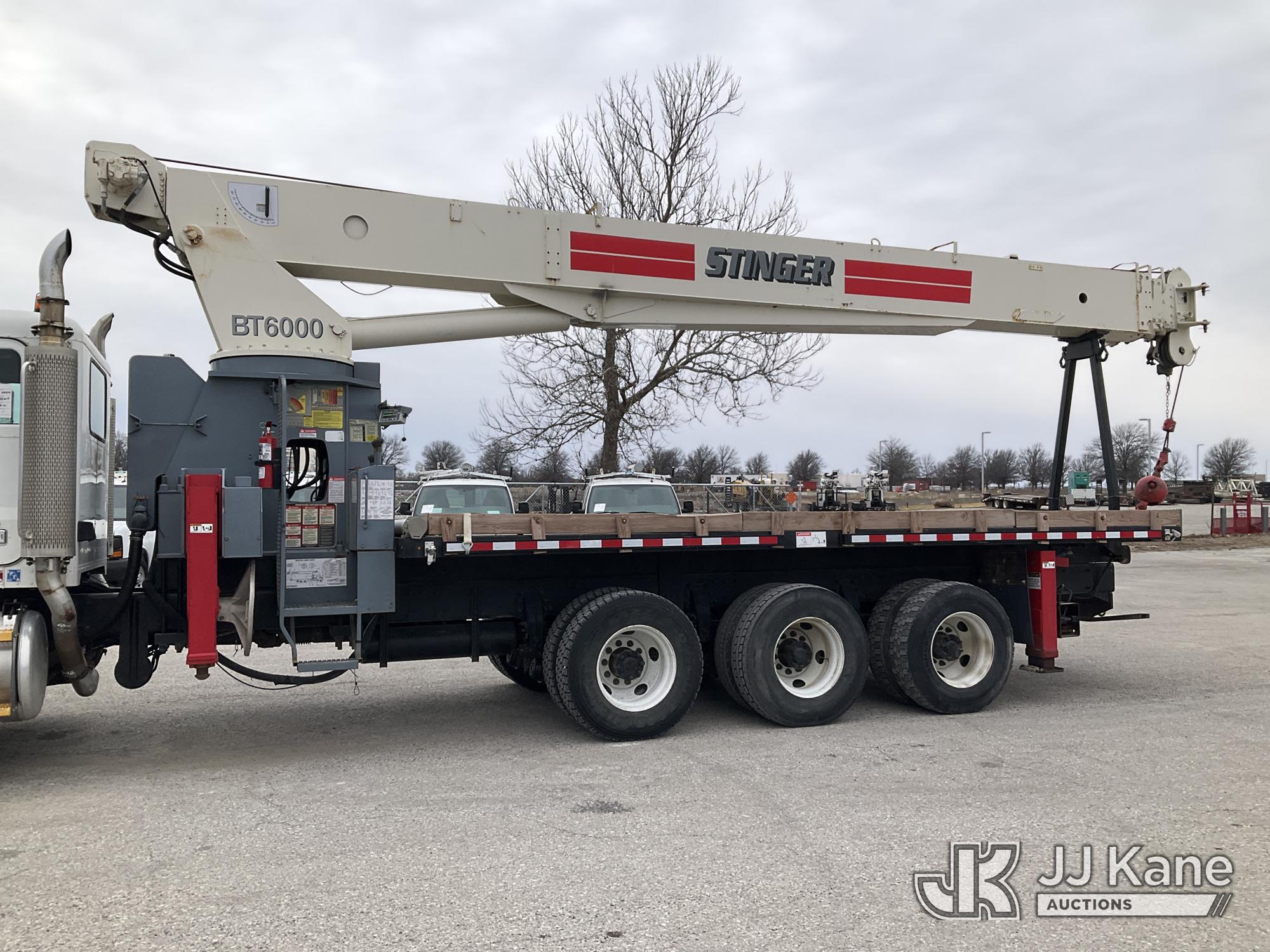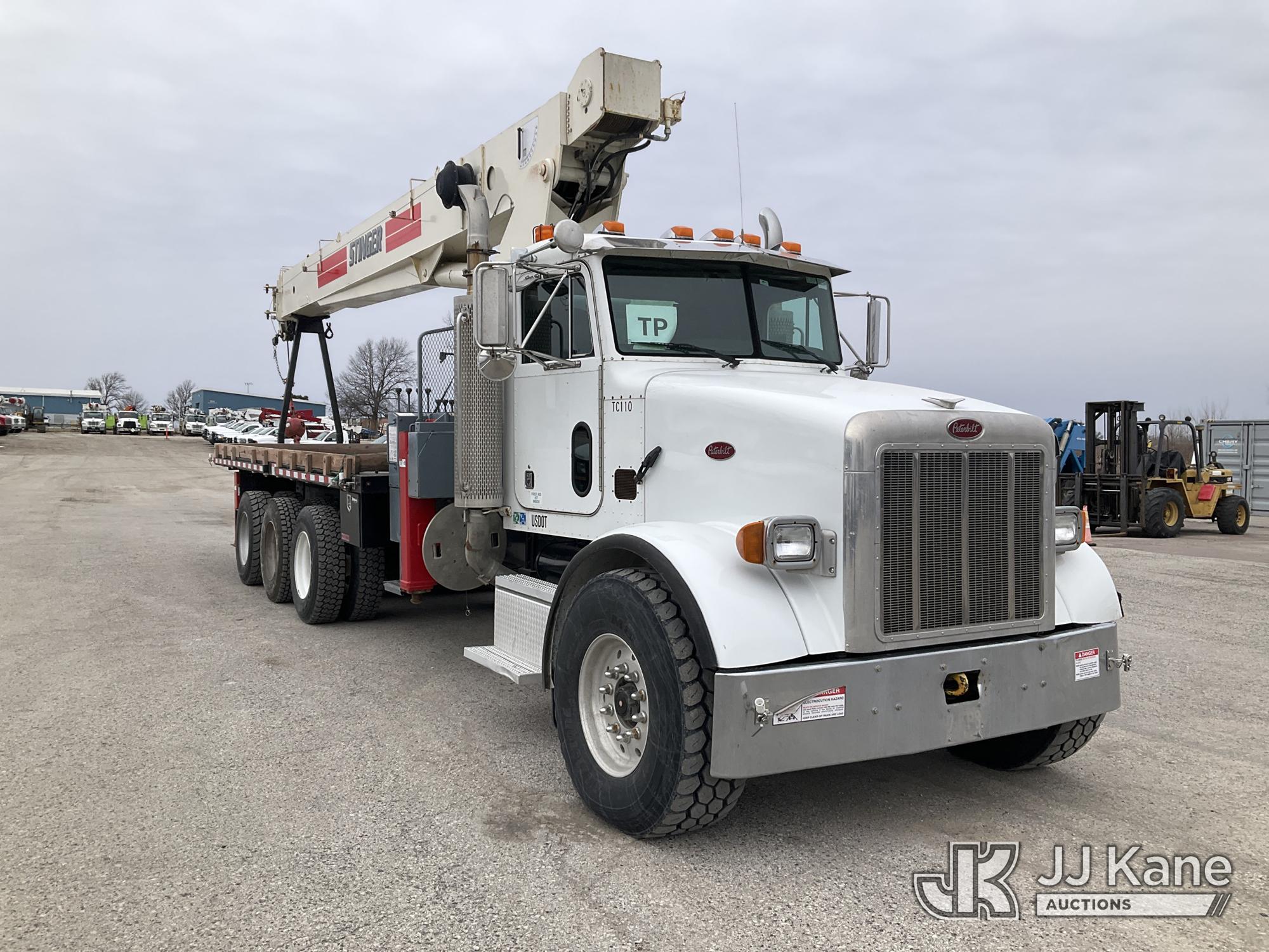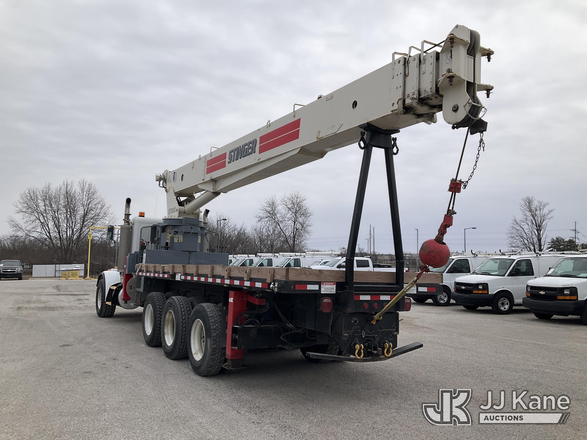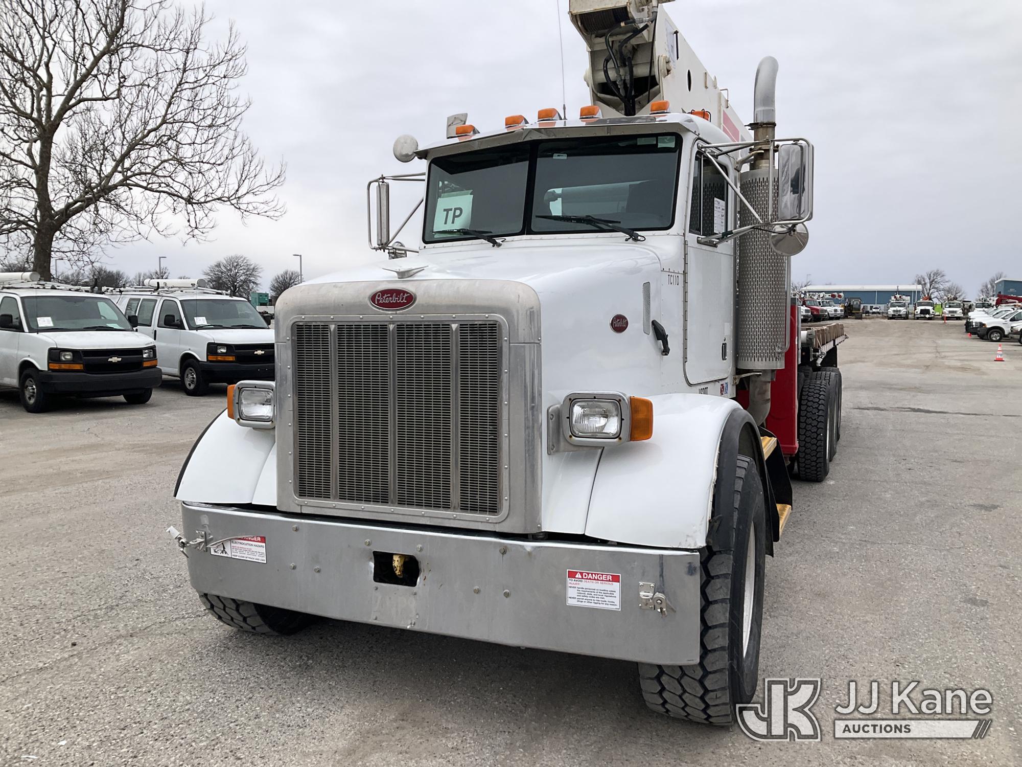 Terex BT60100, 30-Ton Hydraulic Truck Crane s/n 6010602154, with 110 ft sheave height, 4 section hyd boom, heel winch, powerline guard structure at tip of boom & dual controls, mounted behind cab on 2004 Peterbilt 357 Tri-Axle Flatbed Truck, 12.0L diesel, 6X4, 10-spd, lo & lo-lo, A/C, (Exempt from Odometer Disclosure - Reads 35,615 miles) (**Dealer Only** Runs & Moves) (Seller States this unit was removed from service due to slow boom operations when cold and a severe outrigger hydraulic leak. Requires ANSI inspection for repair/replacement requirements.) (Bidding Restricted to Licensed Vehicle Dealers Only), This is a Titled Item*