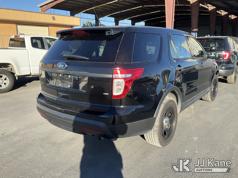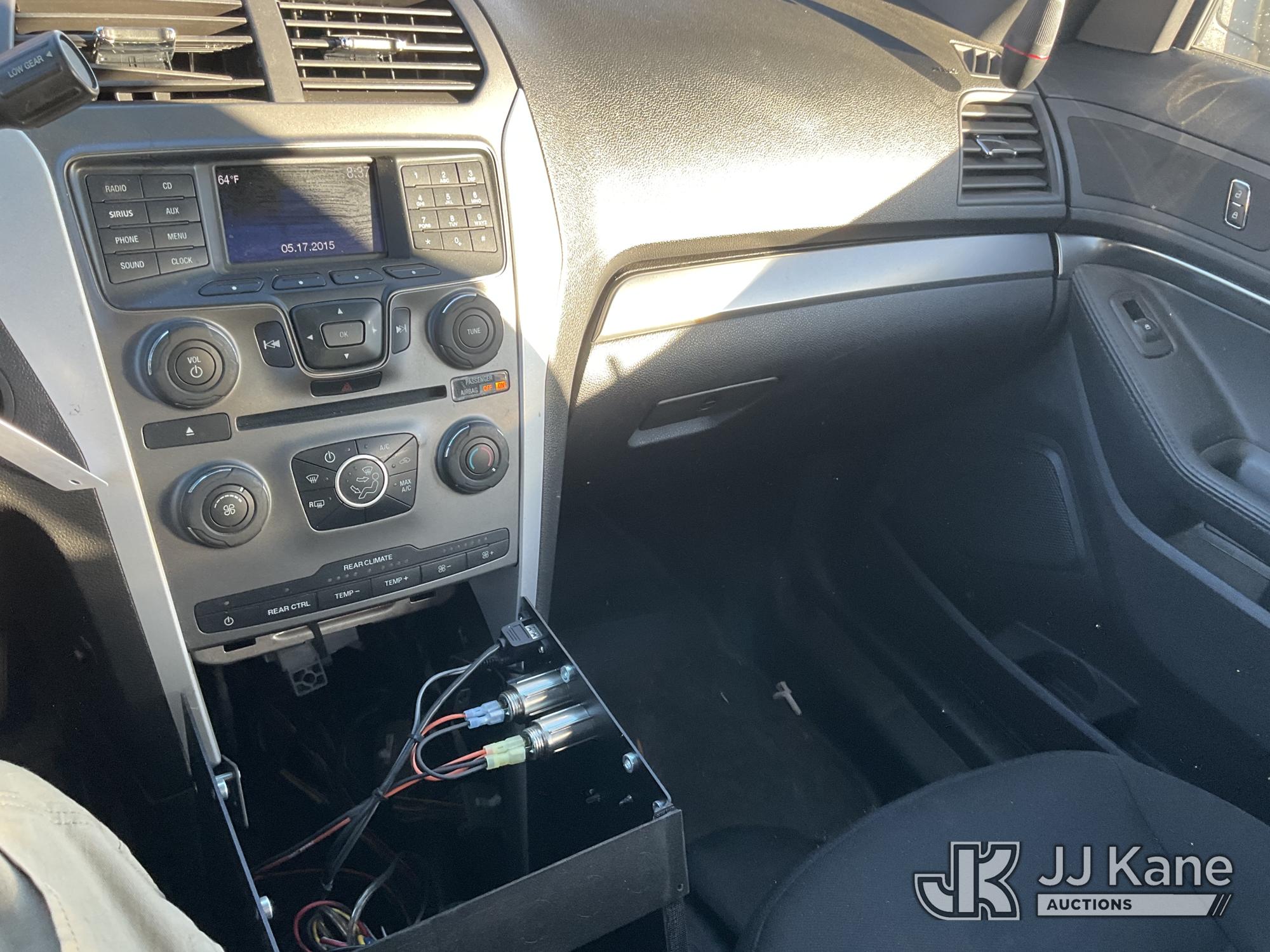 2015 Ford Explorer AWD Police Interceptor 4-Door Sport Utility Vehicle, s/n 1FM5K8AR7FGB68306, 6-cyl gas, 6-Speed Automatic, A/C, (76,062 miles) Vehicle is subject to an open NHTSA safety recall related to IN SOME OF THE AFFECTED VEHICLES, IT MAY BE POSSIBLE THAT SOME OF THE EXTERIOR A-PILLAR APPLIQUE TRIM CLIP ATTACHMENTS ARE NOT PROPERLY ENGAGED DUE TO IMPROPER ASSEMBLY OR REPAIR. IF THIS OCCURS, THE A-PILLAR APPLIQUE TRIM, WHICH BORDERS THE RIGHT AND LEFT SIDE OF THE WINDSHIELD, MAY BE LOOSE, MISSING OR BECOME DETACHED., but a remedy for this recall does not appear to be available. Dealer is not authorized to perform the recall repair. Periodically contact the manufacturer or check the VIN on the NHTSA website at www.safercar.govivin to determine whether a remedy for the recall is available. As soon as a remedy is available, arrange to have the recall remedied with a dealer from that make of car to make such repair. (Runs & Moves) (Missing Horn, Interior Stripped Of Parts) (Bidding Restricted to Licensed Vehicle Dealers Only), This is a Titled Item*