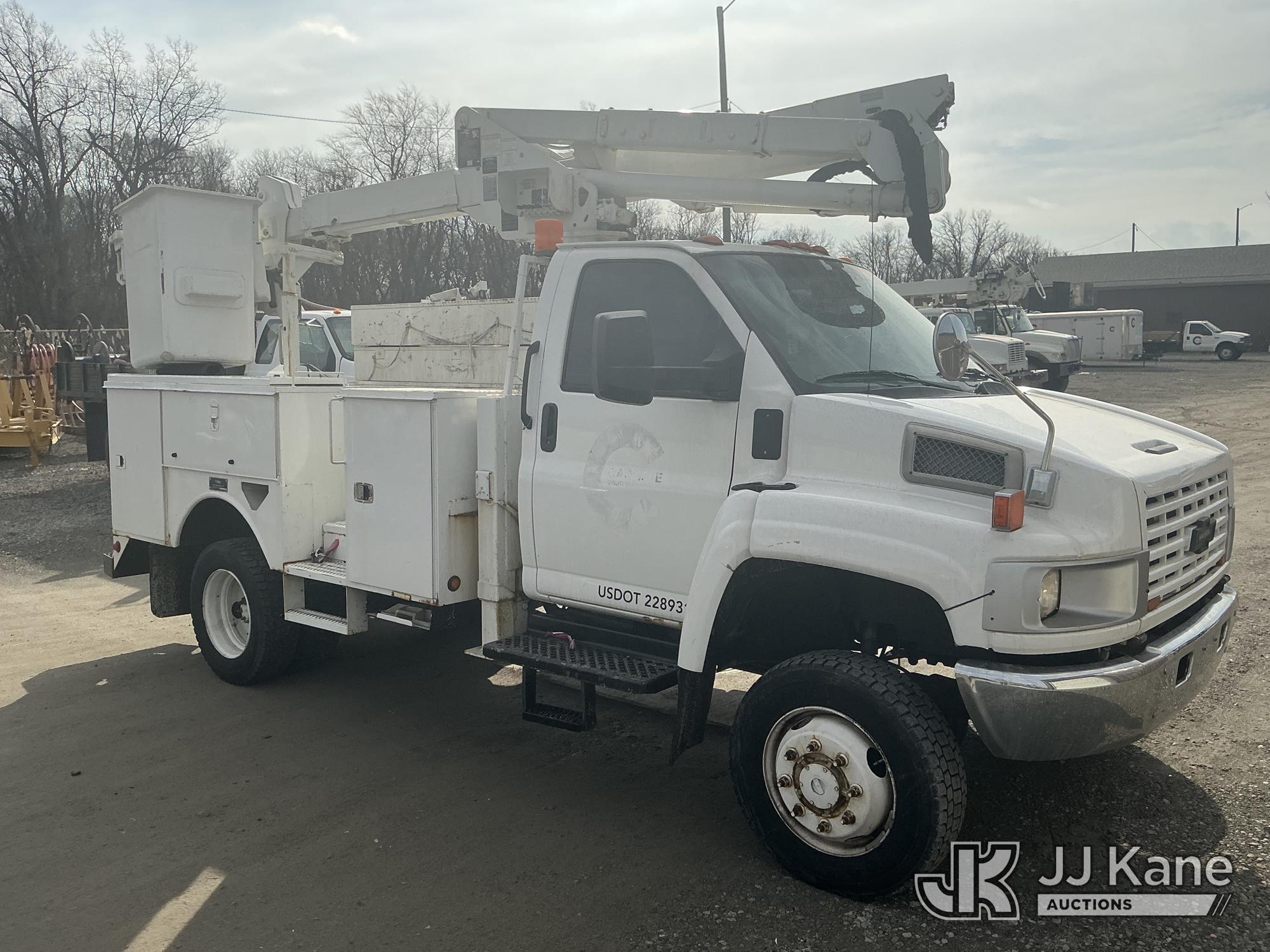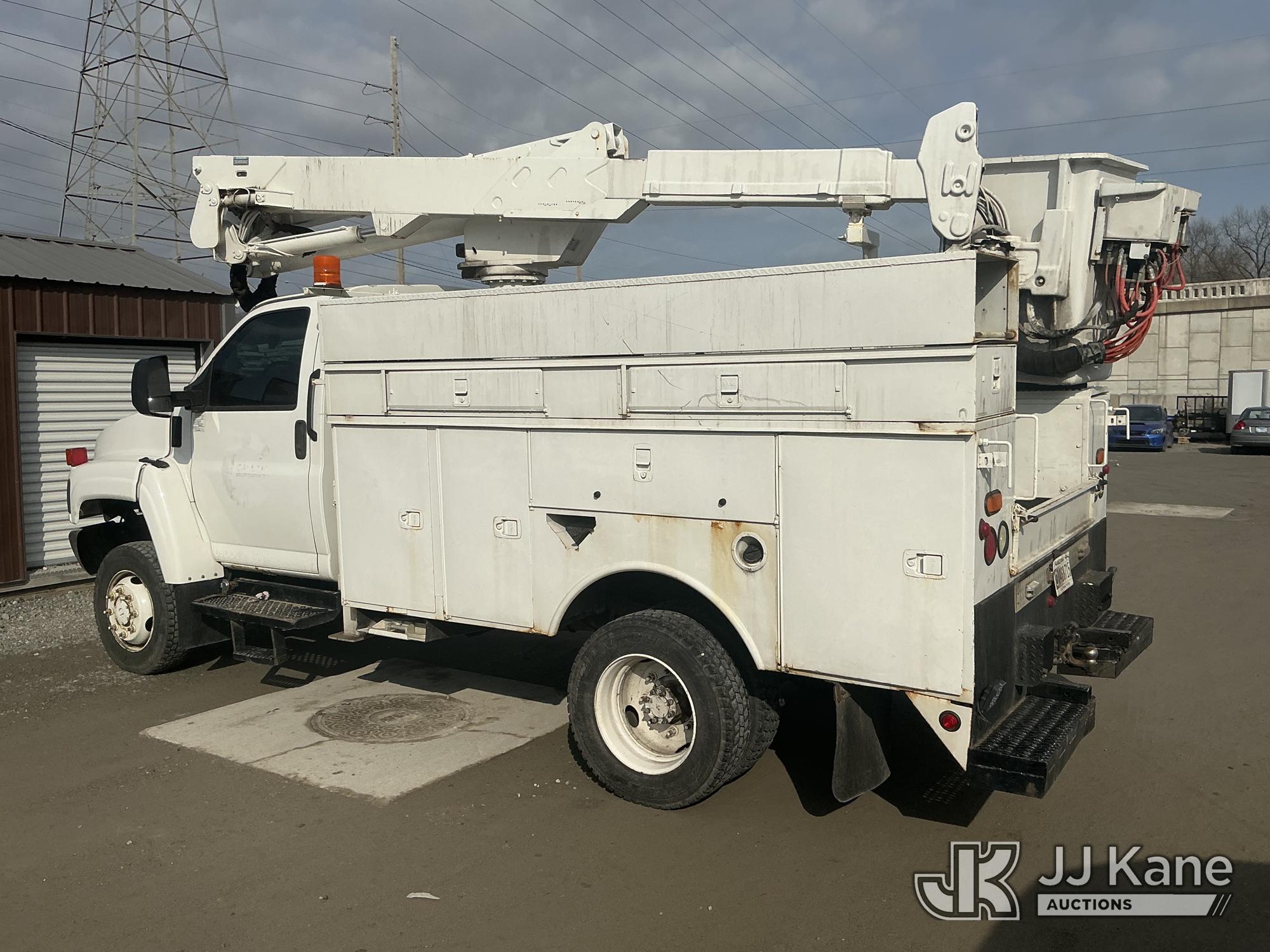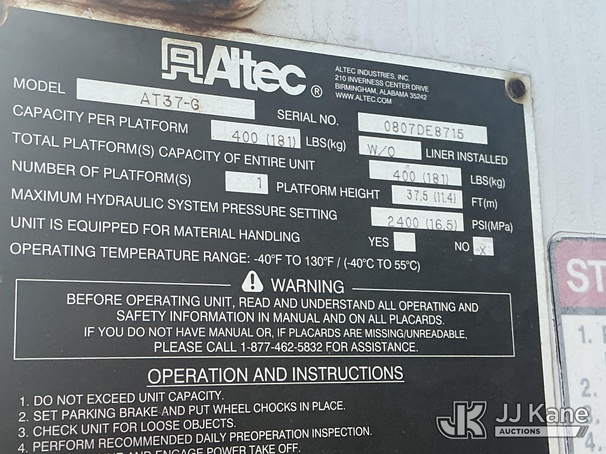 Altec AT37G, 42 ft, Articulating & Telescopic Bucket Truck s/n 0807DE8715, with single-man bucket, mounted behind cab on 2007 Chevrolet C5500 4x4 Service Truck, 6.6L V8 OHV 32V turbo diesel, Auto, (182,140 miles) (Starts, Runs, Moves & Upper Operates) (Reads 27,112 hours) This is a Titled Item*