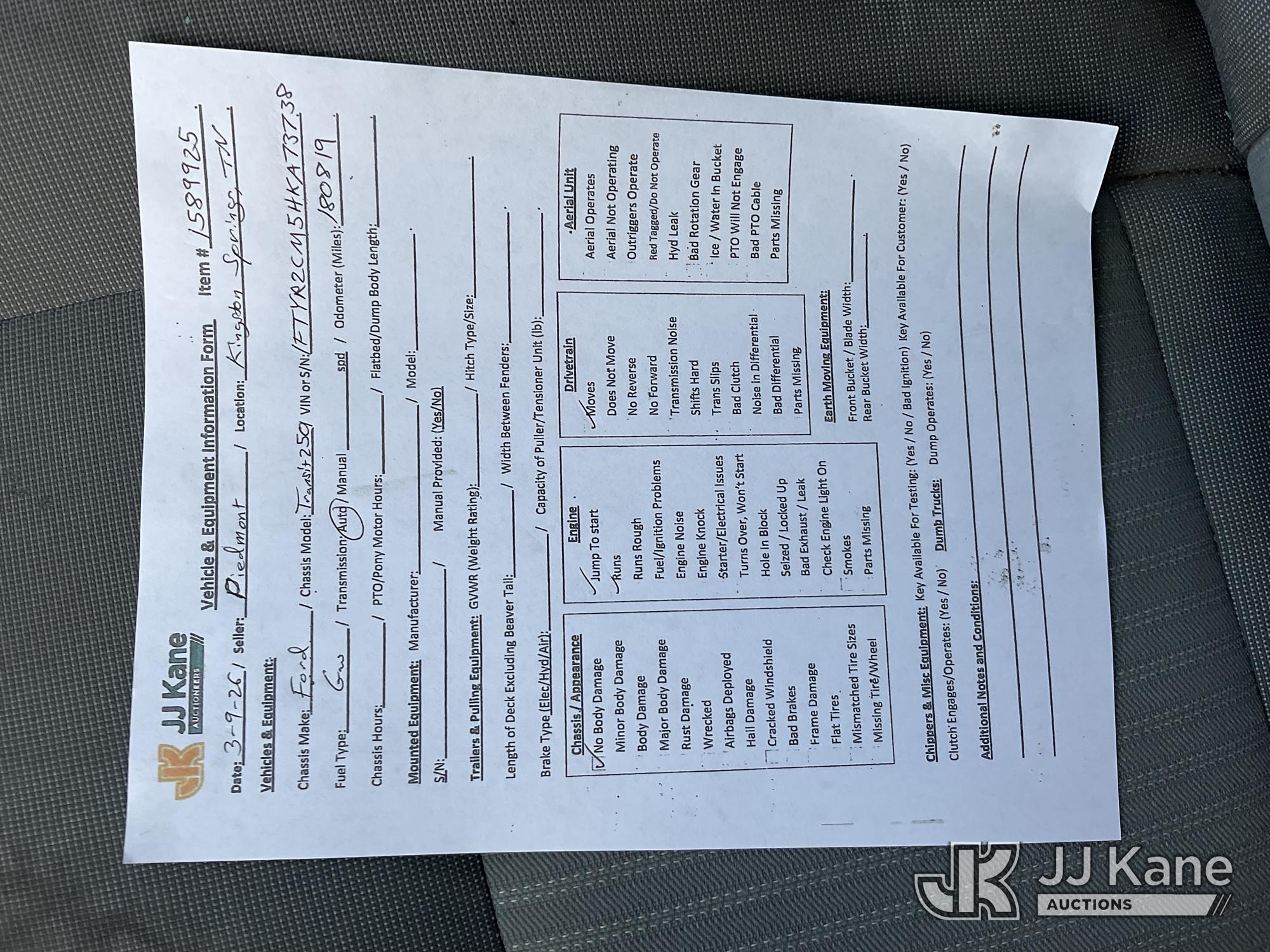 2017 Ford Transit 250 Van Med. Roof w/Sliding Pass. 148-in. WB Cargo Van, 3.7L V6 DOHC 24V Gas, RWD, Auto, (180,819 miles) (Runs & Moves) (Jump To Start) This is a Titled Item*