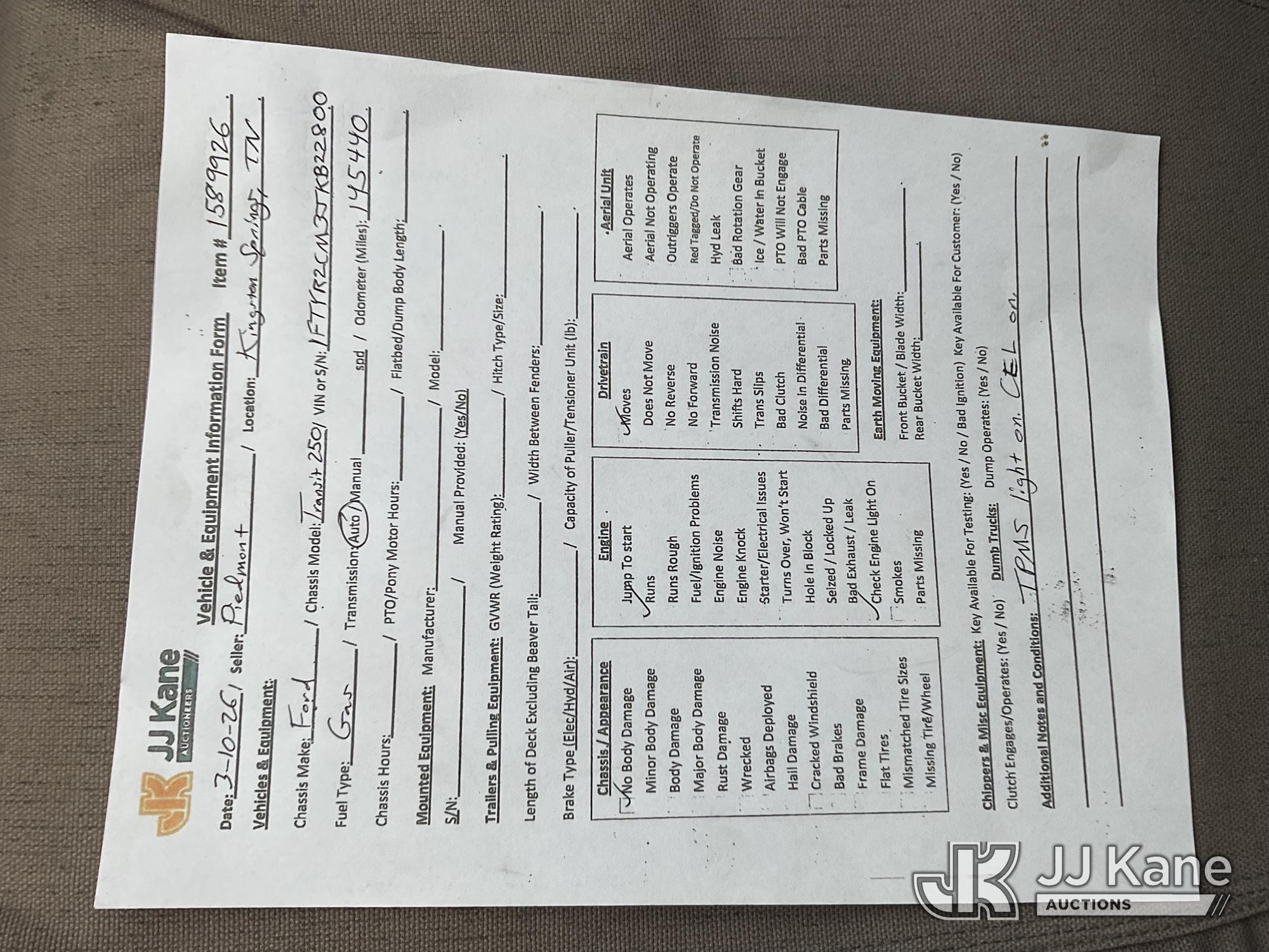 2018 Ford Transit 250 Van Med. Roof w/Sliding Pass. 148-in Van, 3.7L V6 DOHC 24V RWD, CNG Only, 6-Speed Automatic, A/C, (145,440 miles) (Runs & Moves) (Check Engine Light On) This is a Titled Item*