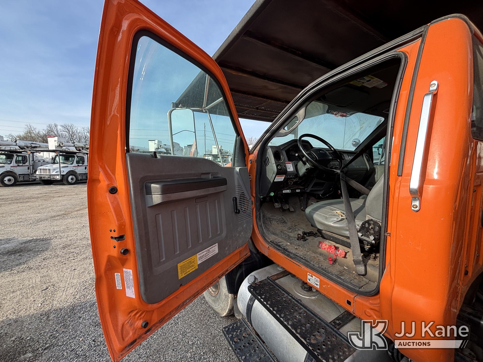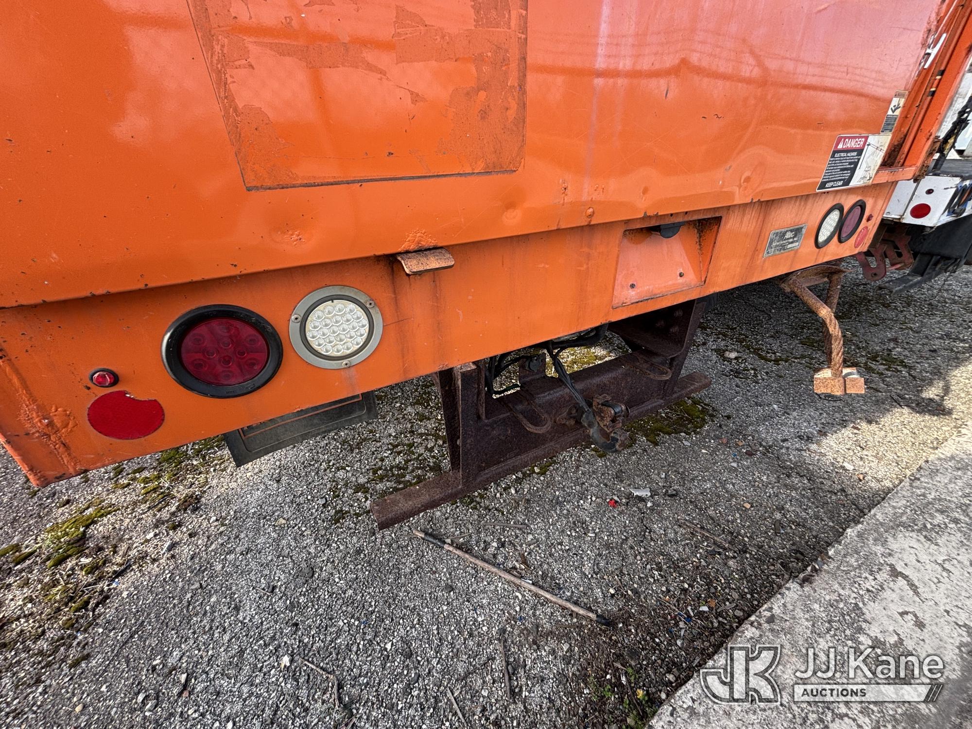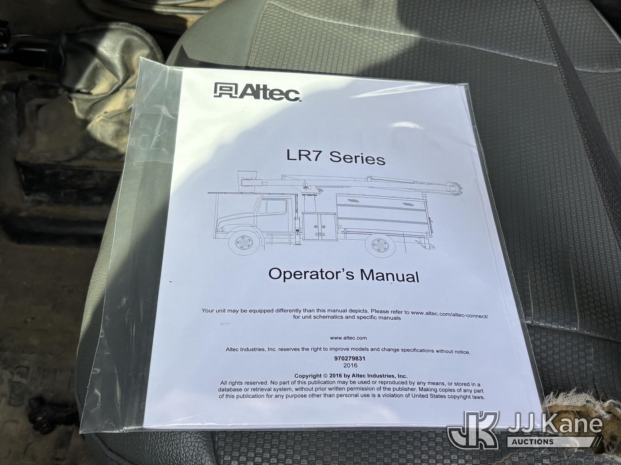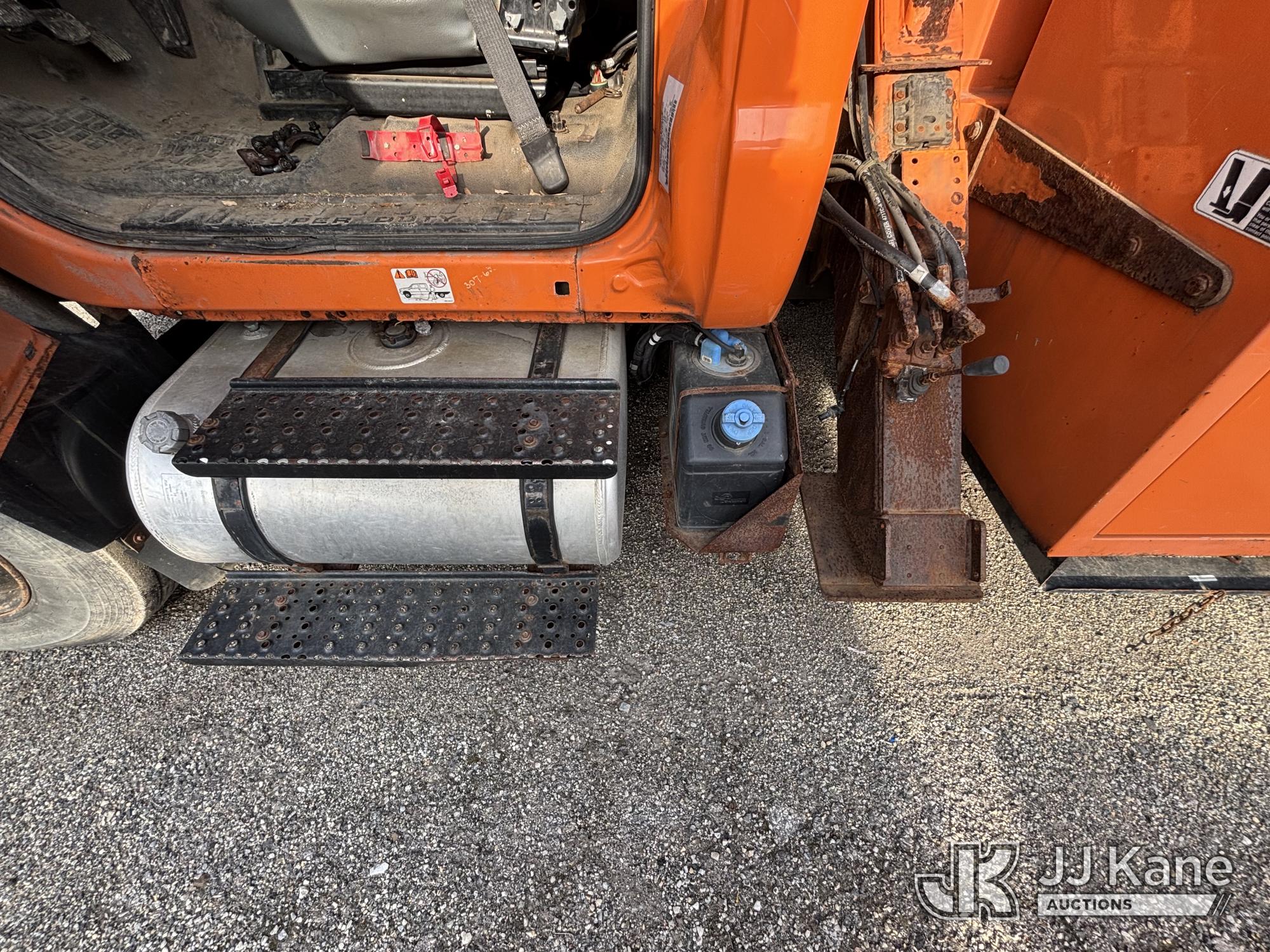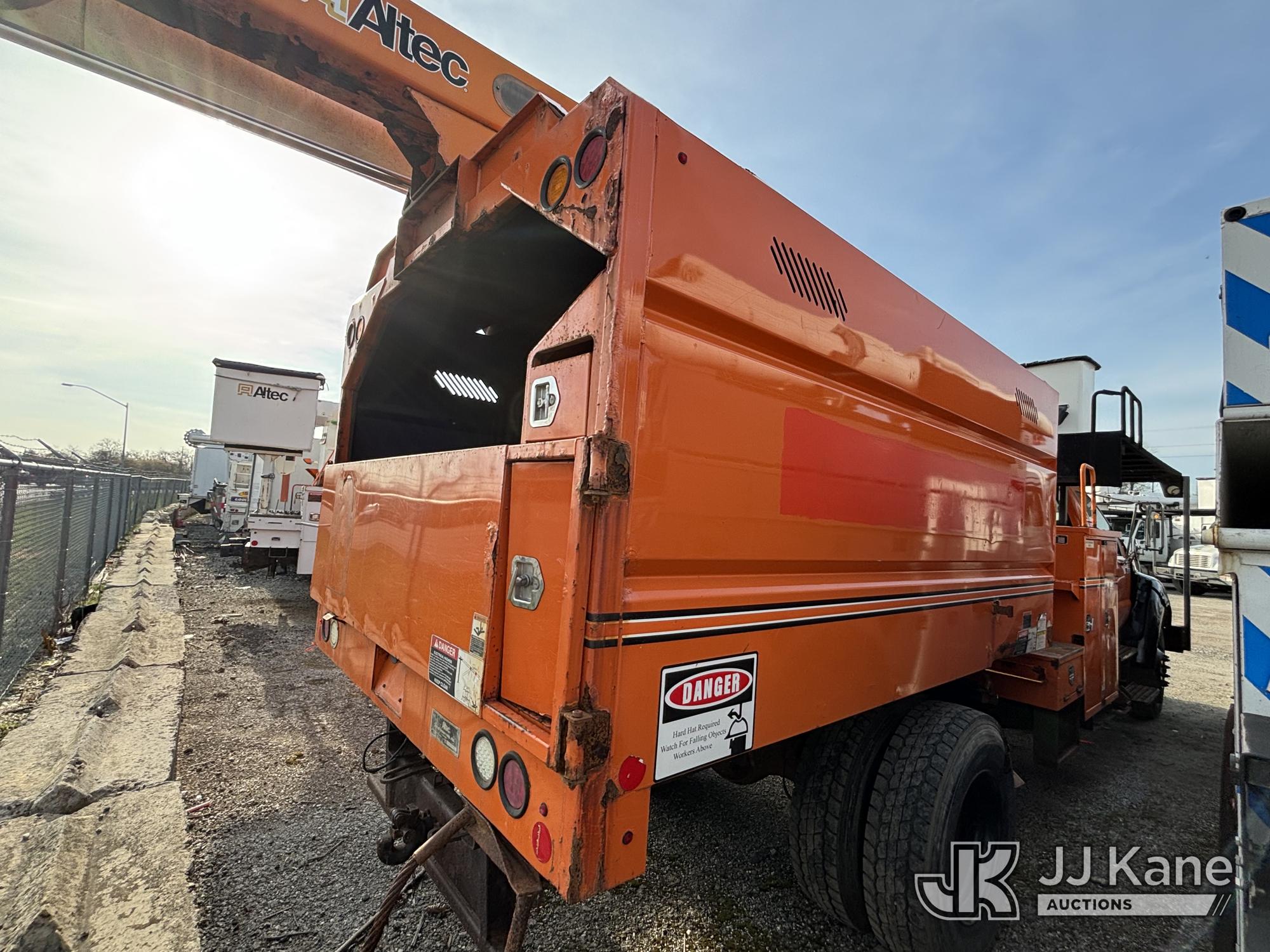 Altec LR760-E70, 75 ft, Over-Center Elevator Bucket Truck s/n 0313FF0904, with single-man bucket & 4 outriggers, mounted behind cab on 2013 Ford F750 Chipper Dump Truck, 6.7L diesel, 6-spd, with 11 ft body, (63,424 miles) (The manufacturer has notified JJ Kane that this equipment is subject to an open recall. CSN 672 LRV/LR7 Leveling Yoke Inspection The equipment should not be operated until this is addressed. Buyer is responsible for reviewing the recall notice and contacting the manufacturer to schedule the recommended corrective actions. Associated costs may be covered by the manufacturer in some cases. Bad Engine, Not Running, Upper Not Operating Condition Unknown, Out Rigger Controls Unbolted & Rusted, Drive Shaft Out, Emergency Brake Cable INOP, Must Tow Buyer Must Load) This is a Titled Item*