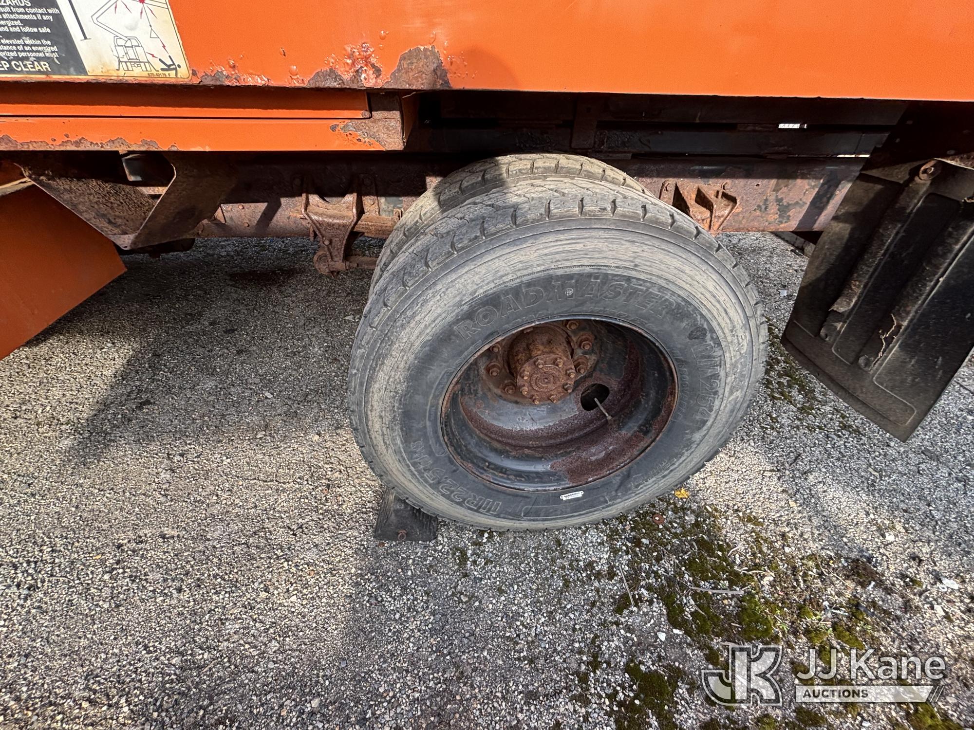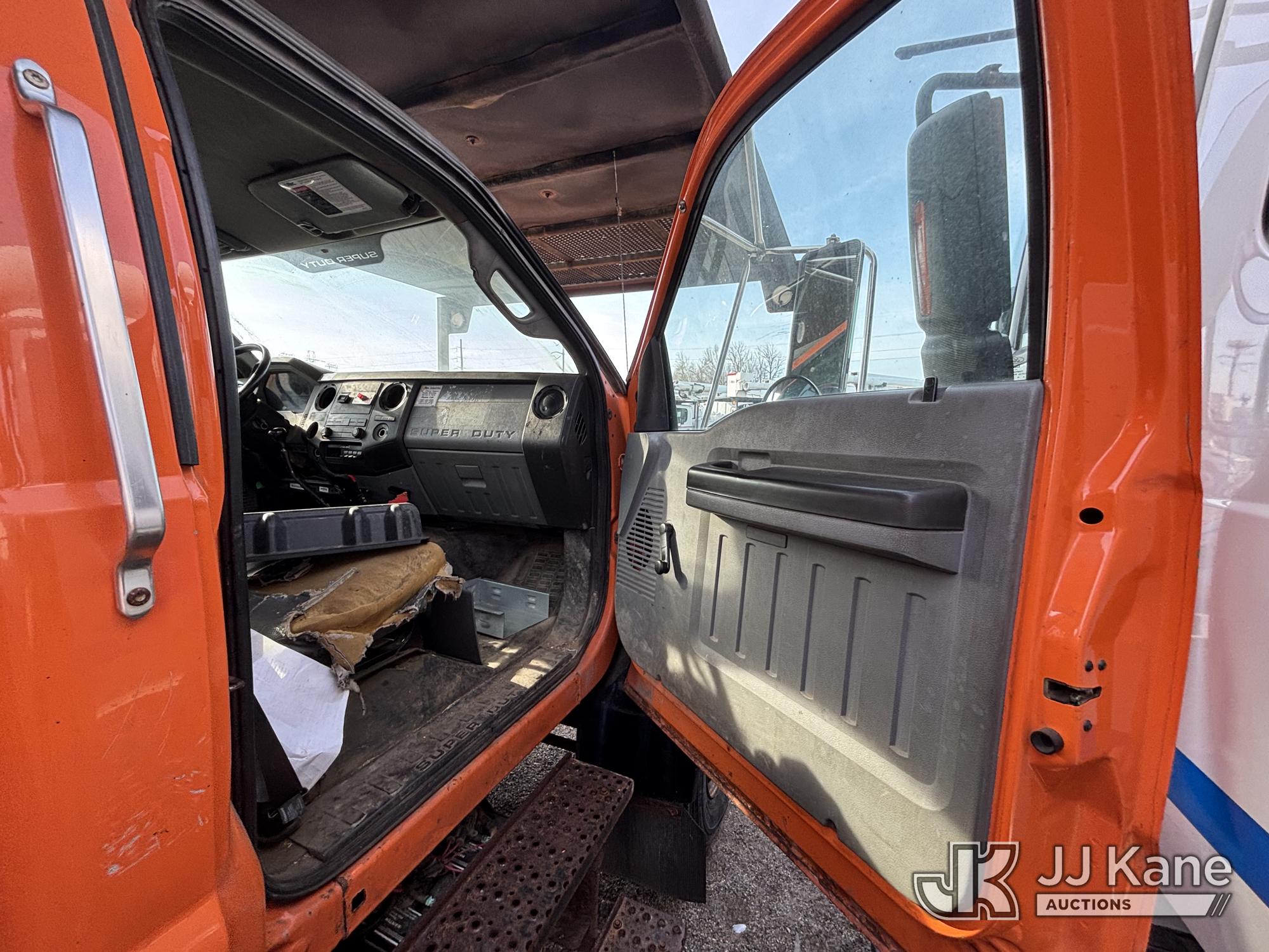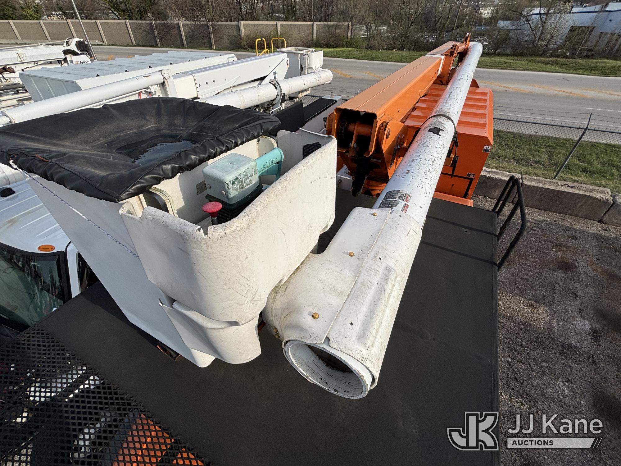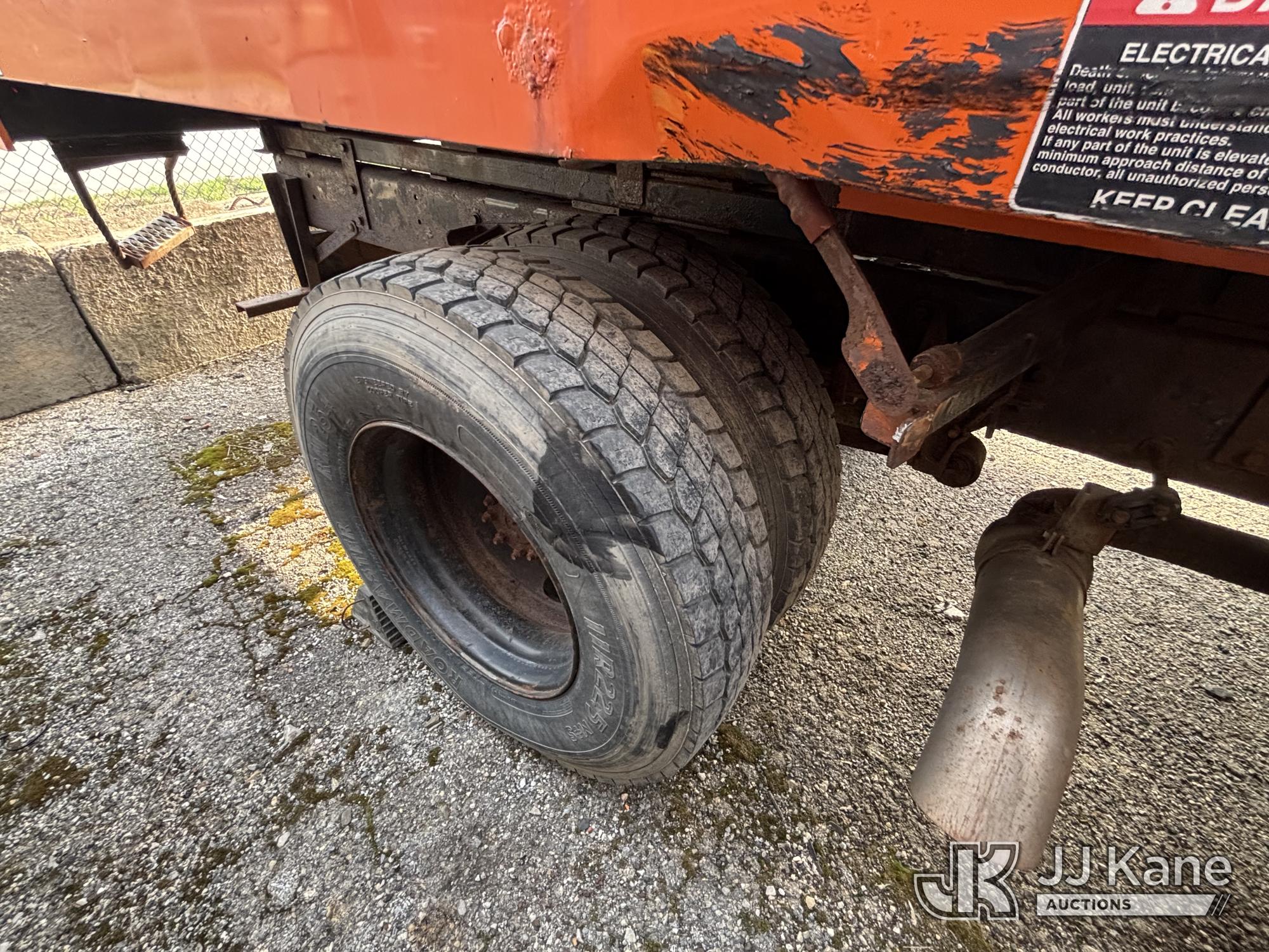 Altec LR760-E70, 75 ft, Over-Center Elevator Bucket Truck s/n 0313FF0904, with single-man bucket & 4 outriggers, mounted behind cab on 2013 Ford F750 Chipper Dump Truck, 6.7L diesel, 6-spd, with 11 ft body, (63,424 miles) (The manufacturer has notified JJ Kane that this equipment is subject to an open recall. CSN 672 LRV/LR7 Leveling Yoke Inspection The equipment should not be operated until this is addressed. Buyer is responsible for reviewing the recall notice and contacting the manufacturer to schedule the recommended corrective actions. Associated costs may be covered by the manufacturer in some cases. Bad Engine, Not Running, Upper Not Operating Condition Unknown, Out Rigger Controls Unbolted & Rusted, Drive Shaft Out, Emergency Brake Cable INOP, Must Tow Buyer Must Load) This is a Titled Item*