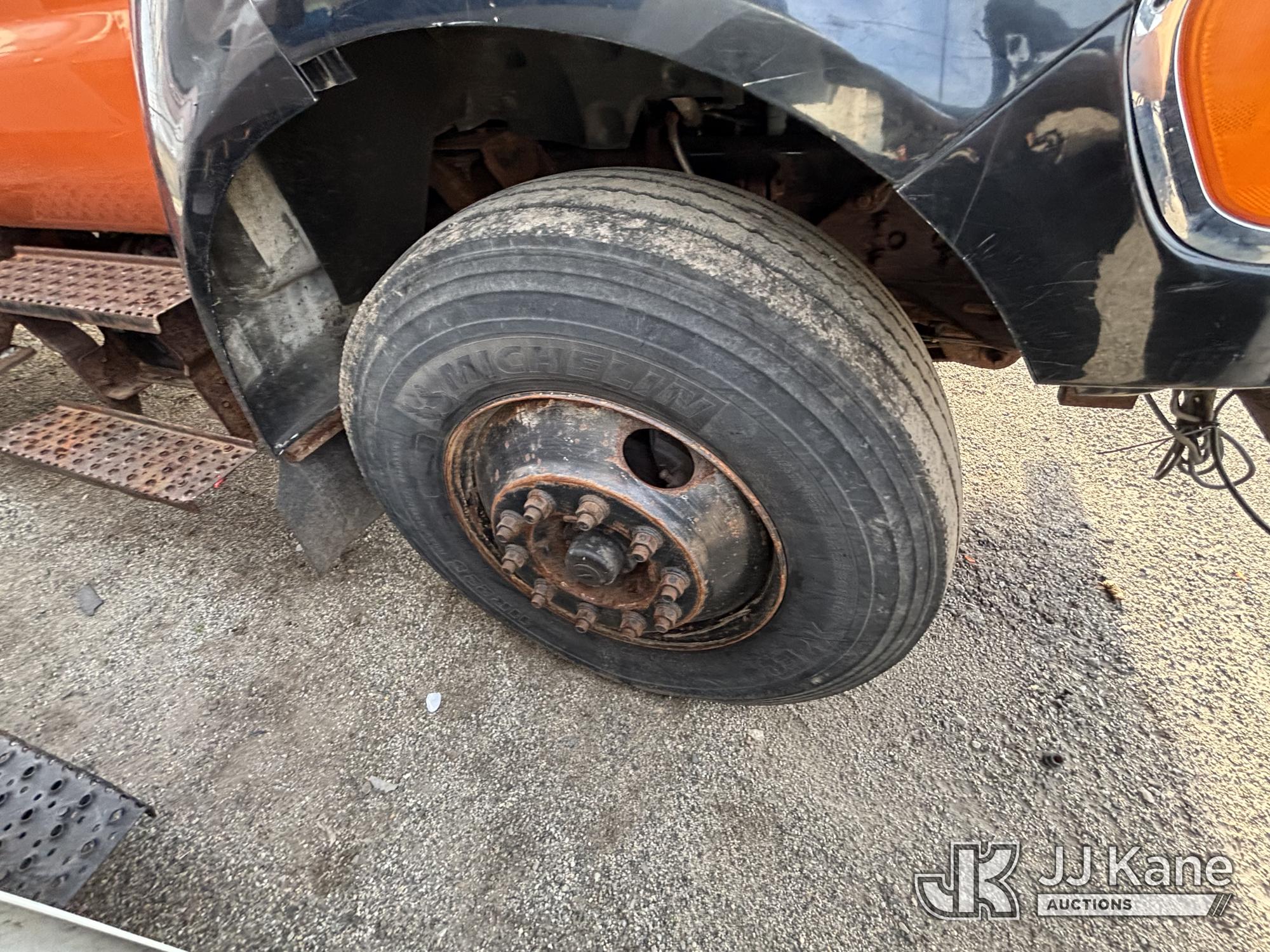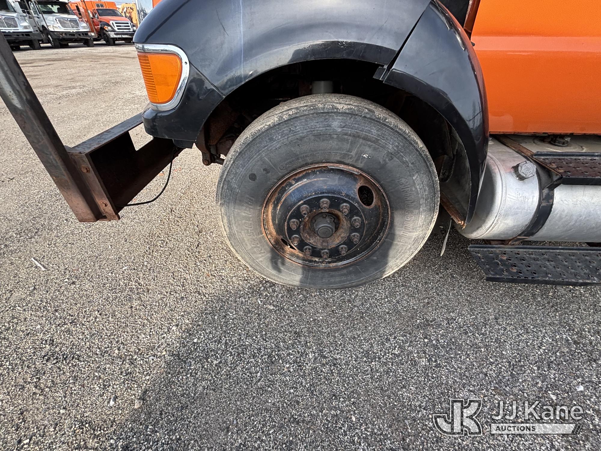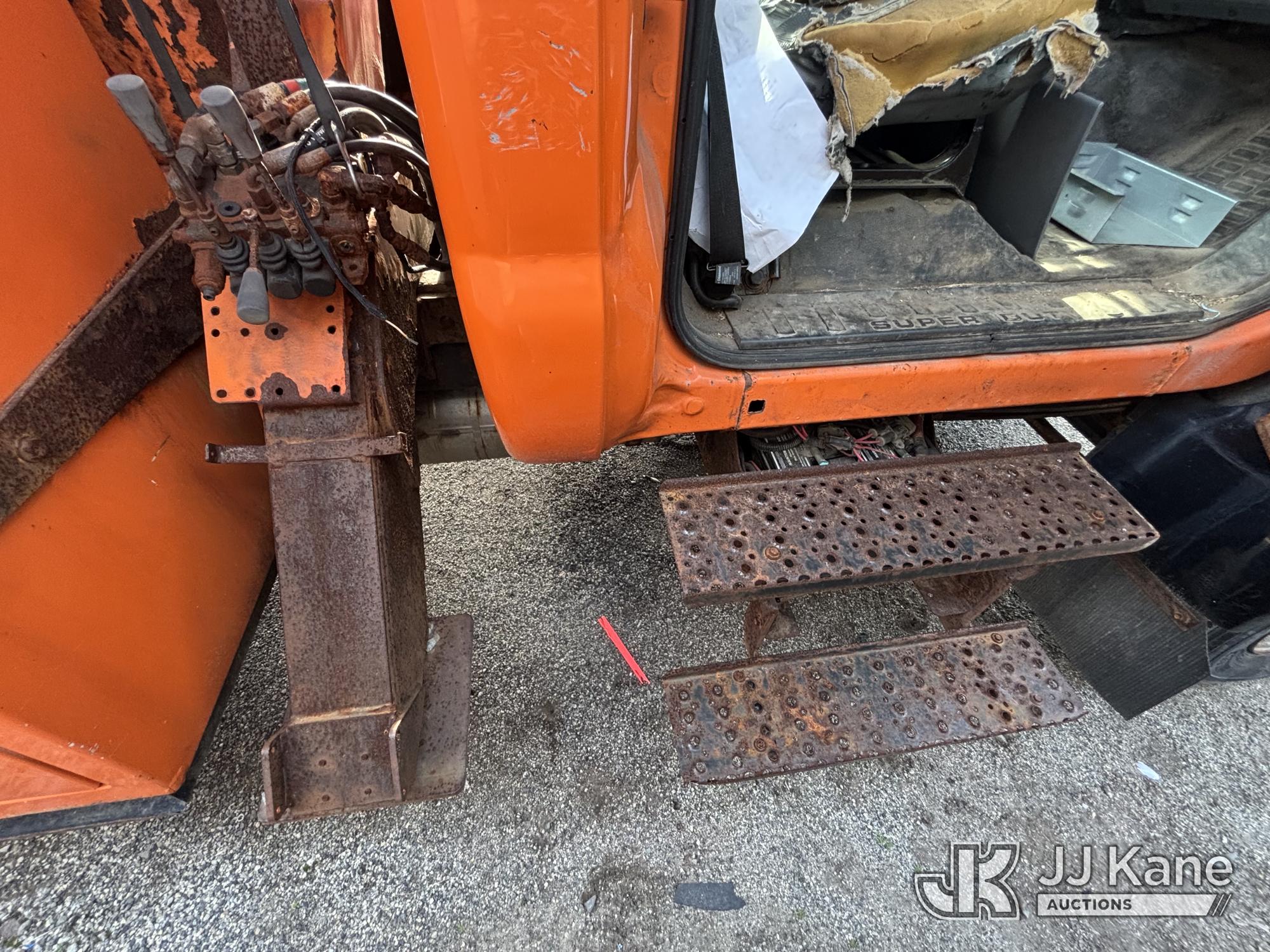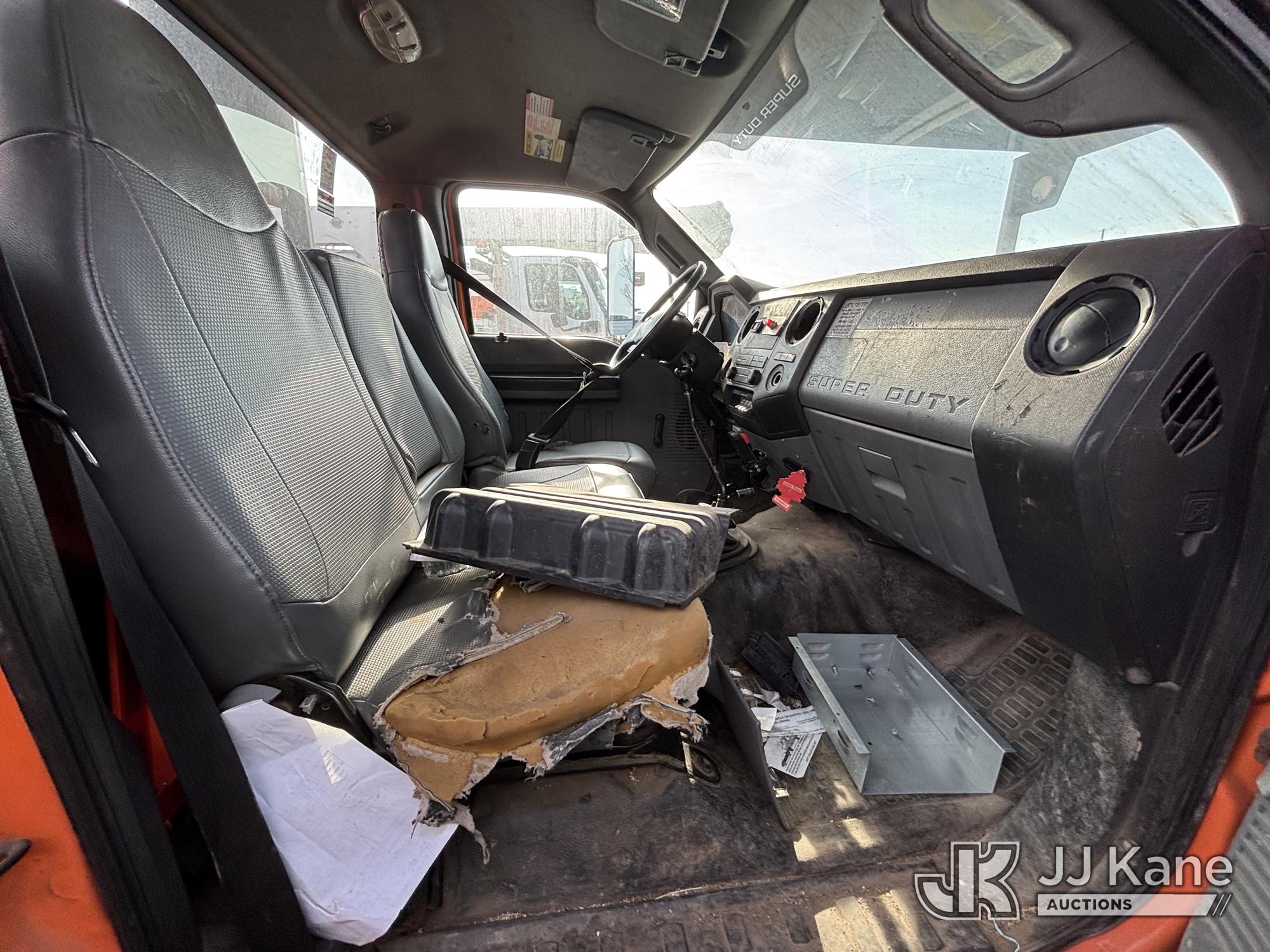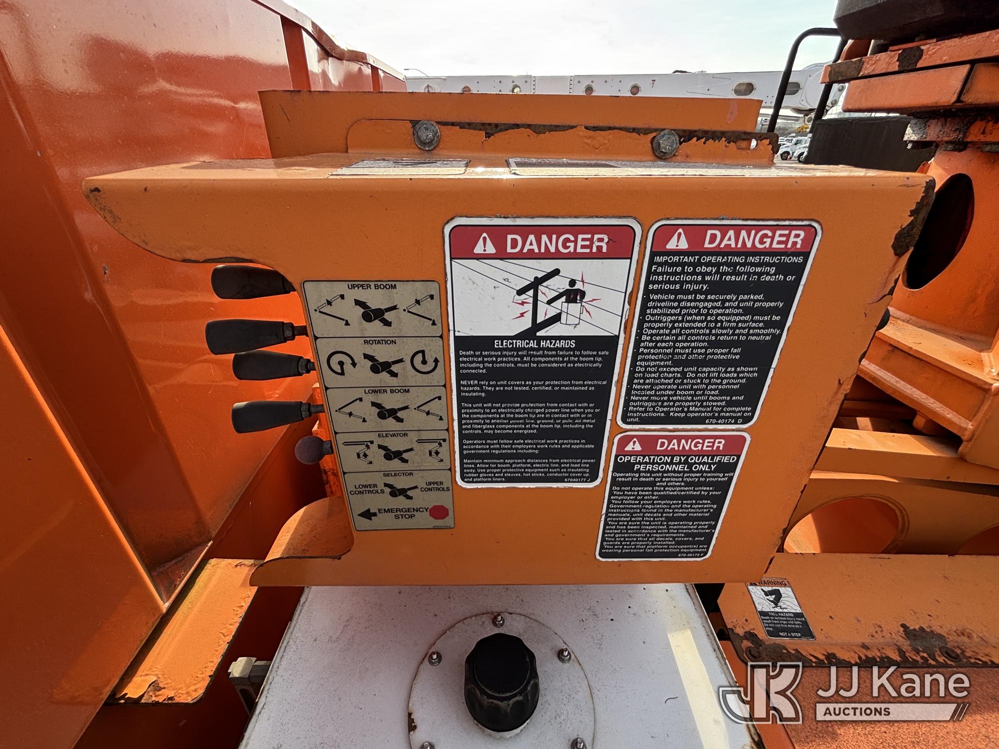 Altec LR760-E70, 75 ft, Over-Center Elevator Bucket Truck s/n 0313FF0904, with single-man bucket & 4 outriggers, mounted behind cab on 2013 Ford F750 Chipper Dump Truck, 6.7L diesel, 6-spd, with 11 ft body, (63,424 miles) (The manufacturer has notified JJ Kane that this equipment is subject to an open recall. CSN 672 LRV/LR7 Leveling Yoke Inspection The equipment should not be operated until this is addressed. Buyer is responsible for reviewing the recall notice and contacting the manufacturer to schedule the recommended corrective actions. Associated costs may be covered by the manufacturer in some cases. Bad Engine, Not Running, Upper Not Operating Condition Unknown, Out Rigger Controls Unbolted & Rusted, Drive Shaft Out, Emergency Brake Cable INOP, Must Tow Buyer Must Load) This is a Titled Item*