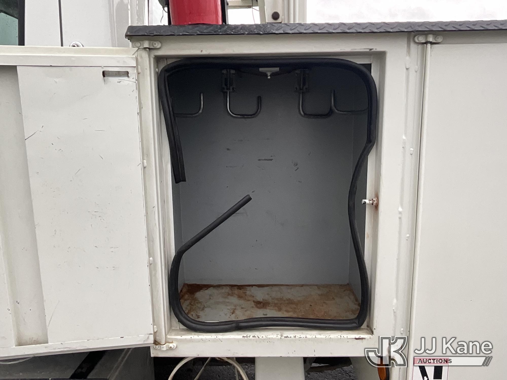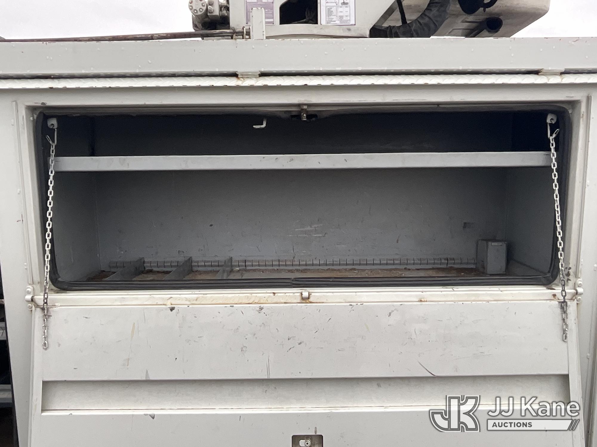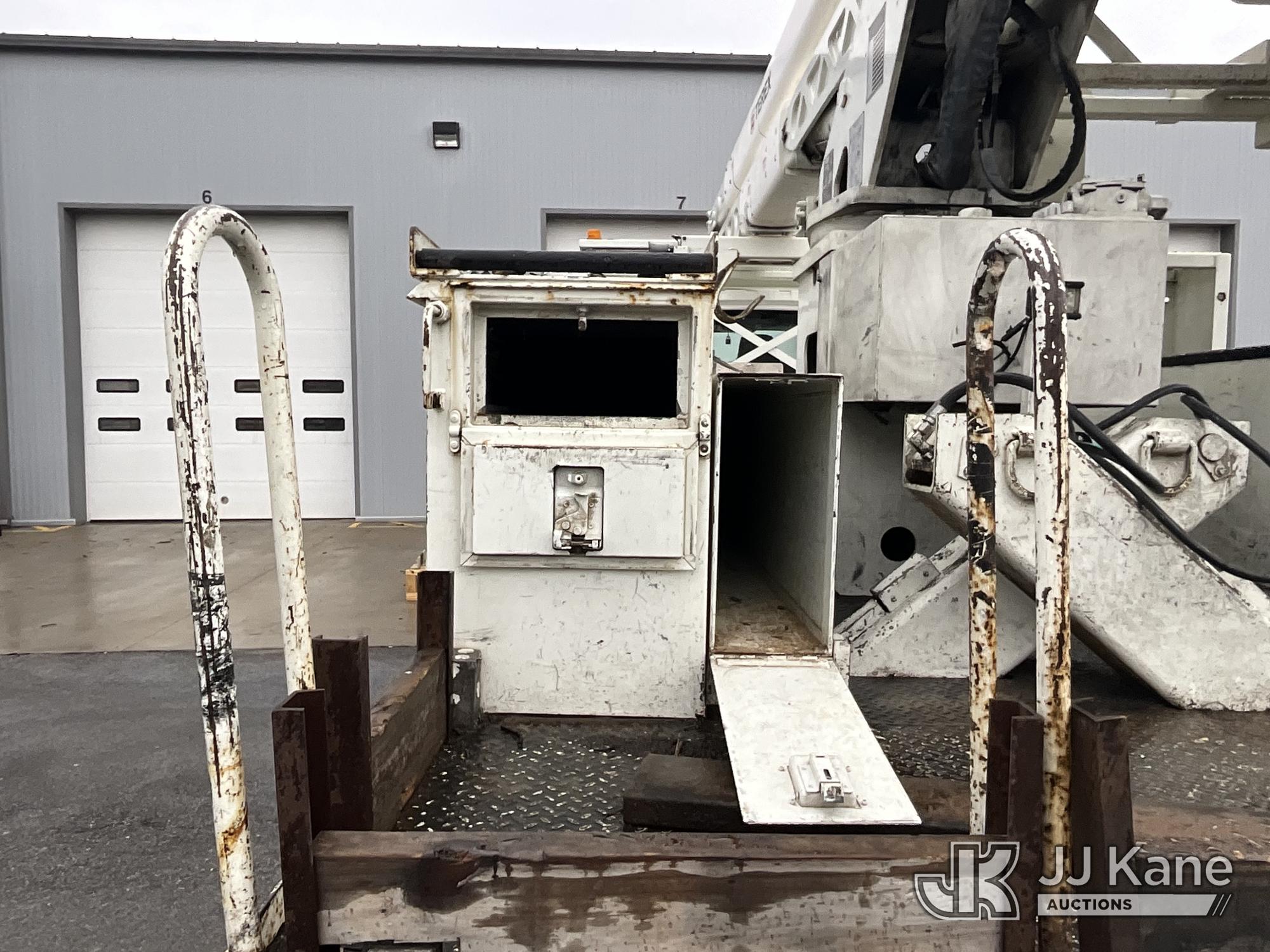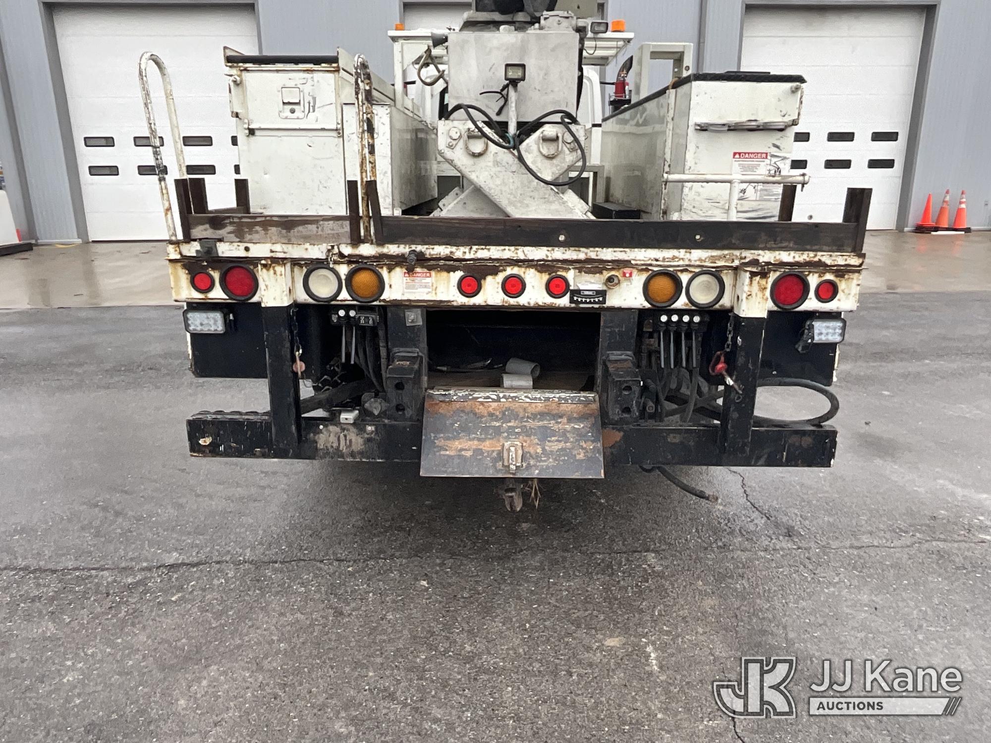 HiRanger HRX-52, 57 ft, Material Handling Bucket Truck s/n 2100742437, with two-man bucket & 4 hyd outriggers, rear mounted on 2011 International 7400 Utility Truck, 9.3L L6 DIESEL 4X2, Auto, A/C, (259,749 miles) (Runs, Moves, & Upper Operates, PTO Operates Intermittently, Missing Battery Box Cover, Bent Curbside Step) This is a Titled Item*