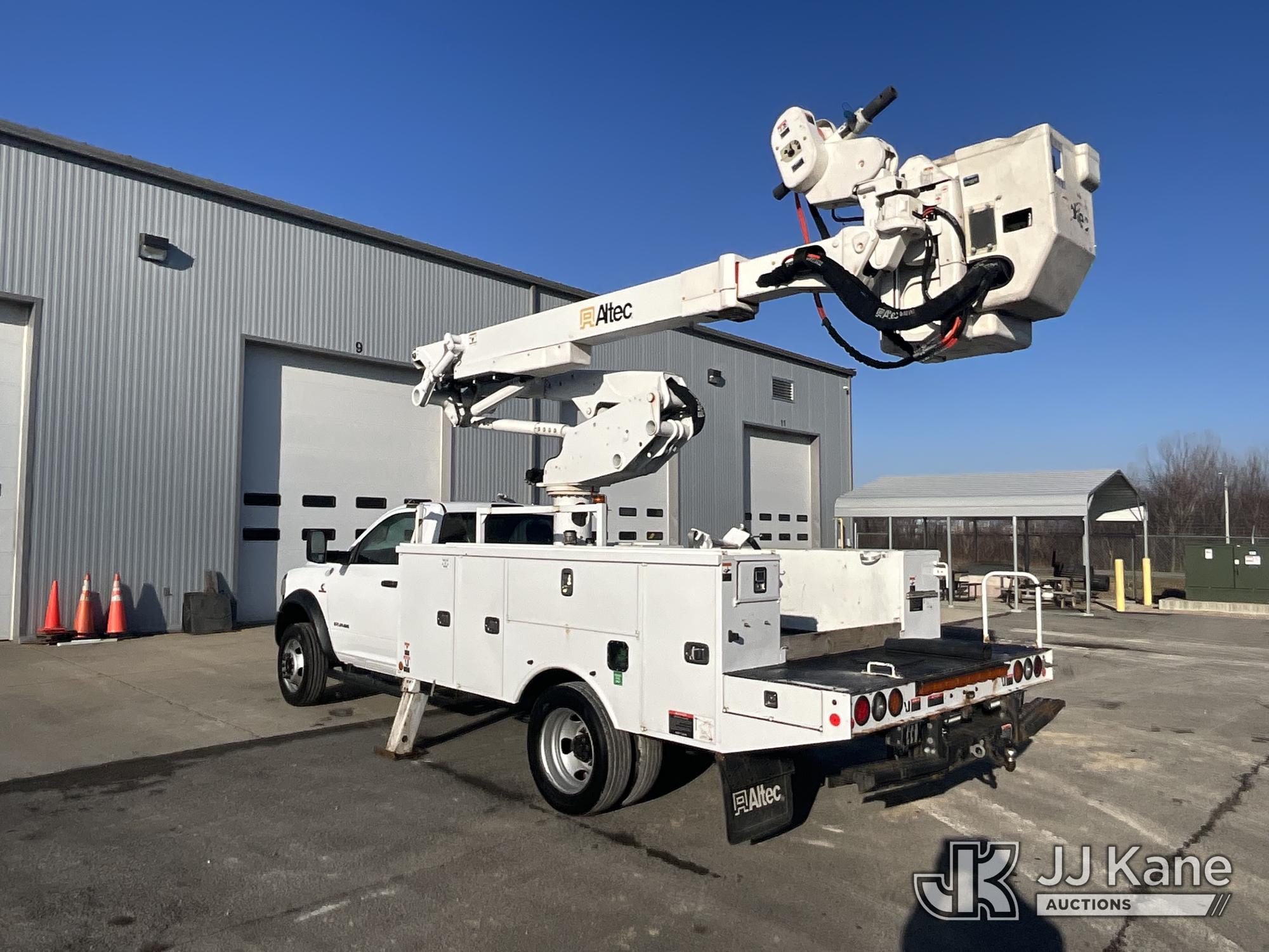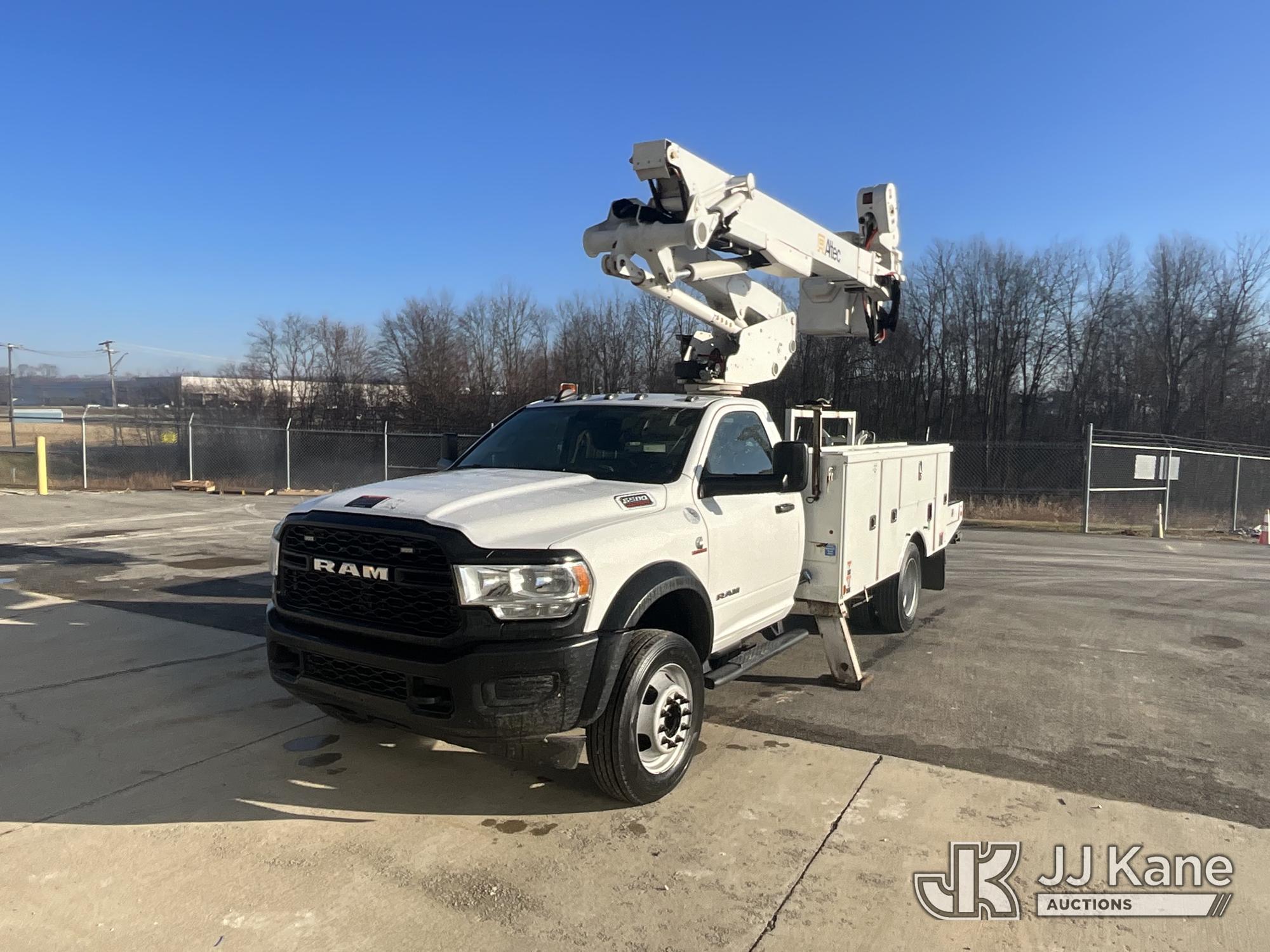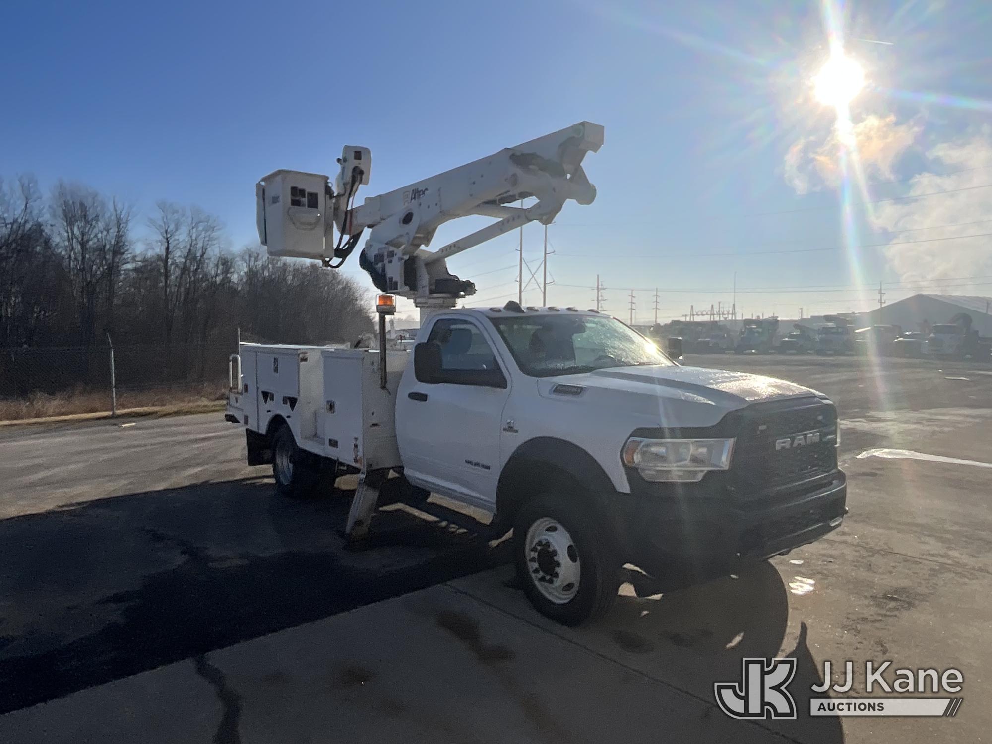 Altec AT41M, 46 ft, Articulating & Telescopic Material Handling Bucket Truck s/n 1219GH2519, with single-man bucket & 2 hyd outriggers, mounted behind cab on 2019 RAM 5500 4x4 Service Truck, Cummins 6.7L diesel, Auto, (150,780 miles) (Runs, Moves & Upper Operates) This is a Titled Item*