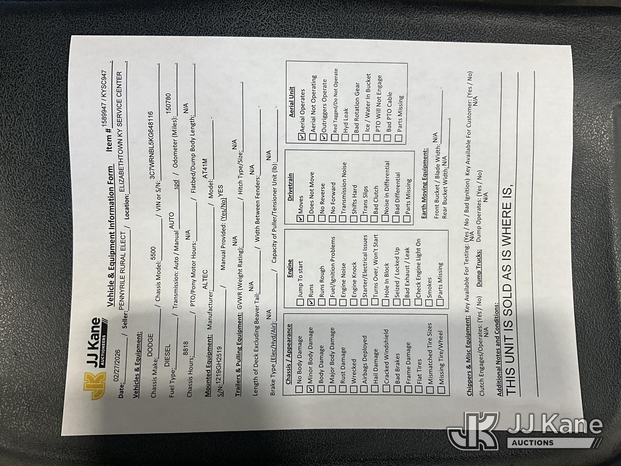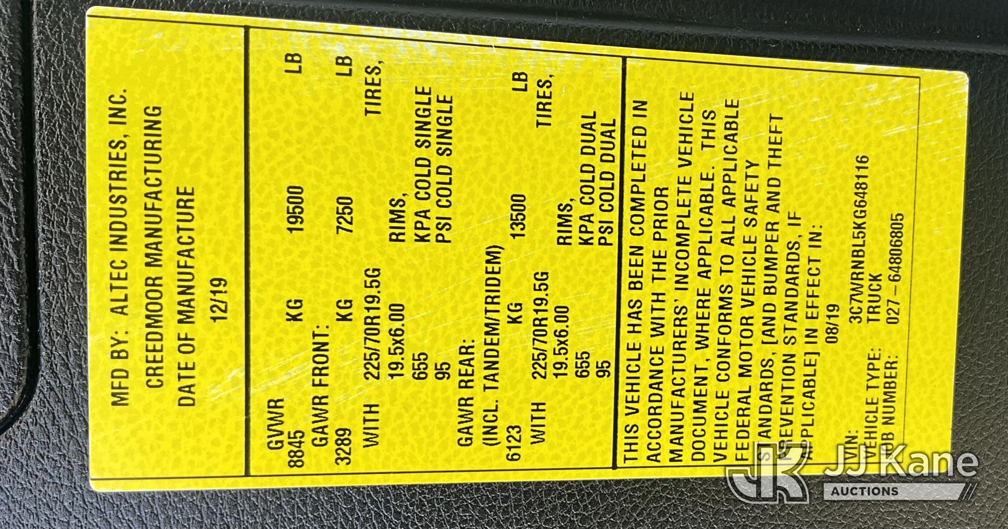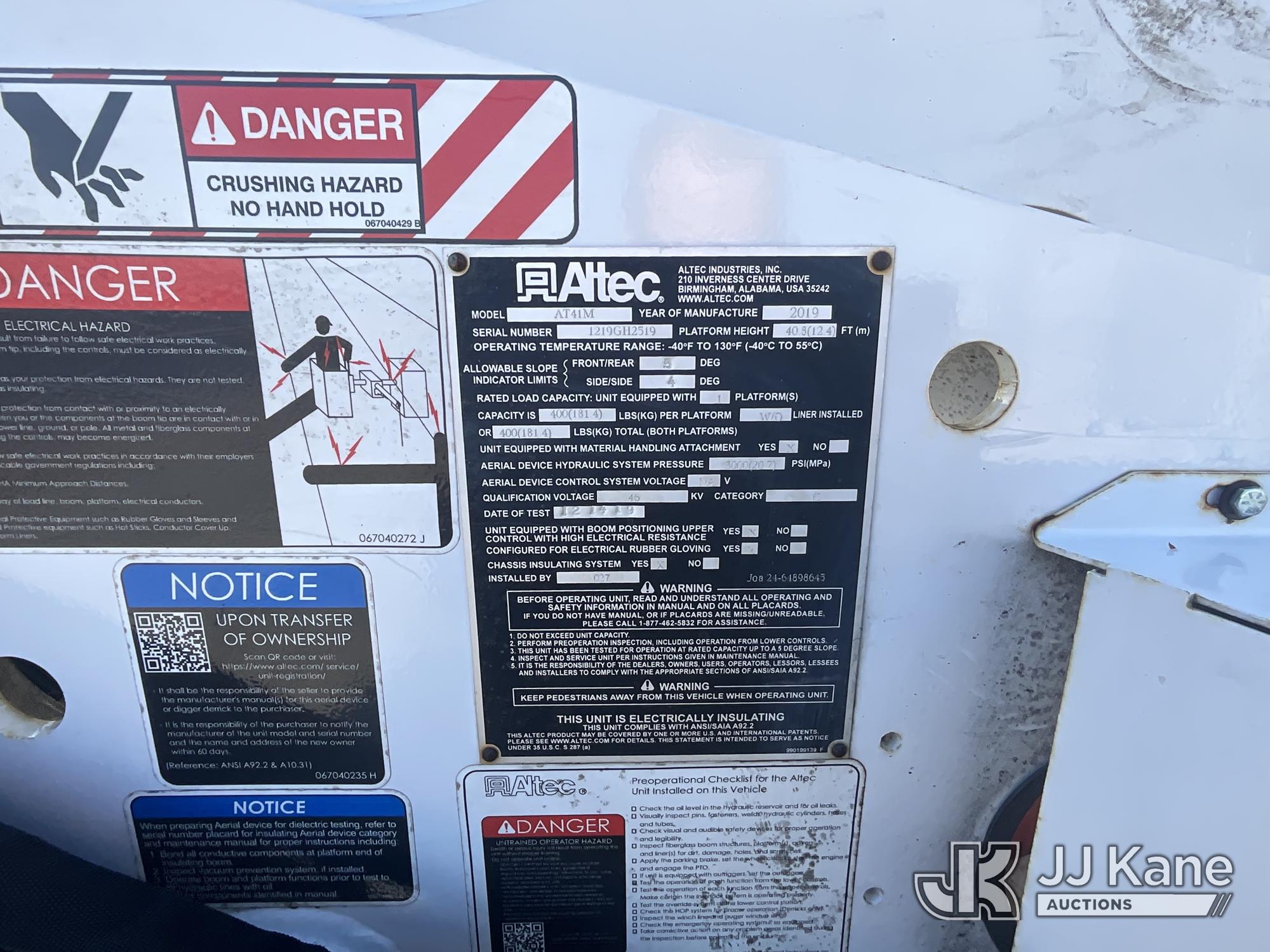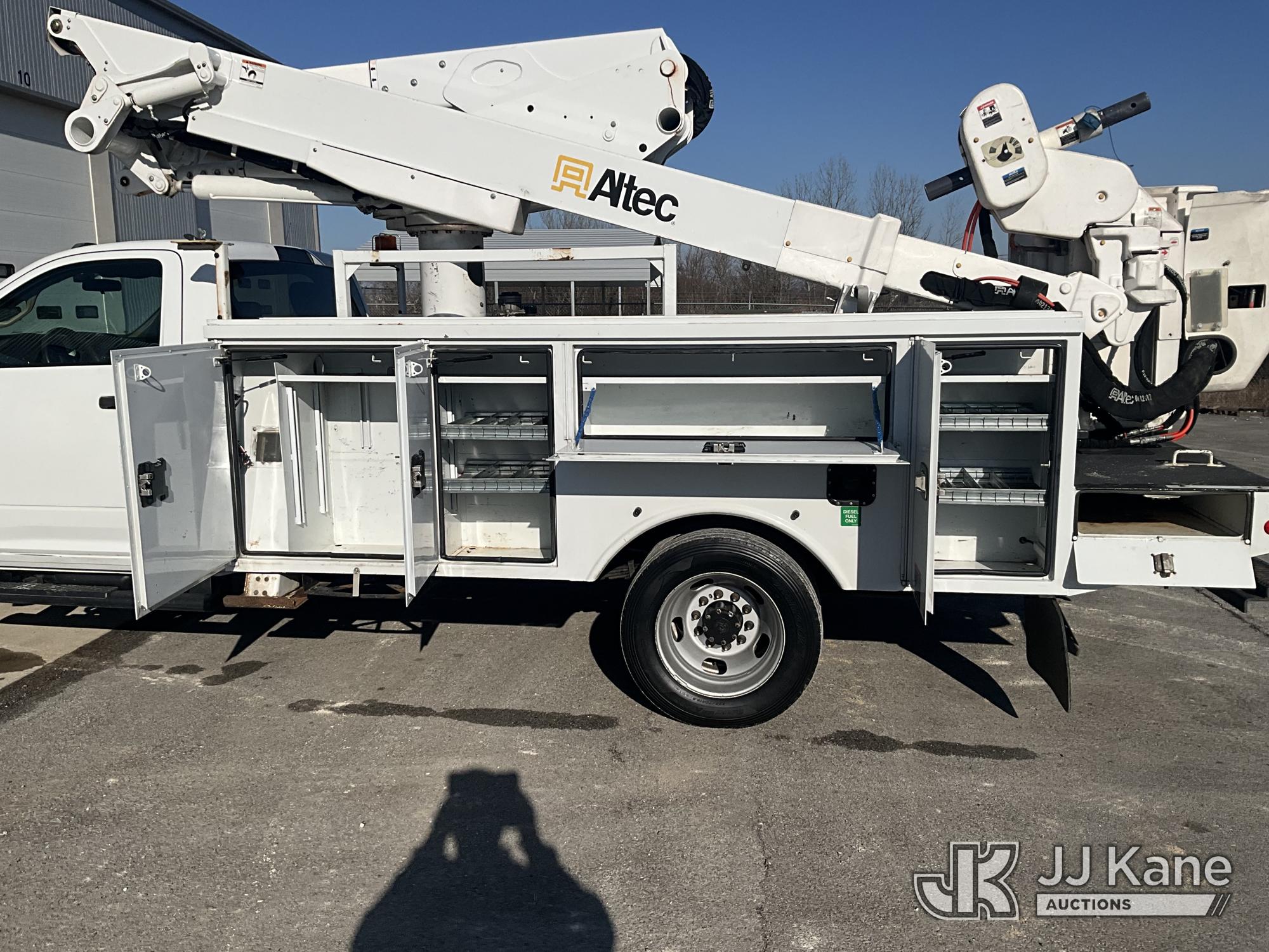 Altec AT41M, 46 ft, Articulating & Telescopic Material Handling Bucket Truck s/n 1219GH2519, with single-man bucket & 2 hyd outriggers, mounted behind cab on 2019 RAM 5500 4x4 Service Truck, Cummins 6.7L diesel, Auto, (150,780 miles) (Runs, Moves & Upper Operates) This is a Titled Item*