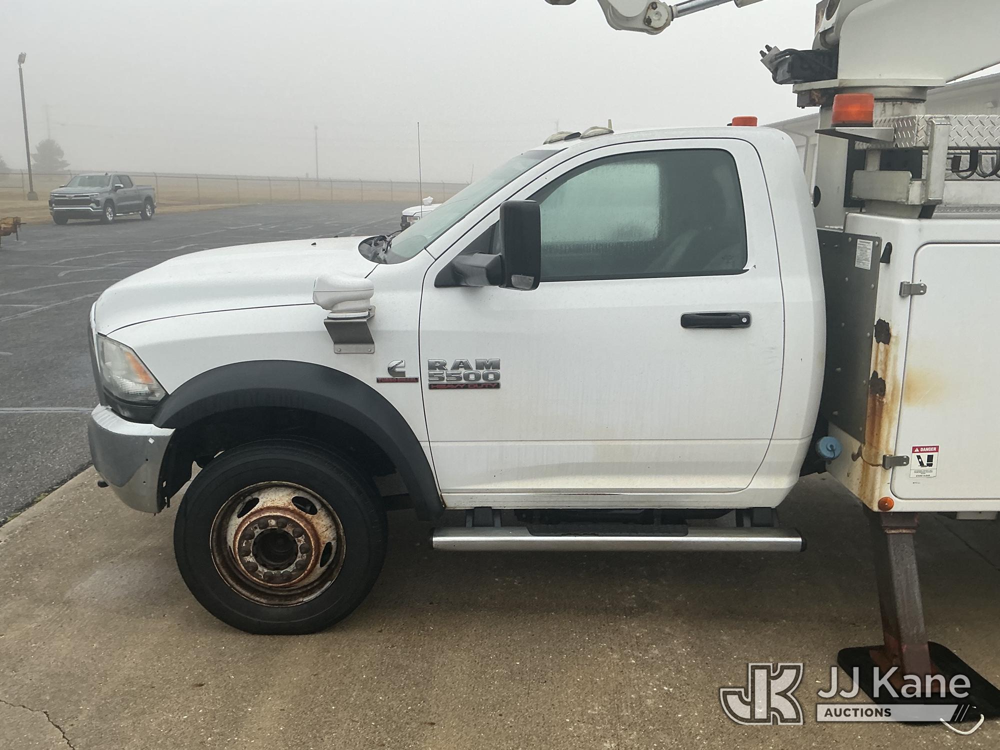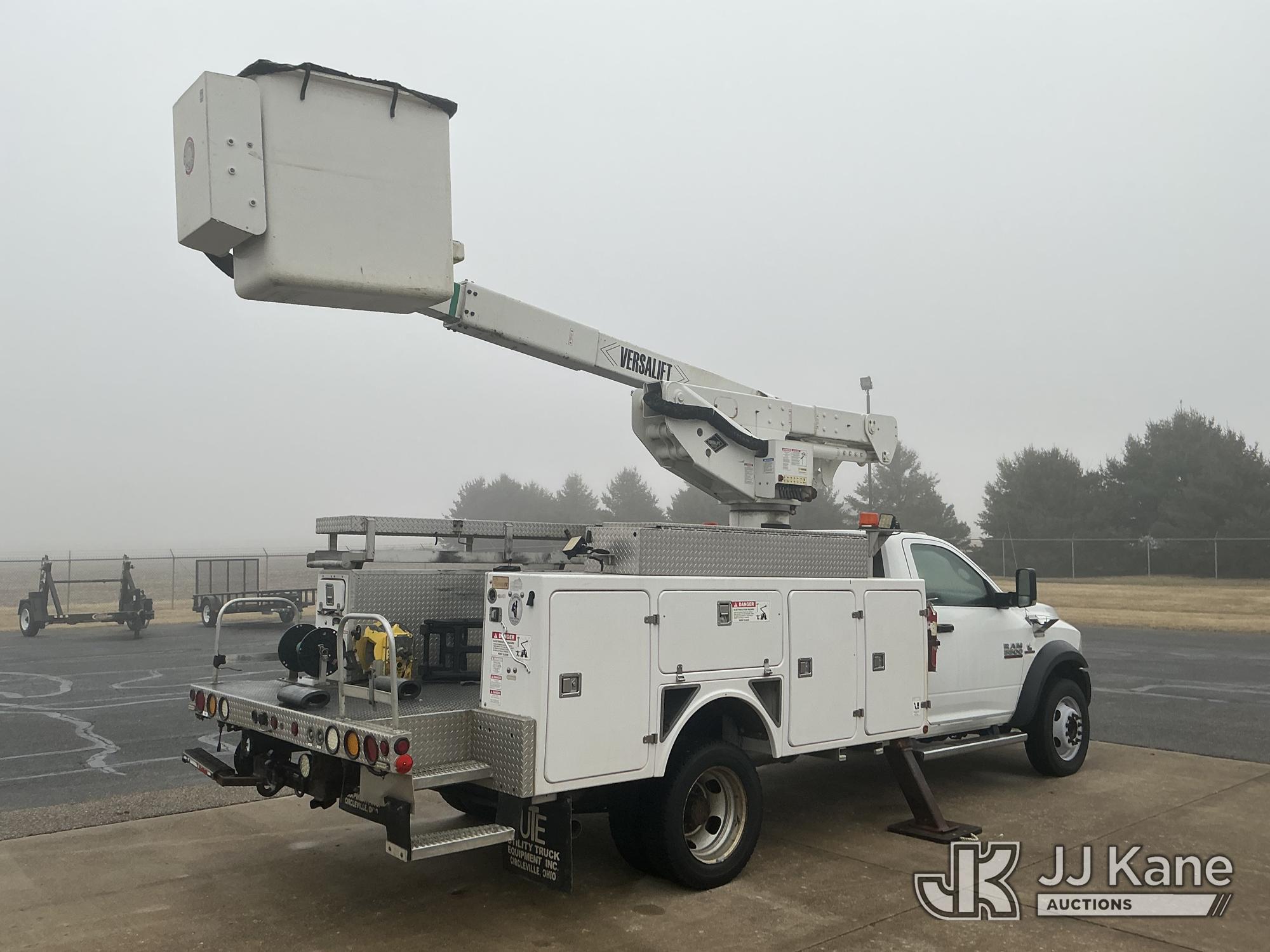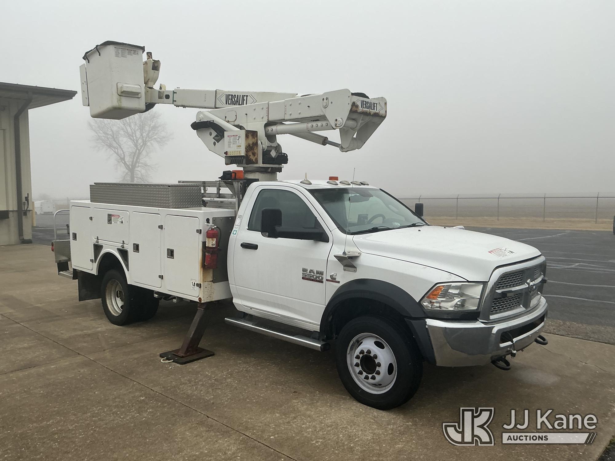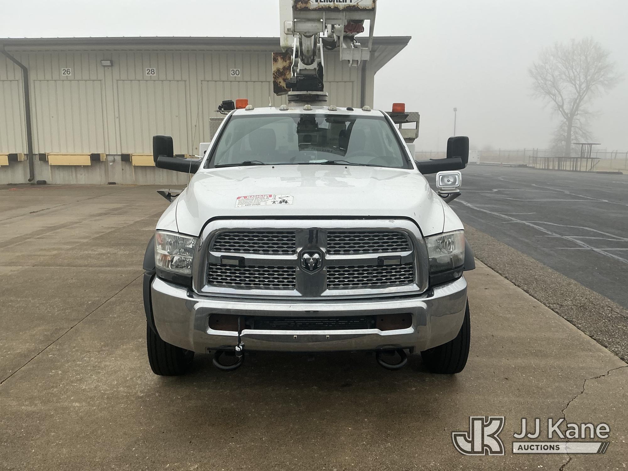 Versalift VST40I, 45 ft, Articulating & Telescopic Material Handling Bucket Truck s/n KW130053, with single-man bucket & 2 hyd outriggers, mounted behind cab on 2013 RAM 5500 4x4 Service Truck, 6.7L L6 OHV 24V turbo diesel, Auto, A/C, (225,199 miles) (Runs, Moves & Upper Operates) (Reads 9,810 hours) This is a Titled Item*