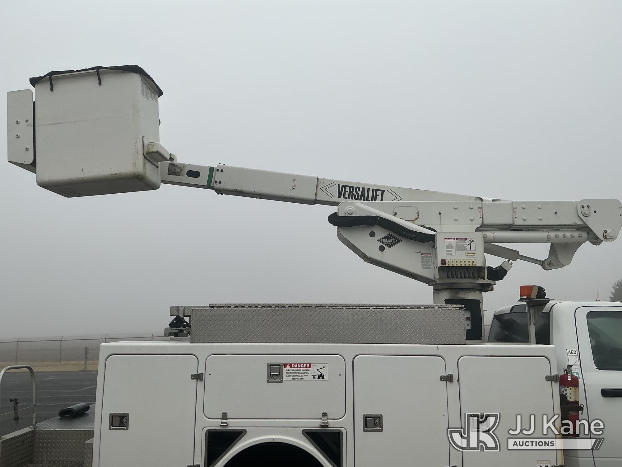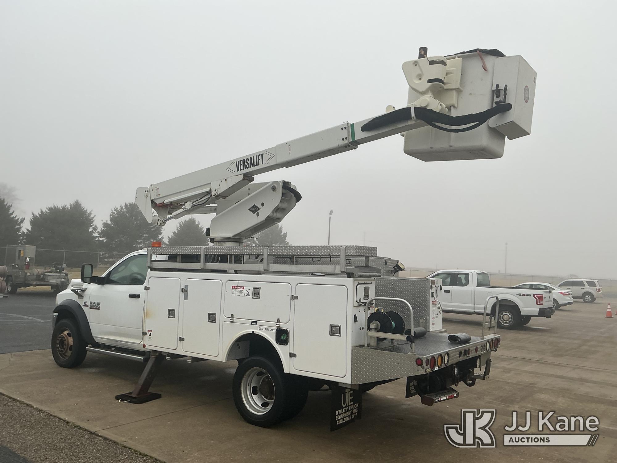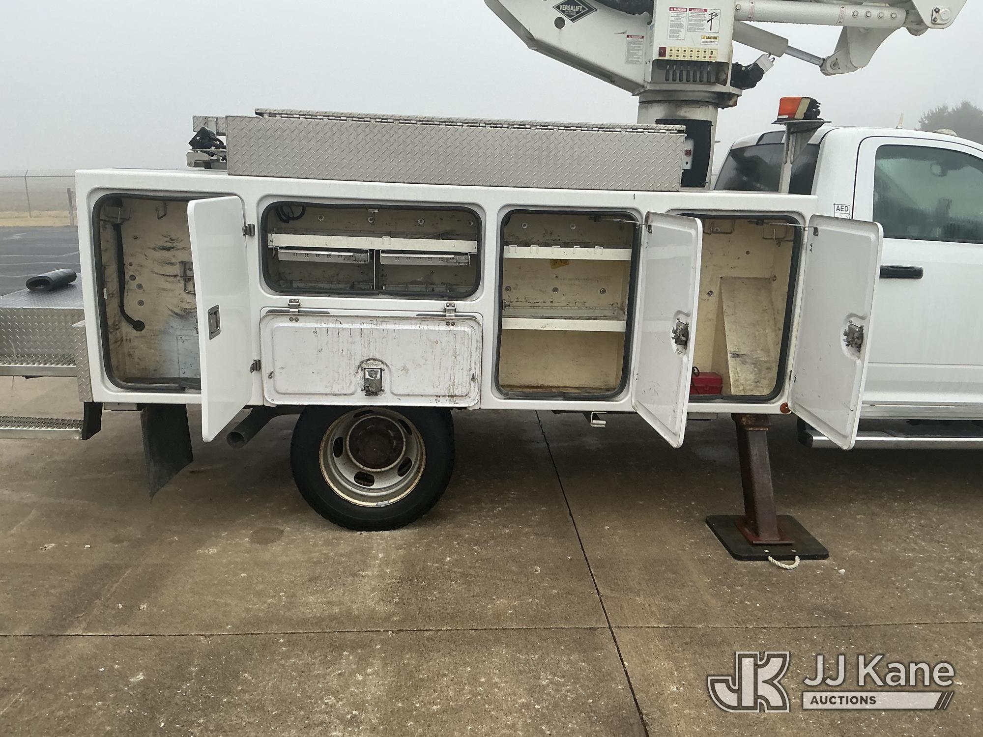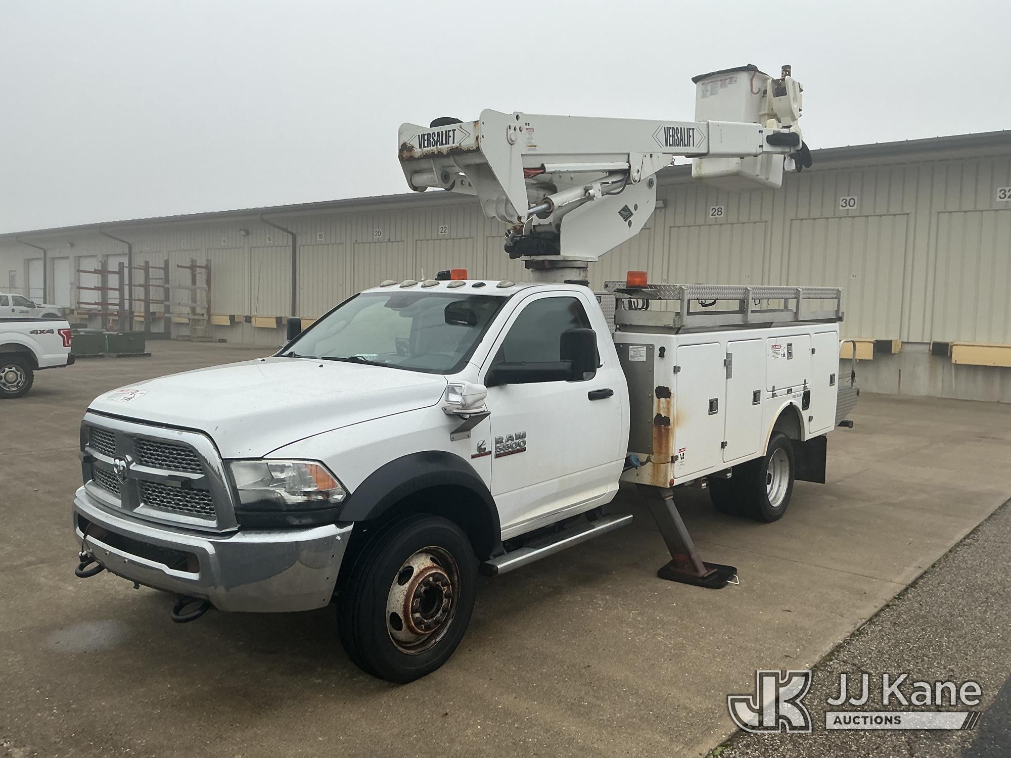 Versalift VST40I, 45 ft, Articulating & Telescopic Material Handling Bucket Truck s/n KW130053, with single-man bucket & 2 hyd outriggers, mounted behind cab on 2013 RAM 5500 4x4 Service Truck, 6.7L L6 OHV 24V turbo diesel, Auto, A/C, (225,199 miles) (Runs, Moves & Upper Operates) (Reads 9,810 hours) This is a Titled Item*