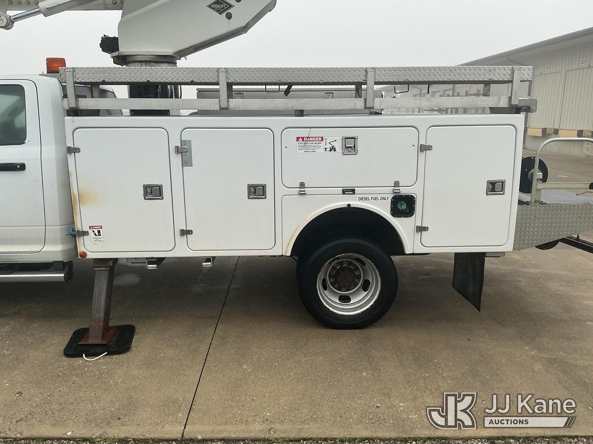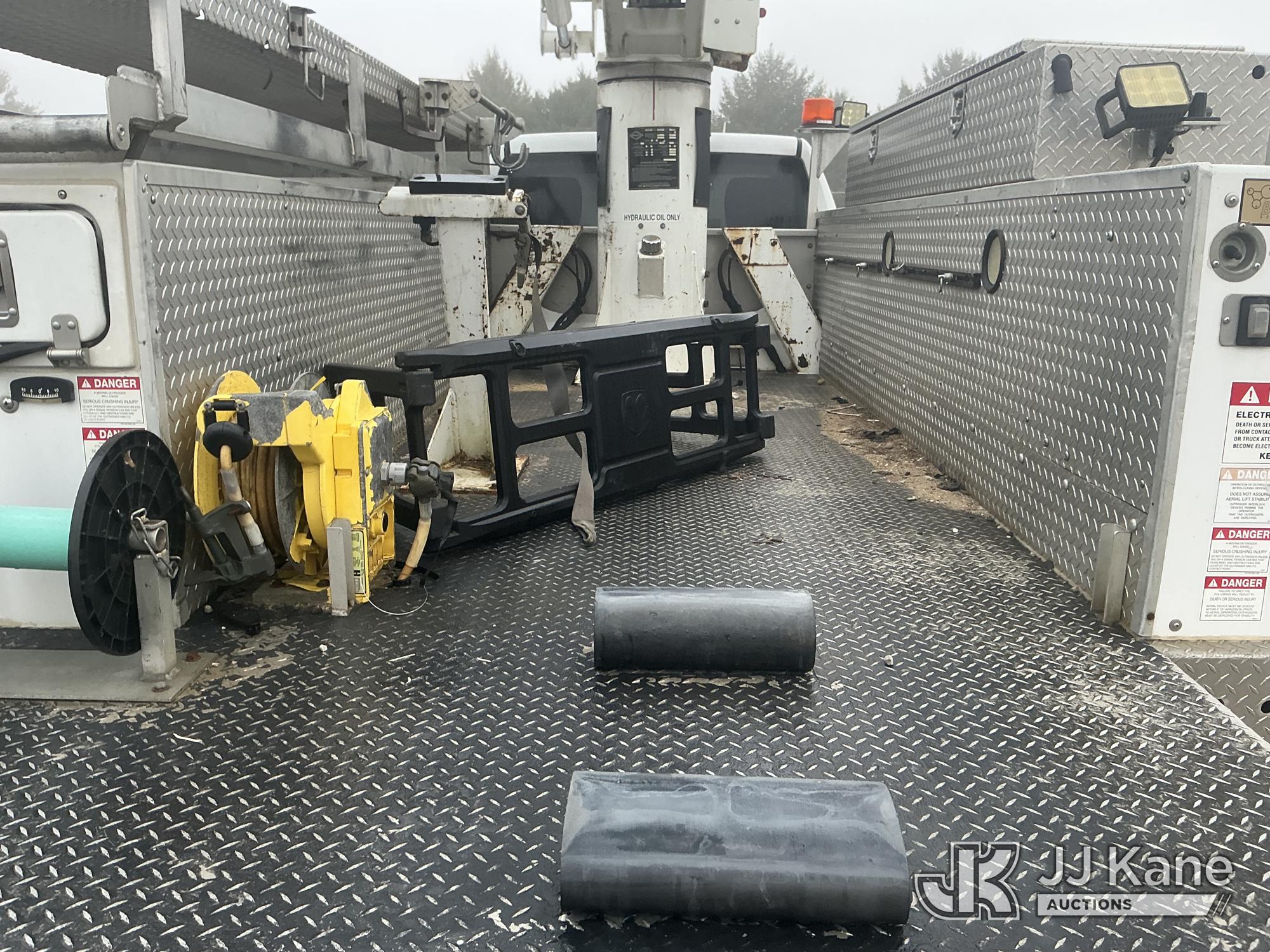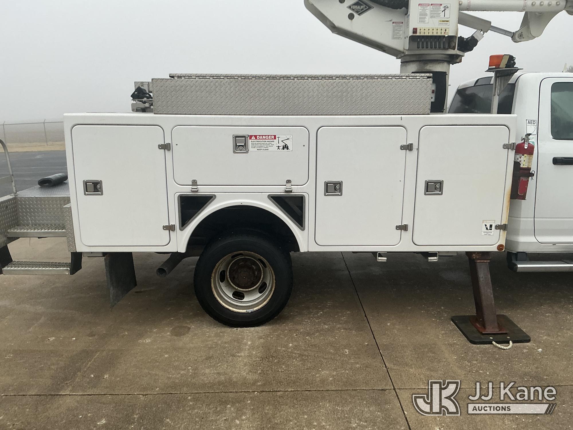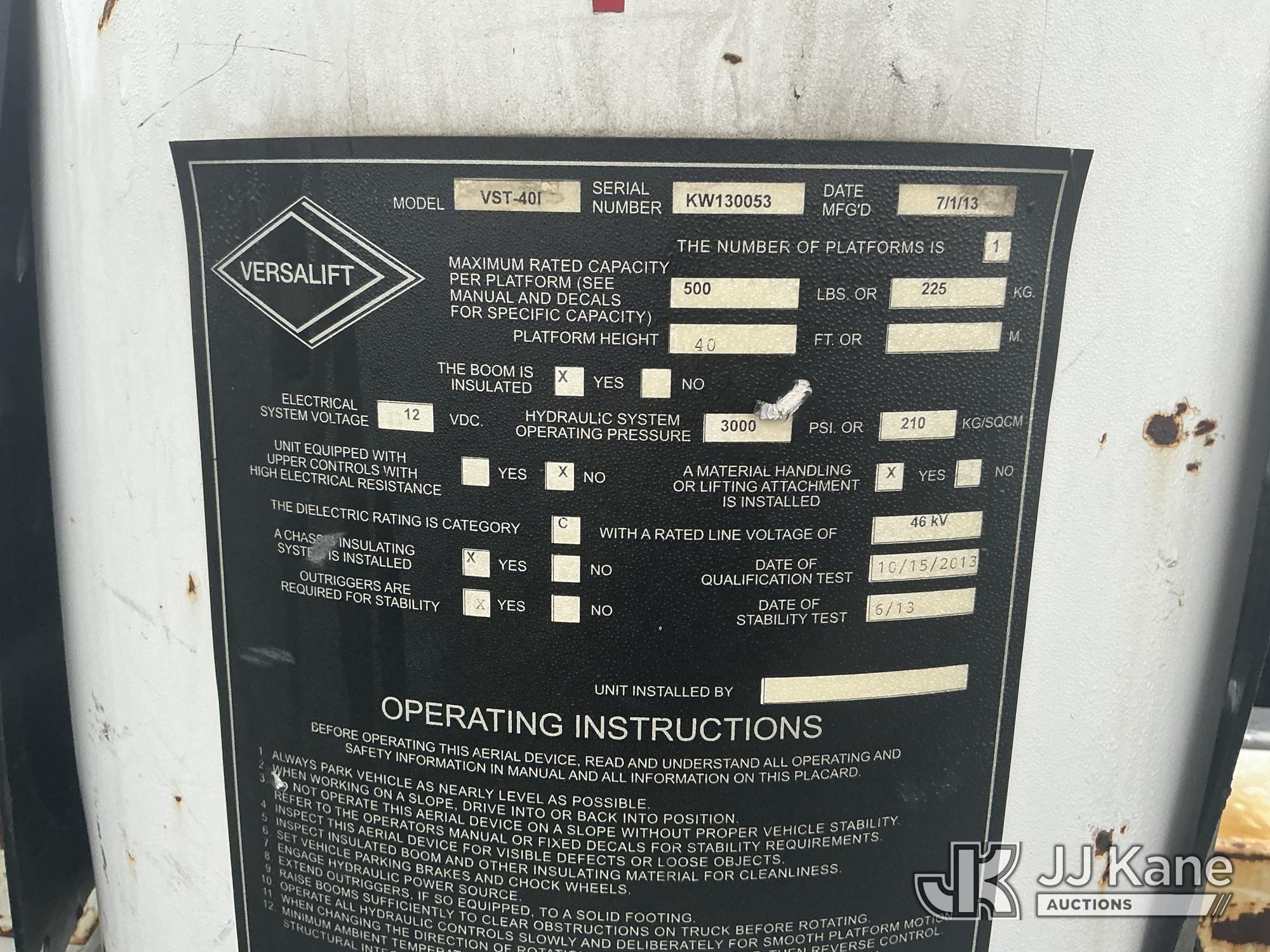 Versalift VST40I, 45 ft, Articulating & Telescopic Material Handling Bucket Truck s/n KW130053, with single-man bucket & 2 hyd outriggers, mounted behind cab on 2013 RAM 5500 4x4 Service Truck, 6.7L L6 OHV 24V turbo diesel, Auto, A/C, (225,199 miles) (Runs, Moves & Upper Operates) (Reads 9,810 hours) This is a Titled Item*