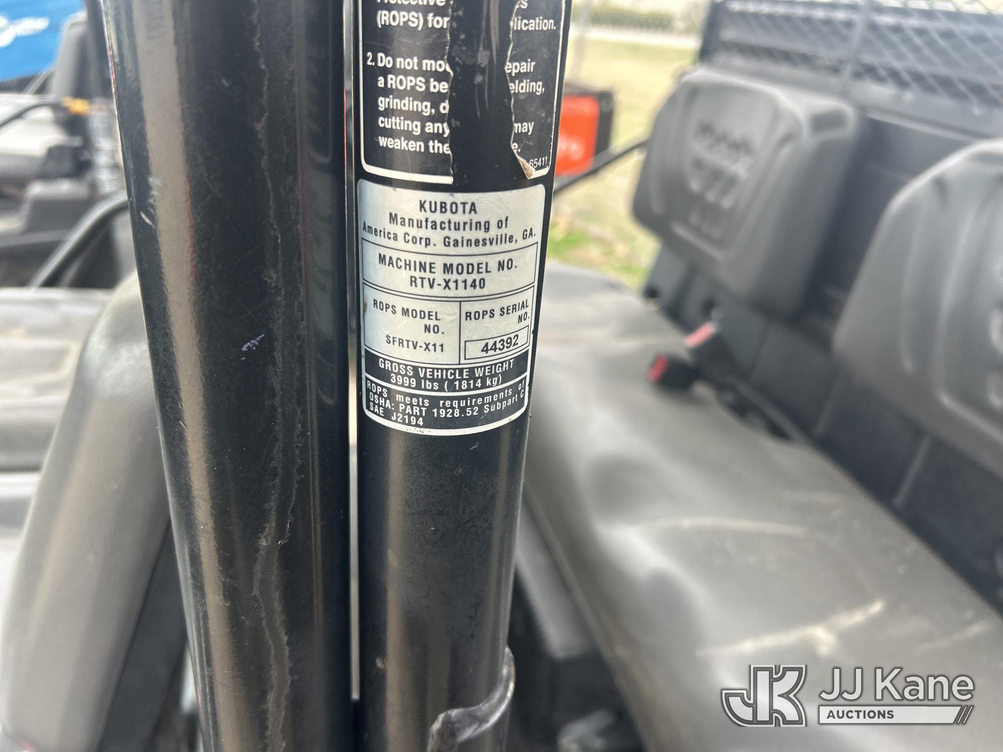 2017 Kubota RTV-X1140 All-Terrain Vehicle, s/n A5KD2GDBJMG044283, Kubota diesel, Auto, with ROPS, 2017 Kubota RTVX1140WH Side By Side 4-Seat Cart (Not Titled) (Not Running, Condition Unknown) (Reads 02,017 hours)*