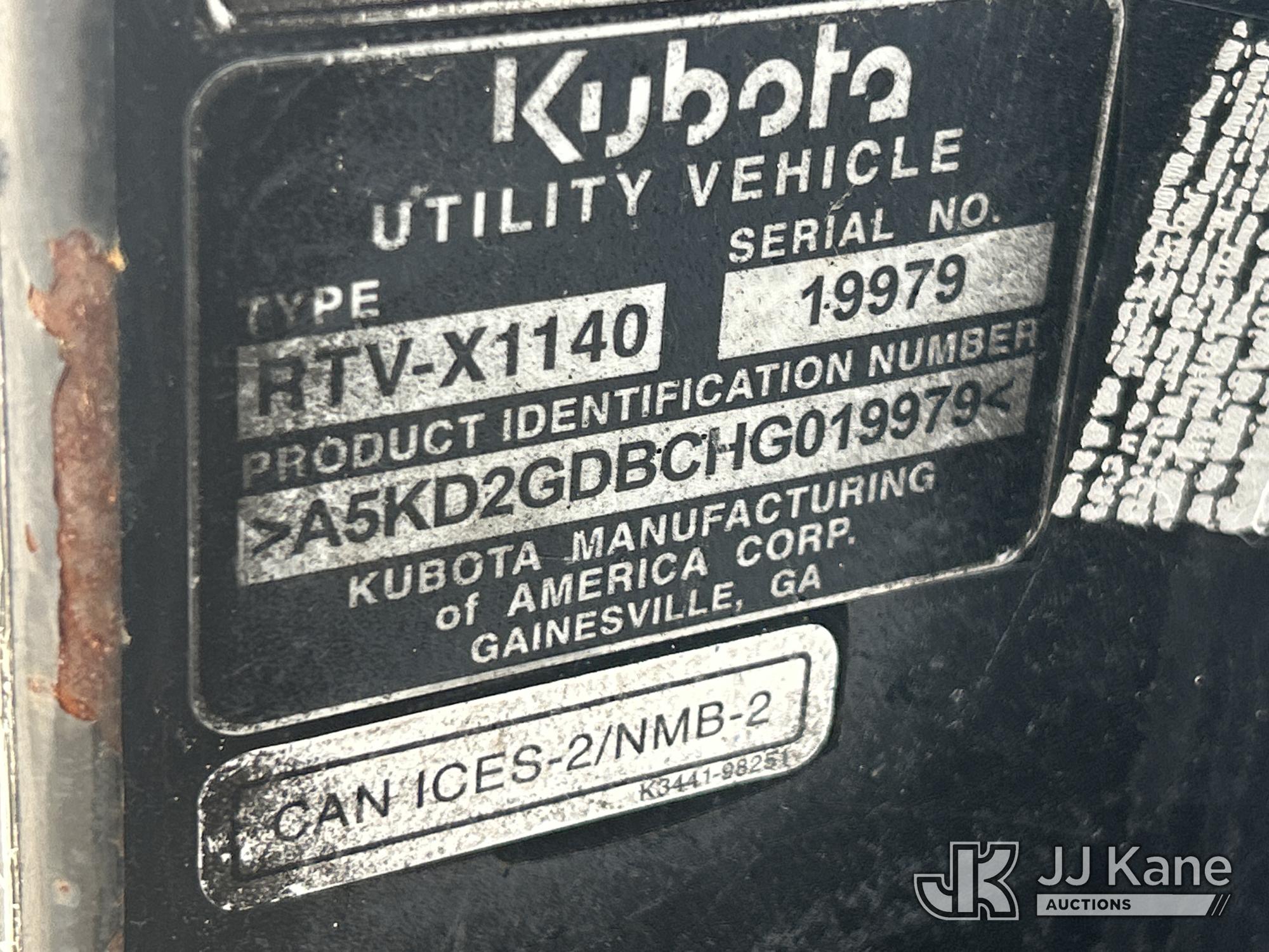 2017 kubota RTV-X1140 All-Terrain Vehicle, s/n A5KD2GDBCHG019979, Kubota diesel, auto, with ROPS, (20,171 miles) 2017 Kubota RTVX1140WH Side By Side 4-Seat Cart (Not Titled) (Runs & Moves)*