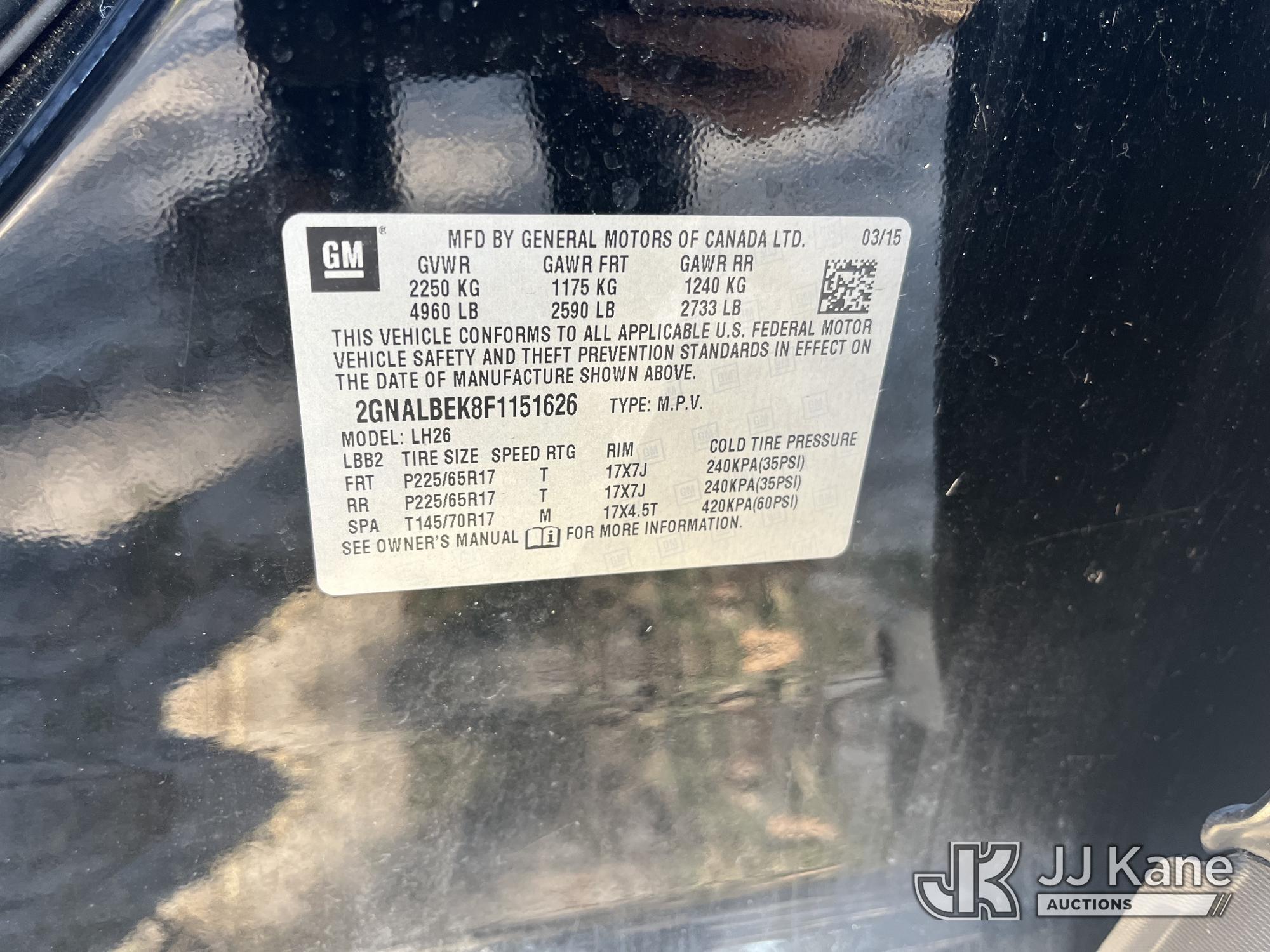 2015 Chevrolet Equinox 4-Door Sport Utility Vehicle, 2.4L L4 DOHC 16V FFV gas, FWD, 6-Speed Automatic, A/C, (121,003 miles) State of FL Unit (Runs & Moves) (Check Engine Light On)(FL Residents Purchasing Titled Items – tax, title & registration fees will be collected at the maximum rate of $400.00 under 25,999 and $800.00 for Over 26,000 and $250.00 trailers – Proof of insurance is mandatory; Out of State Residents Purchasing Title Items – tax will be collected based upon your state rate.) This is a Titled Item*