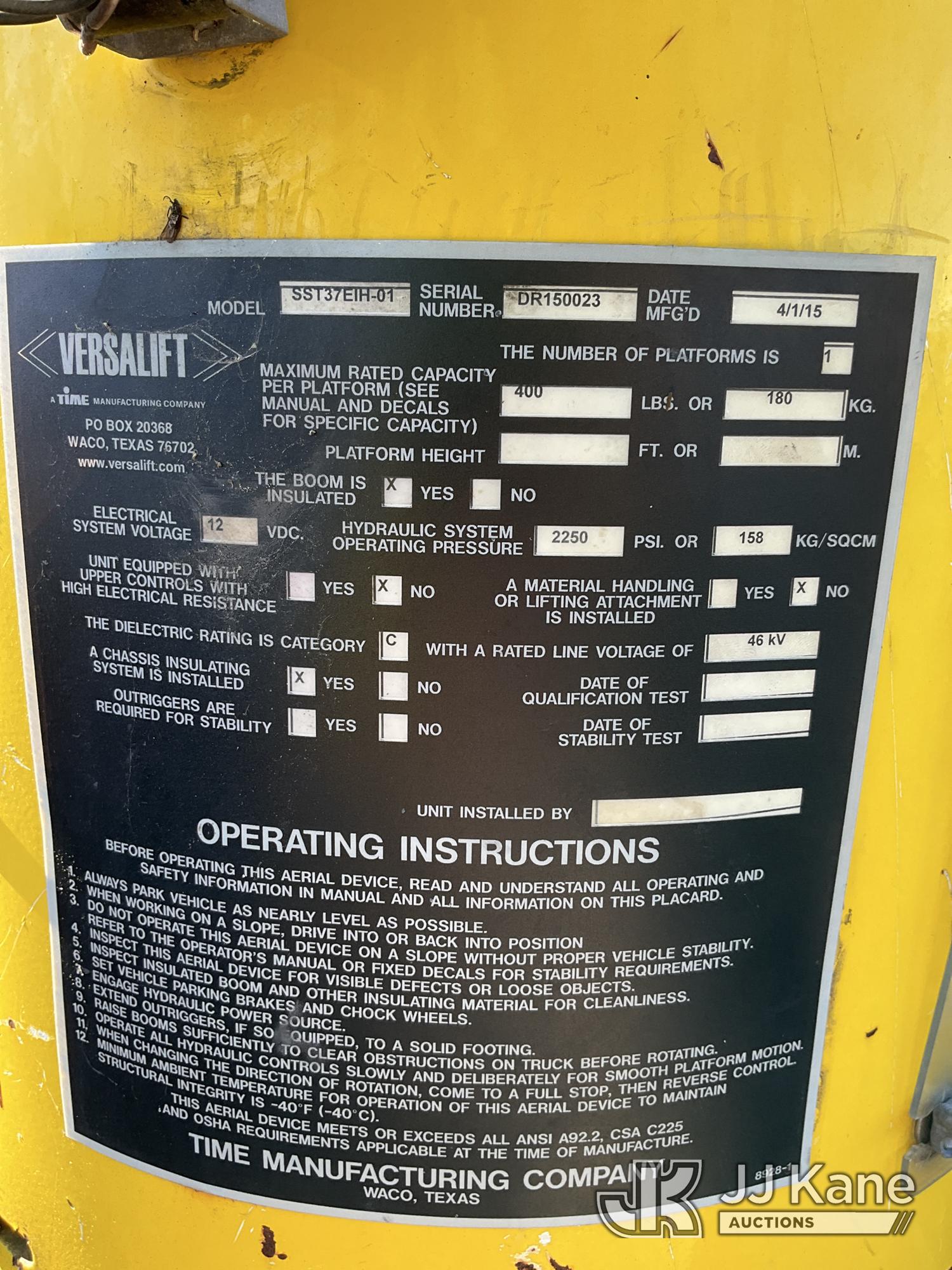 Versalift SST37EIH-01, 42 ft, Articulating & Telescopic Bucket Truck s/n DR150023, with single-man bucket, mounted behind cab on 2015 RAM 5500 4x4 Service Truck, Cummins 6.7L diesel, Auto, A/C, with front winch, (194,785 miles) (Runs, Moves & Upper Operates) (Check Engine Light On, Minor Body and Paint Issues) This is a Titled Item*