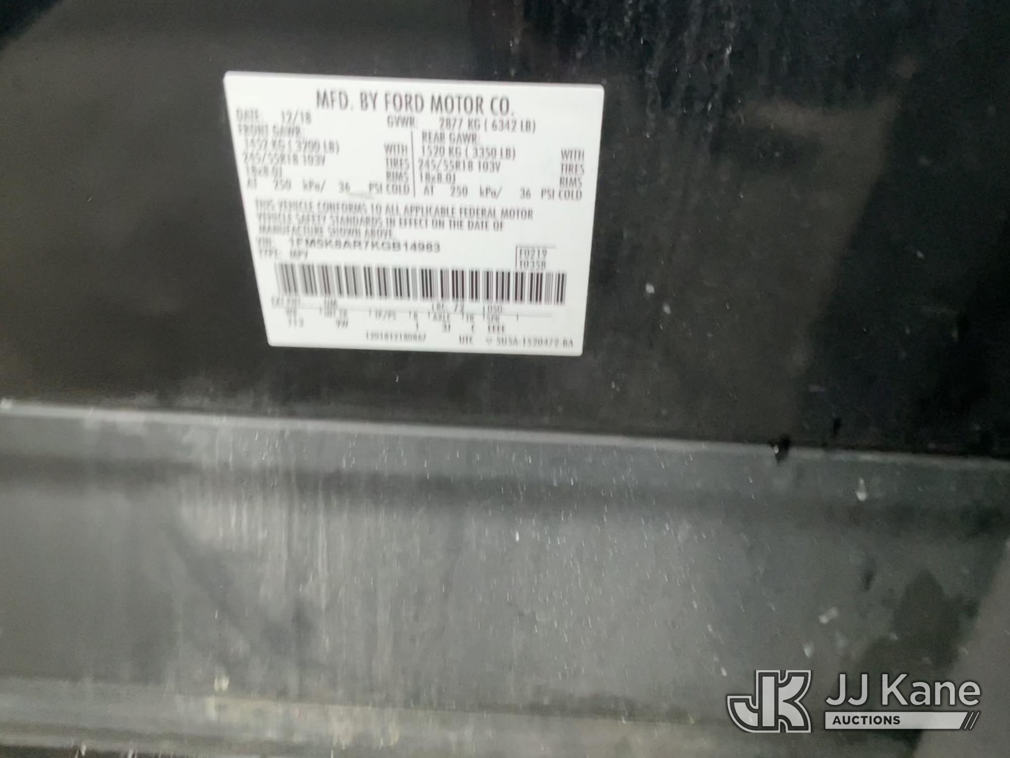 2019 Ford Explorer Police AWD 4-Door Sport Utility Vehicle, s/n 1FM5K8AR7KGB14983, 3.7L V6 DOHC 24V Gas, 6-Speed Automatic, A/C, (96,410 miles) (Runs & Moves) (Recall With Remedy Not Yet Available, No Horn, Minor Body Damage) (Bidding Restricted to Licensed Vehicle Dealers Only), This is a Titled Item*