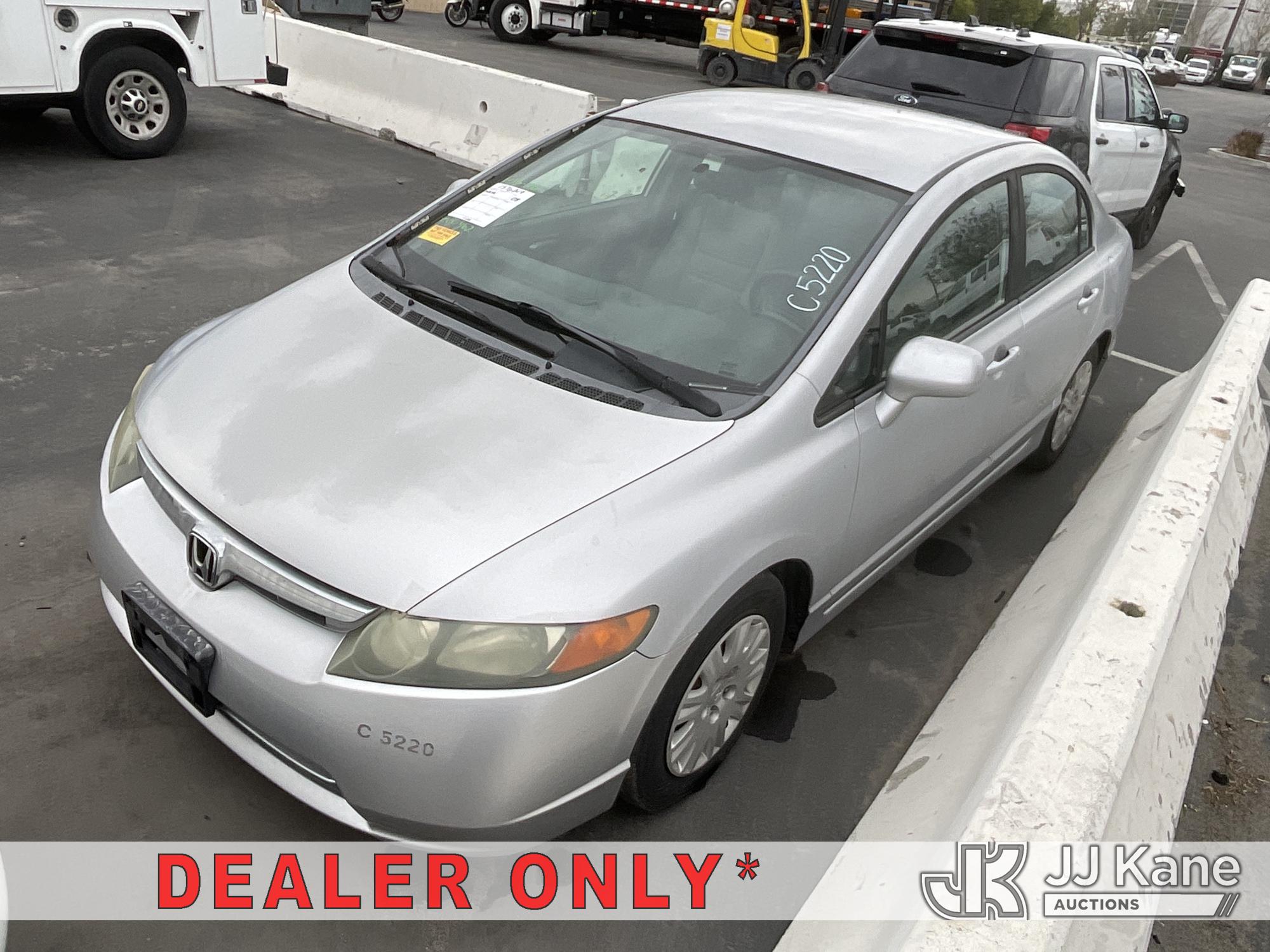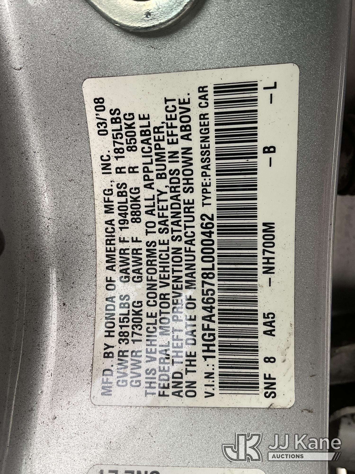 2008 Honda Civic 4-Door Sedan, s/n 1HGFA46578L000462, 4-cyl, CNG FWD, 5-Speed Automatic, A/C, (097,665 miles) (Runs, Does Not Move) (Transmission Slipping, No Emissions Sticker) (Bidding Restricted to Licensed Vehicle Dealers Only), This is a Titled Item*