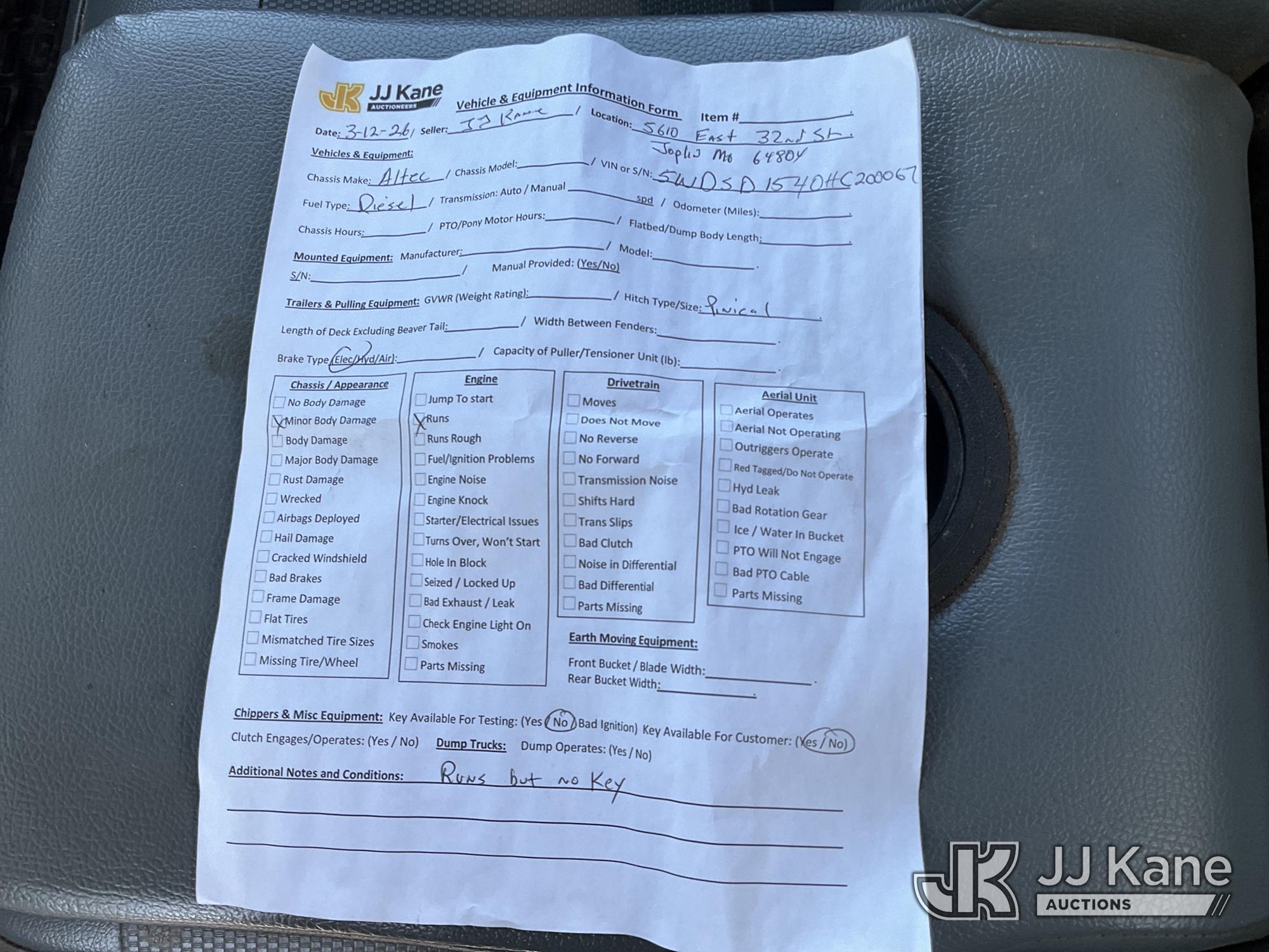 2017 Altec DRM12 Chipper (12in Drum), diesel, (Runs) (No Key) This is a Titled Item*