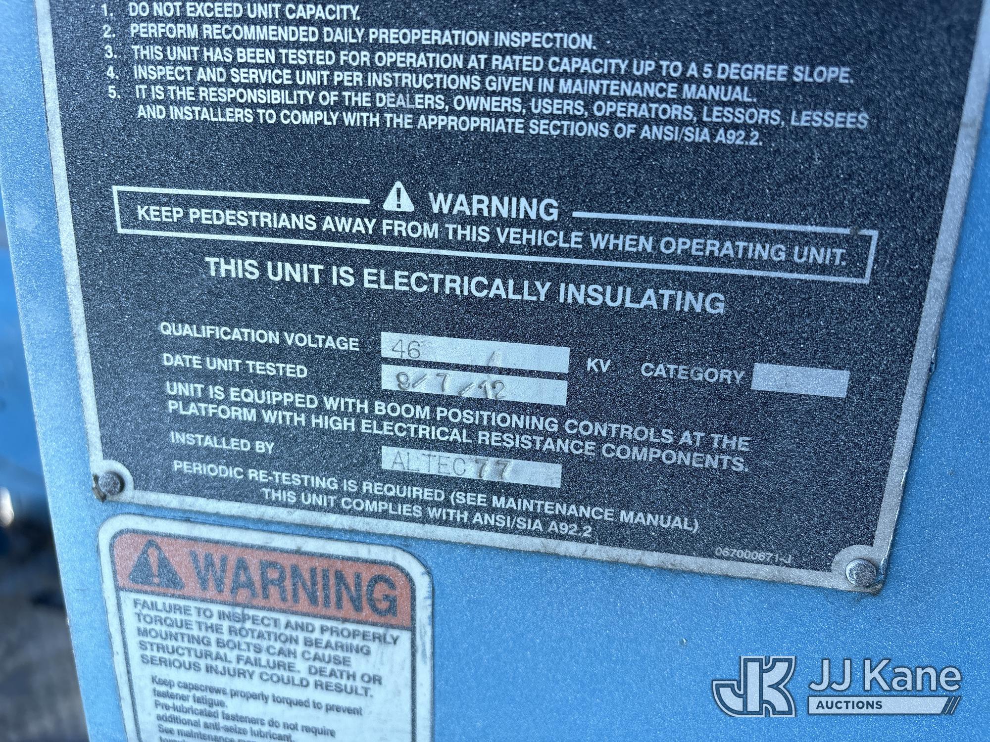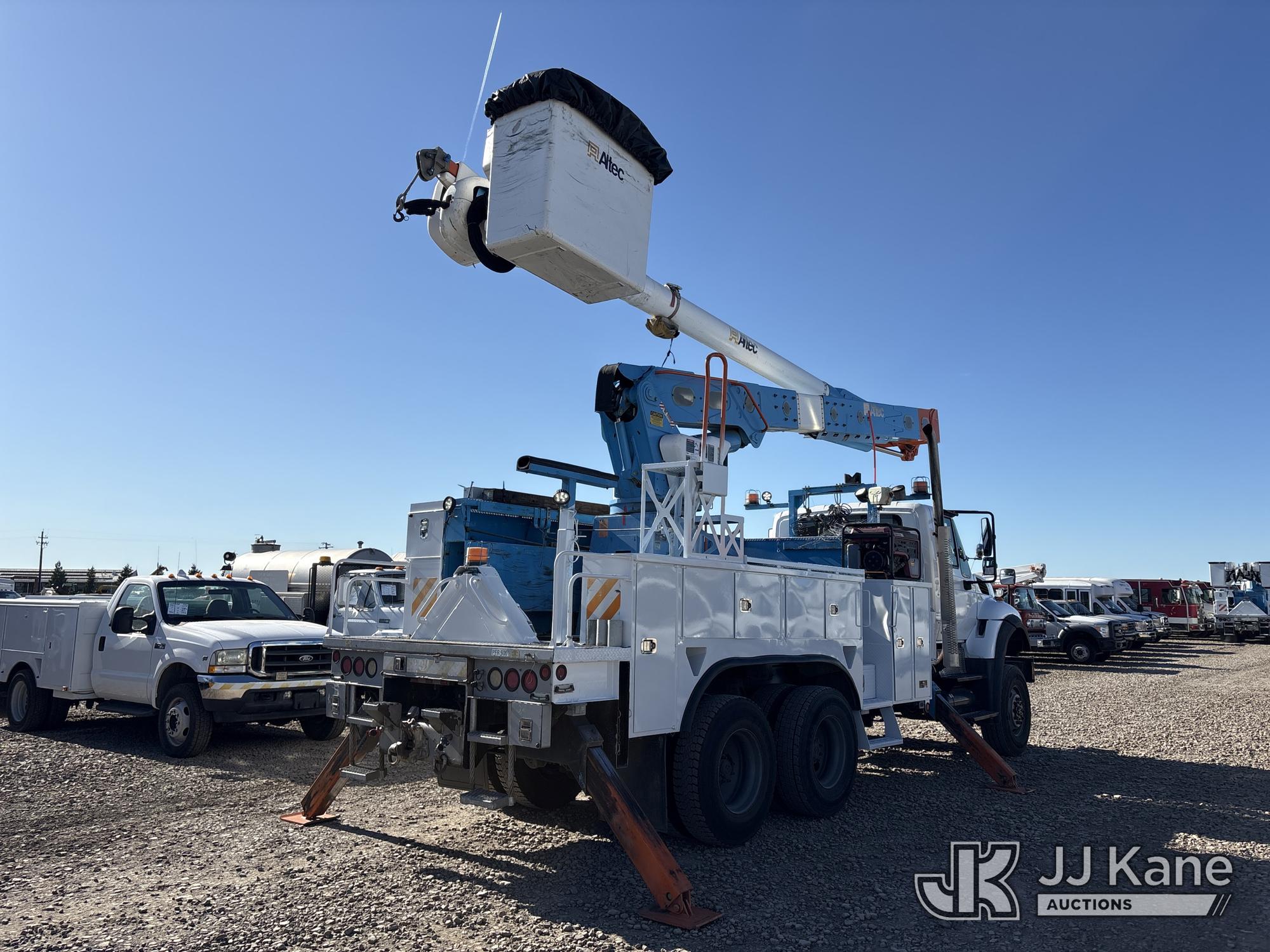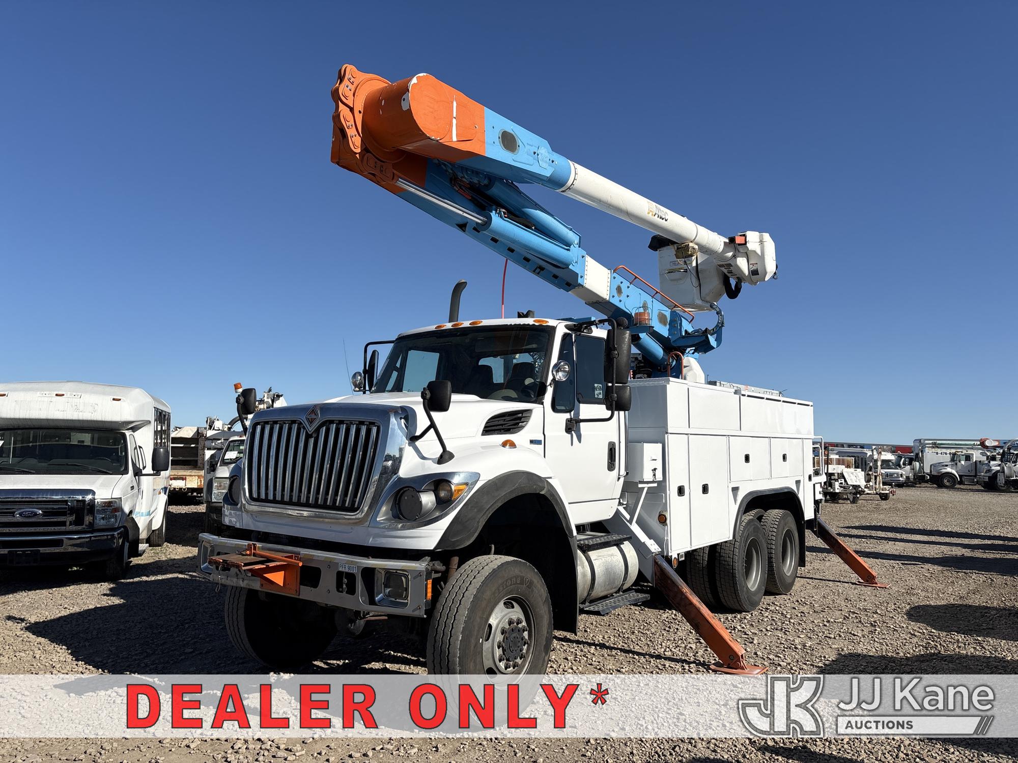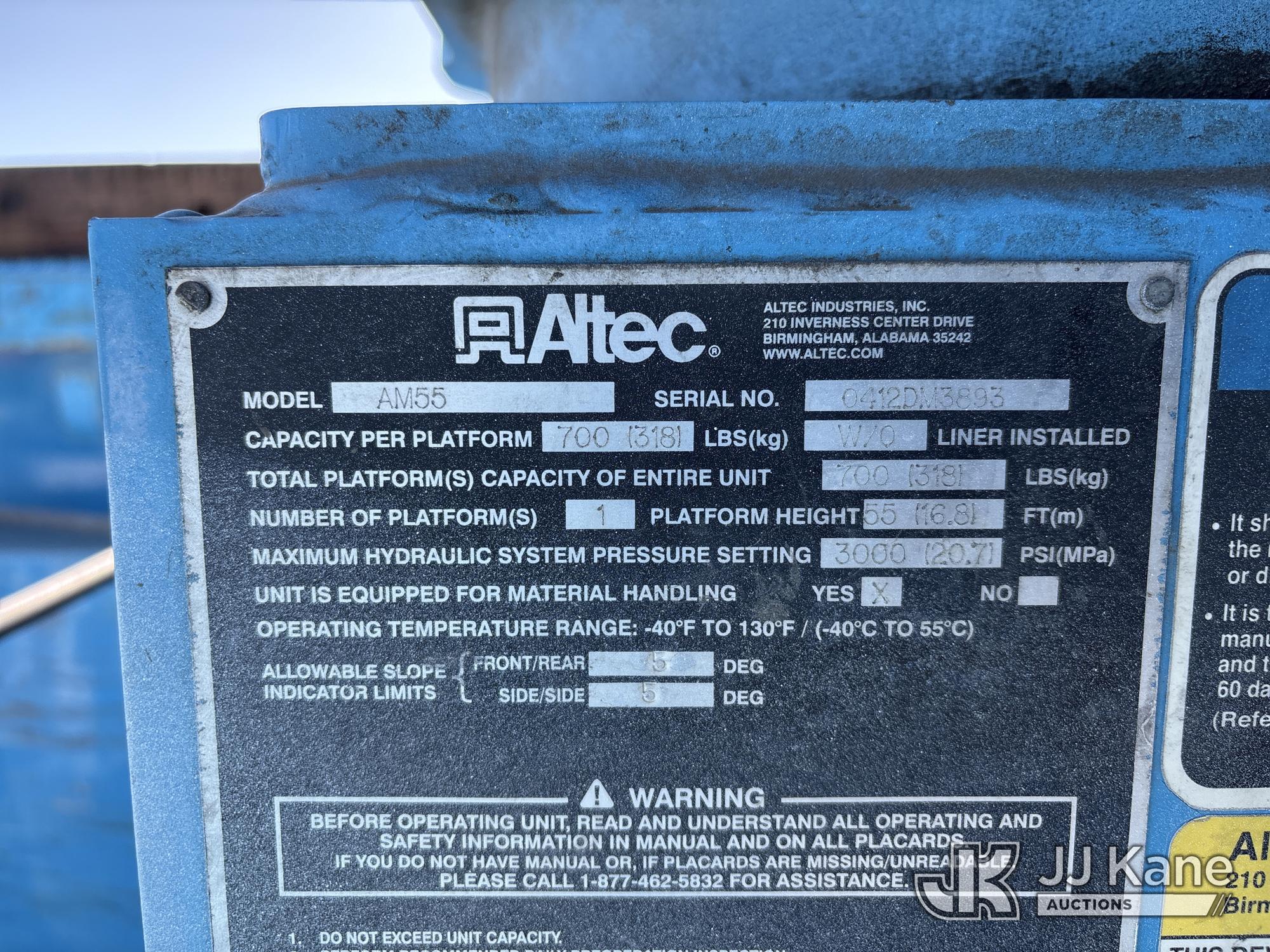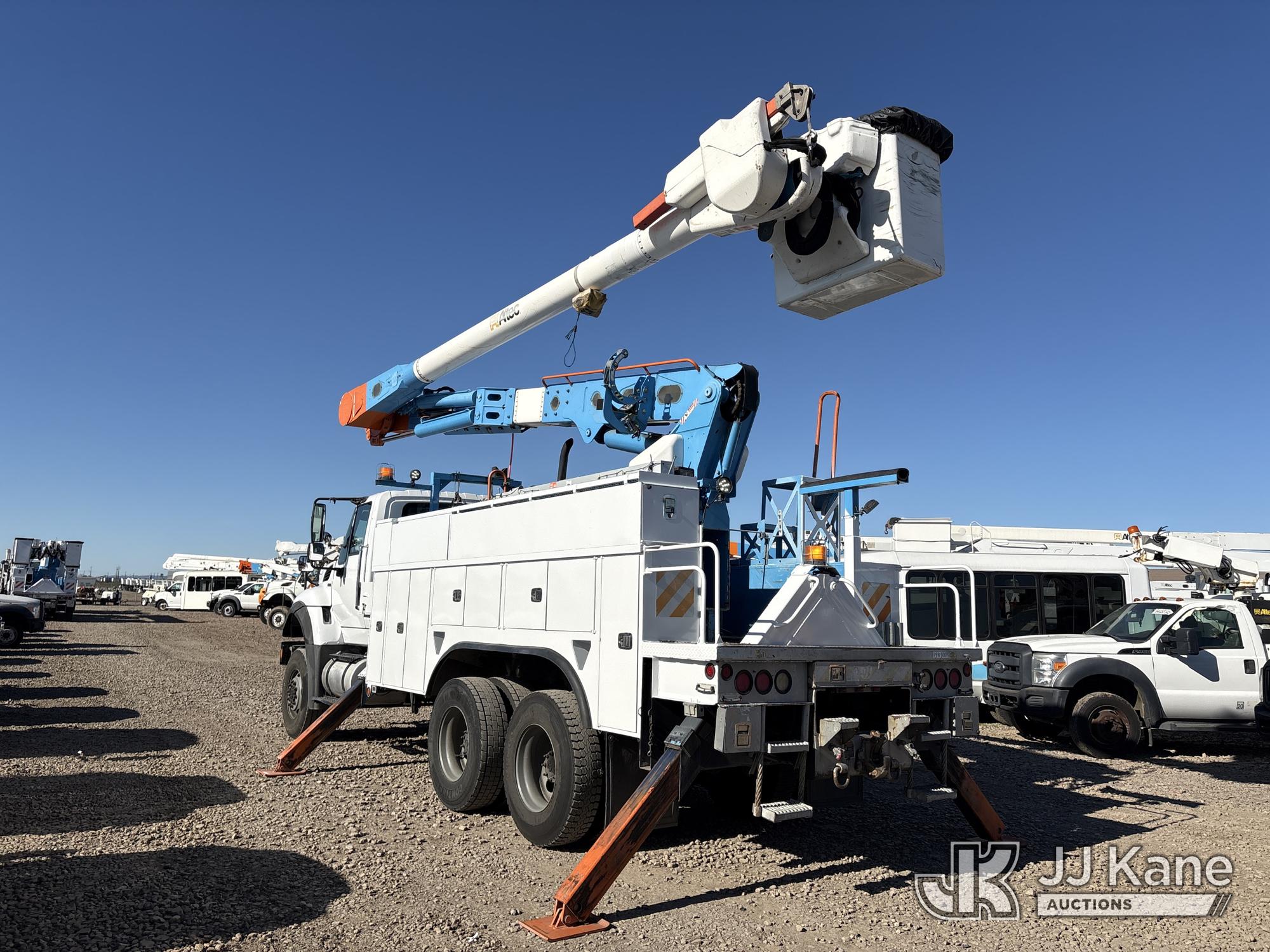 Altec AM55, 60 ft, Over-Center Material Handling Bucket Truck s/n 0412DM3893, with Two-Man Bucket, 4 Hydraulic Outriggers, rear mounted on 2013 International 7500 T/A Utility Truck, 9.3L L6 DIESEL 6X6, Auto, A/C, (60,458 miles) Honda Generator Cranks, Does Not Start (Runs, Moves & Operates) (Check Engine Light On) (Reads 5,068 hours) (Bidding Restricted to Licensed Vehicle Dealers Only), May be subject to ARB Regulations This is a Titled Item*