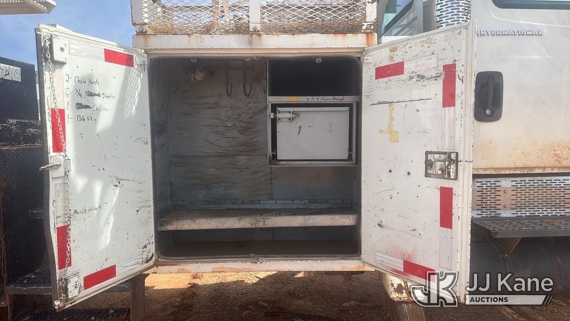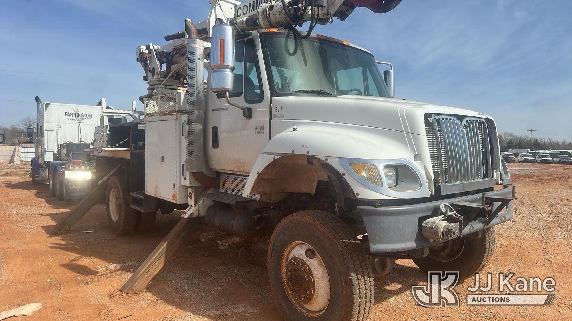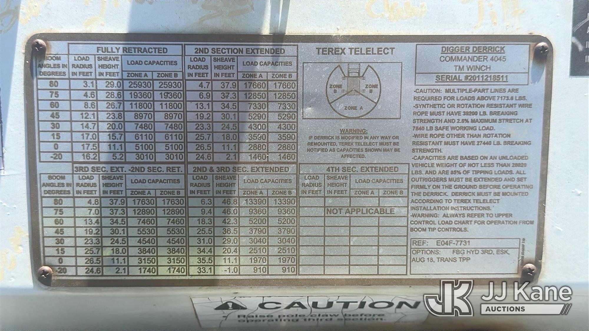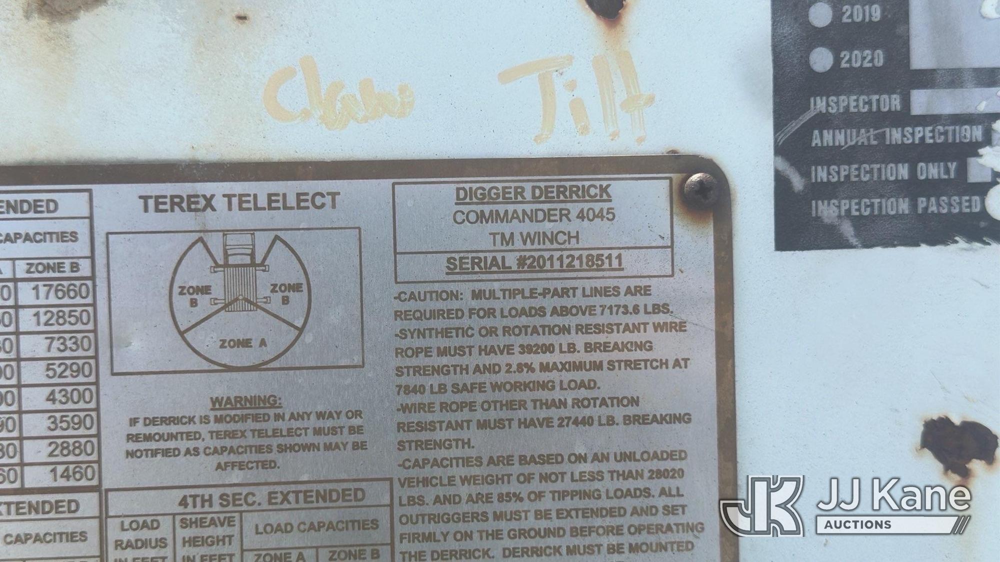 Terex Commander 4045, 25,930 Lb Digger Derrick s/n 2011218511, with 45 ft. sheave height, 3 section hyd boom, pole grabs, 2 spd digger, riding console & 4 Outriggers, rear mounted on 2002 International 7400 Utility Truck, 8.7L diesel, 4X4, Auto, (Exempt from Odometer Disclosure - Reads 133,799 miles) (Runs & Moves) (Upper Unit Not Operating, Condition Unknown) This is a Titled Item*