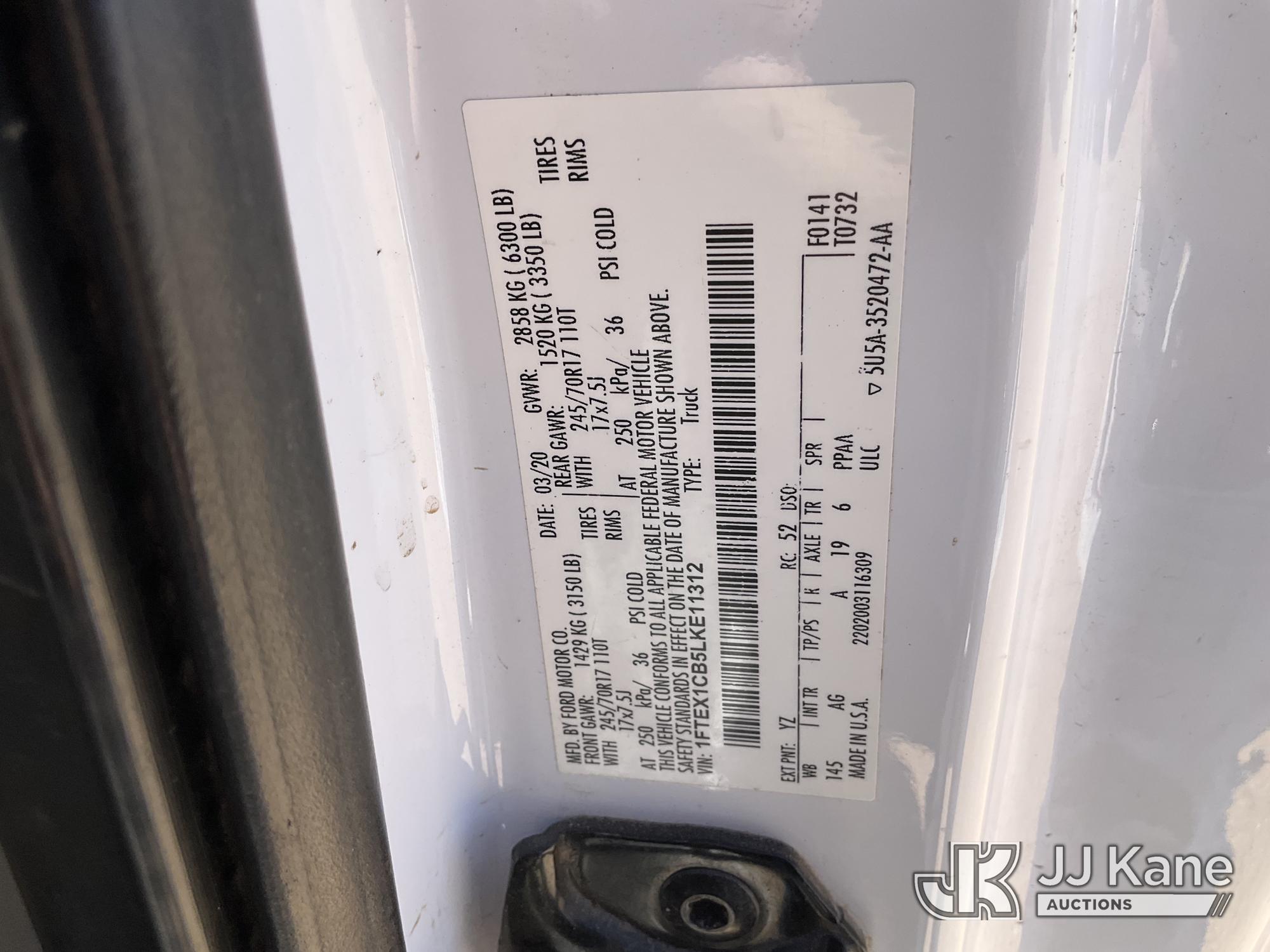 2020 Ford F-150 Extended-Cab Pickup Truck, 6-cyl gas, 6-Speed Automatic, A/C, with Fluid Storage, Truck Bed Box, (104,437 miles) (Runs & Moves) (Tire Pressure Light On, Seller States, HAS CODES FOR CATALYTIC CONVERTERS) This is a Titled Item*
