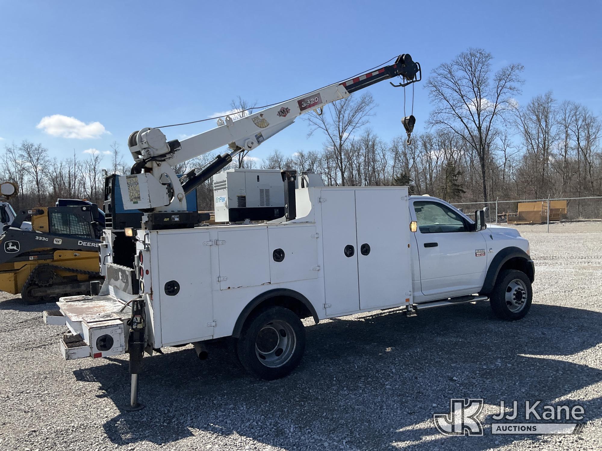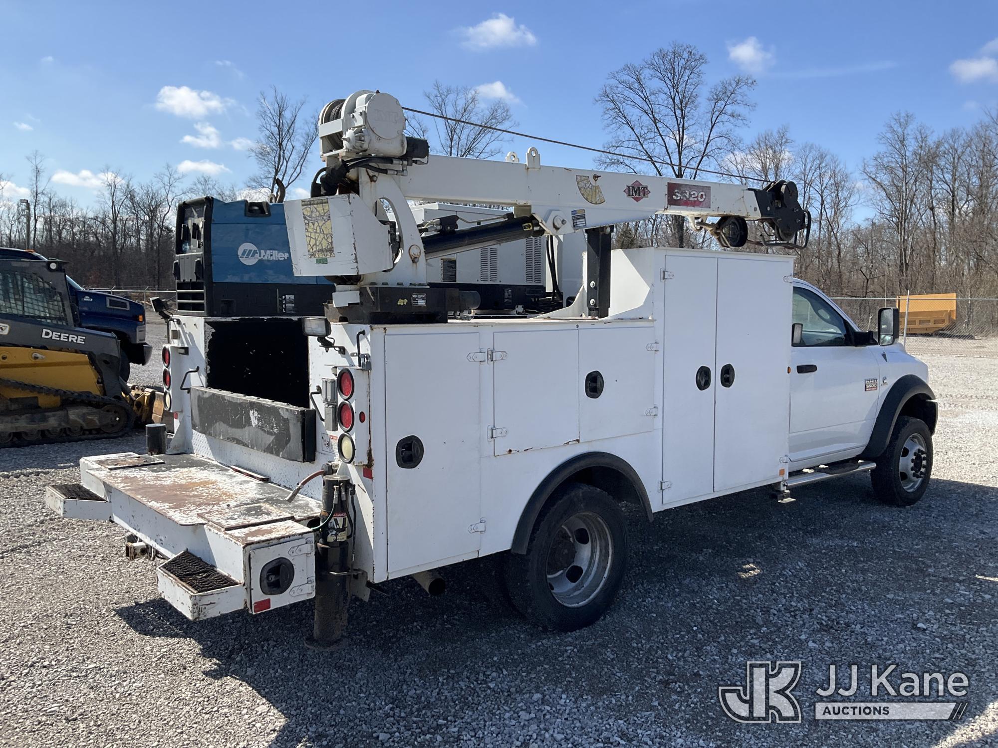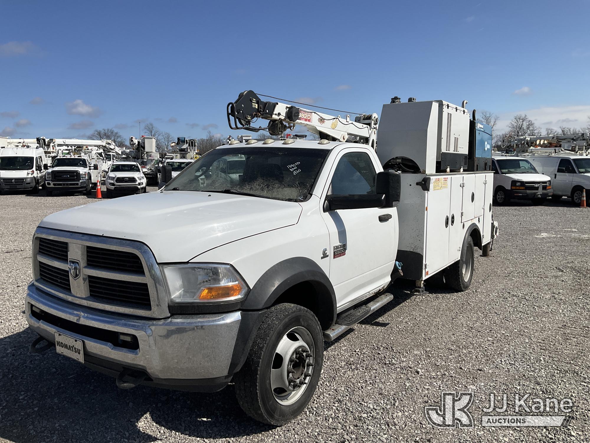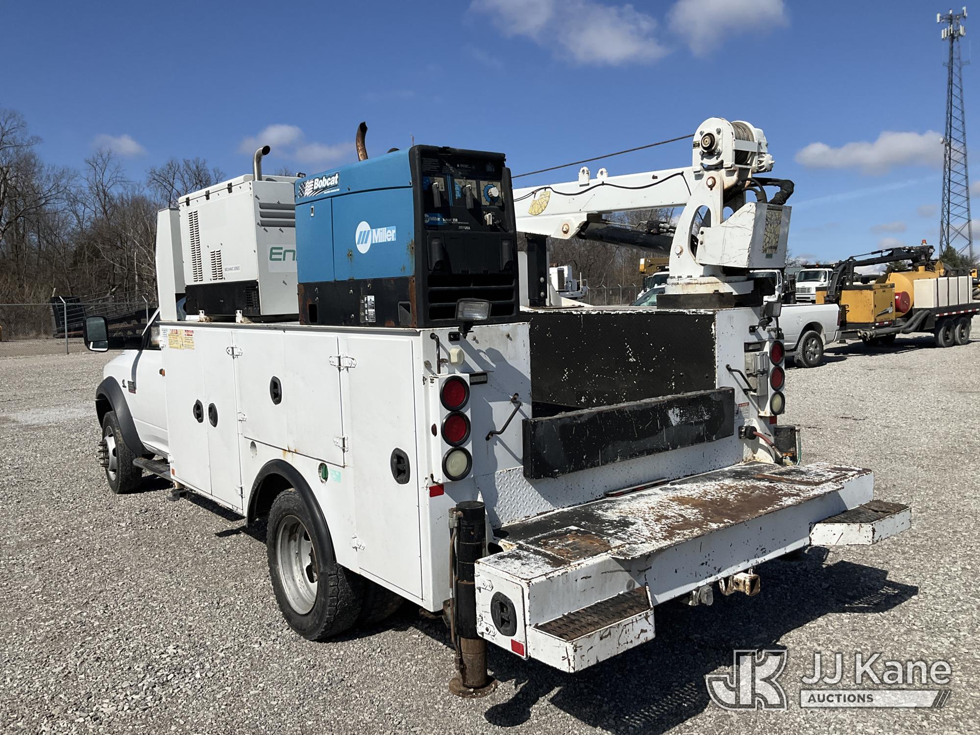 2011 Dodge Ram 5500 Mechanics Service Truck, 6.7L Turbo Diesel 6-Speed Automatic, A/C, with IMT 3820 Service Crane w/ Remote Control, Miller Bobcat Welder, EnPak Generator, (271,409 miles) Comes with MIller EnPak Integrated Power System, which allows equipment to run while truck engine is off. (Runs, Moves & Crane Operates) (Check Engine Light On, Rust & Body Damage, Service 4x4 Light On) This is a Titled Item*