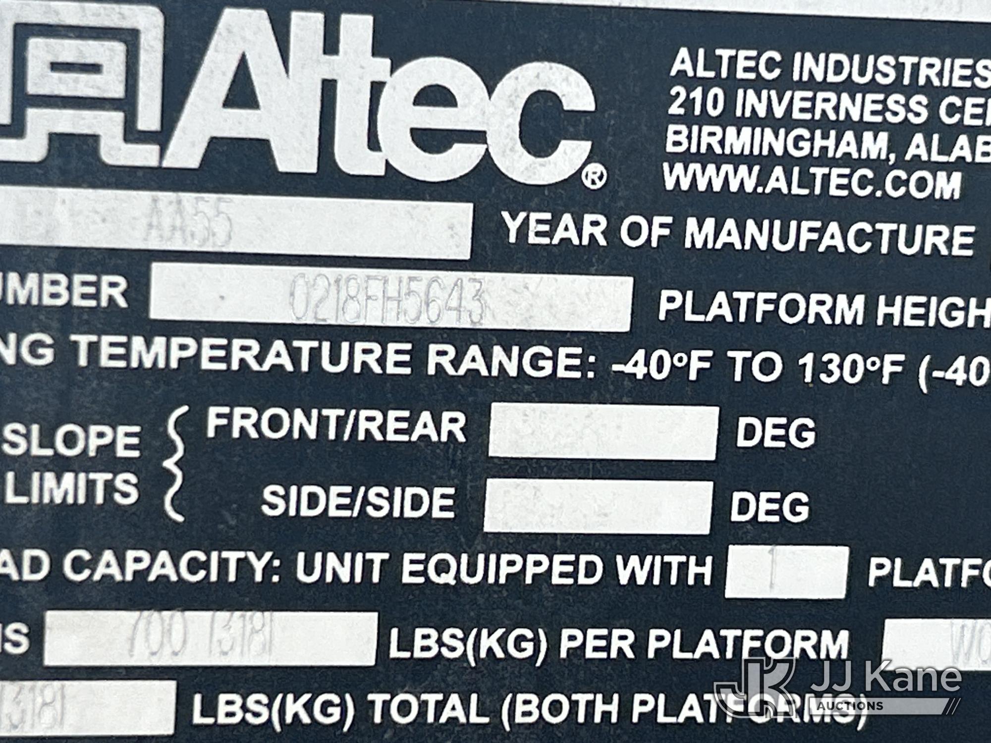Altec AA55-MH, 61 ft, Material Handling Bucket Truck s/n 0218FH5643, with 4 hyd outriggers, 2 man bucket, rear mounted on 2019 International 4300 Utility Truck, 6.7L diesel, 4X2, Auto, A/C, (70,137 miles) (Runs & Upper Operates) (Seller States UPPER UNIT NEEDS REPAIRS) (Reads 6,053 hours) This is a Titled Item*