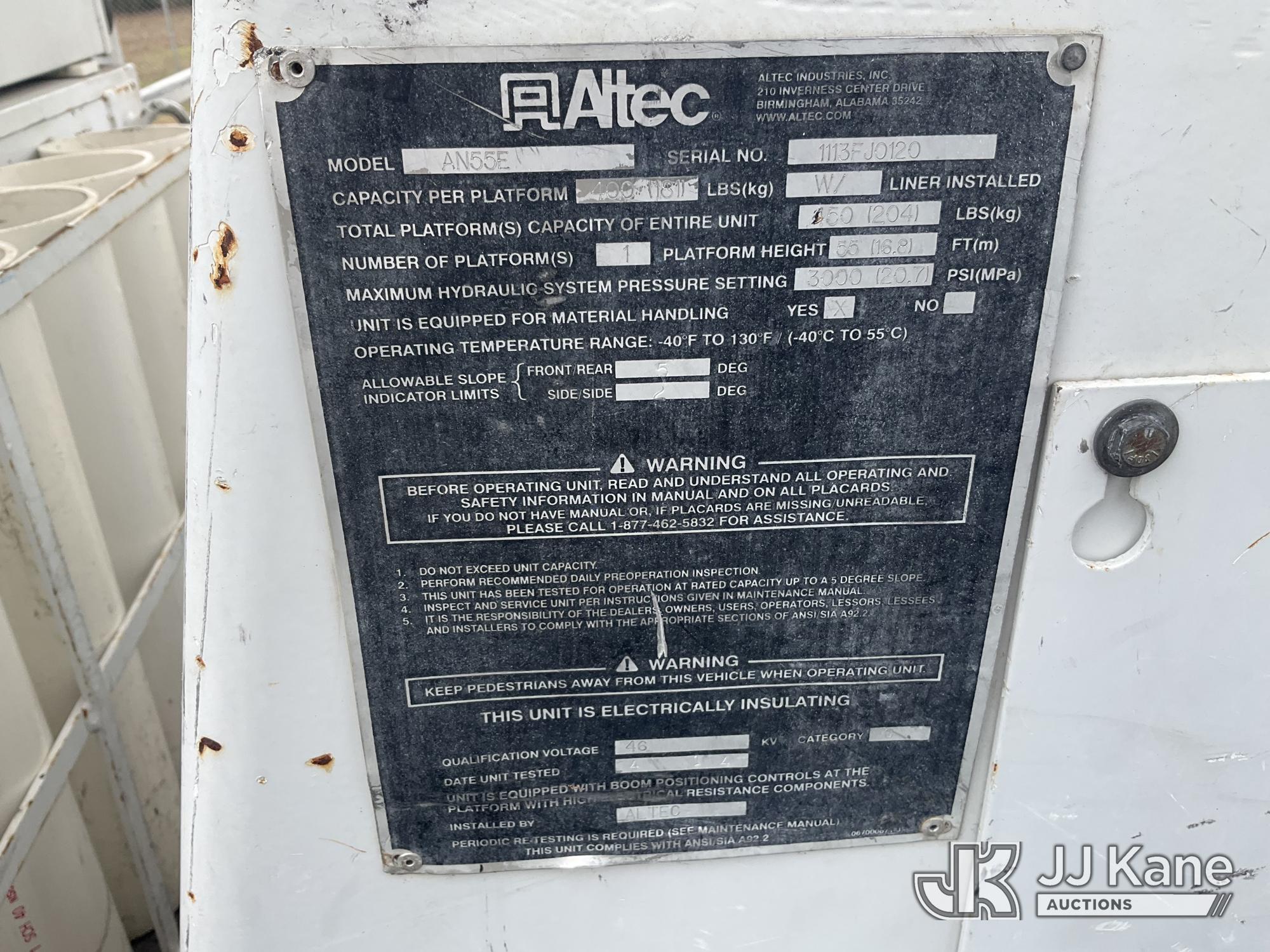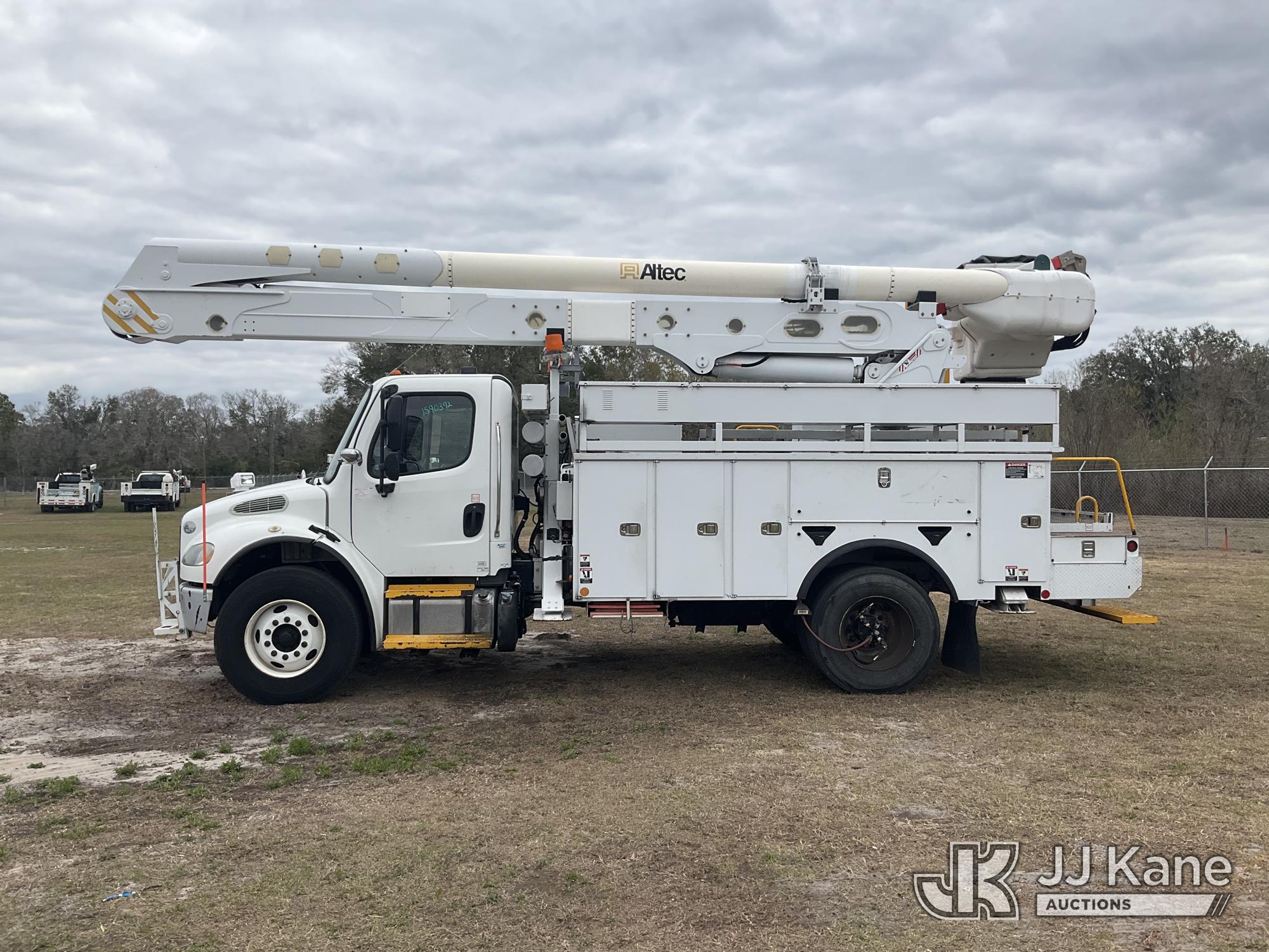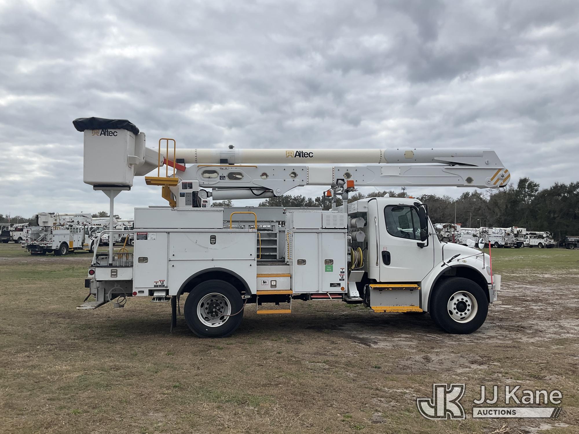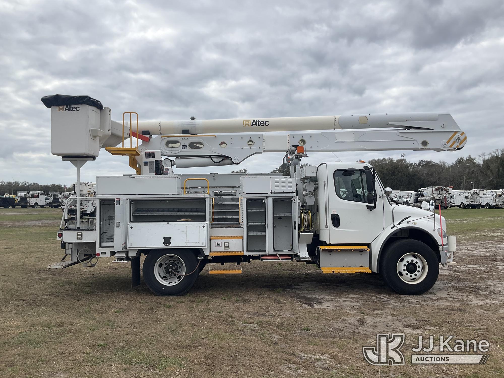 Altec AN55E, 60 ft, Material Handling Bucket Truck s/n 1113FJ0120, with single-man bucket & 4 hyd outriggers, rear mounted on 2014 Freightliner M2 106 Utility Truck, 6.7L L6 DIESEL 4X2, Auto, A/C, (50,612 miles) (Runs, Moves, Upper Operates) (Reads 6,893 hours) This is a Titled Item*