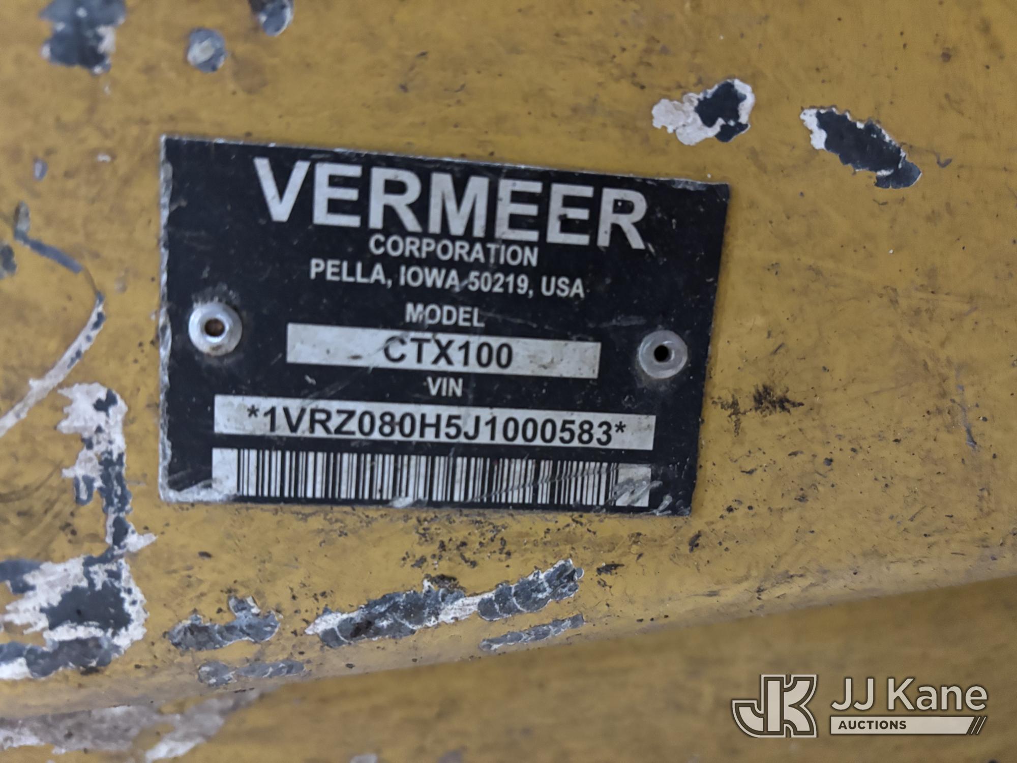 2018 Vermeer Corporation CTX100 Stand-Up Crawler Skid Steer Loader, s/n 1VRZ080H5J1000583, Kohler diesel, Hydrostatic, with LG46 Vermeer Grapple attachment, aux hyd, rubber tracks, (Runs & Operates) (Body, Rust & Paint Damage) (Seller Stated Hours Read 3400) (Reads 3,400 hours)*